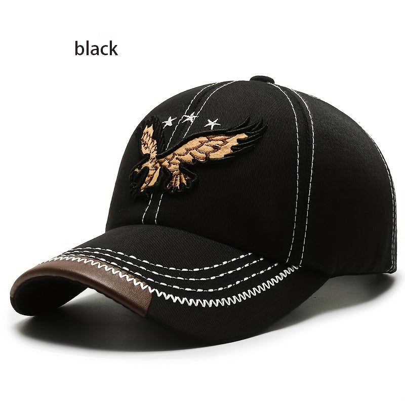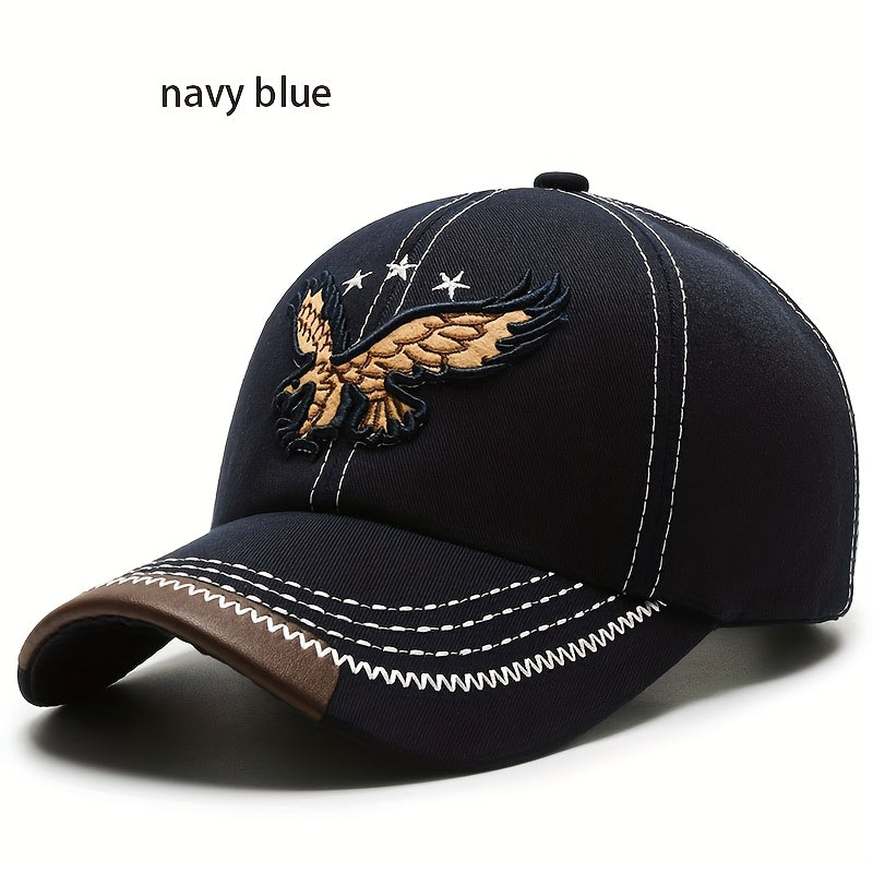 1pc Navy Blue Eagle Embroidered Baseball Cap for Men & Women - Stylish Unisex All-Season Hat with White Stitching, High-Quality Casual Sportswear Accessory, Outdoor Headwear, Trendy Headwear, Sturdy Construction, Sports Fans