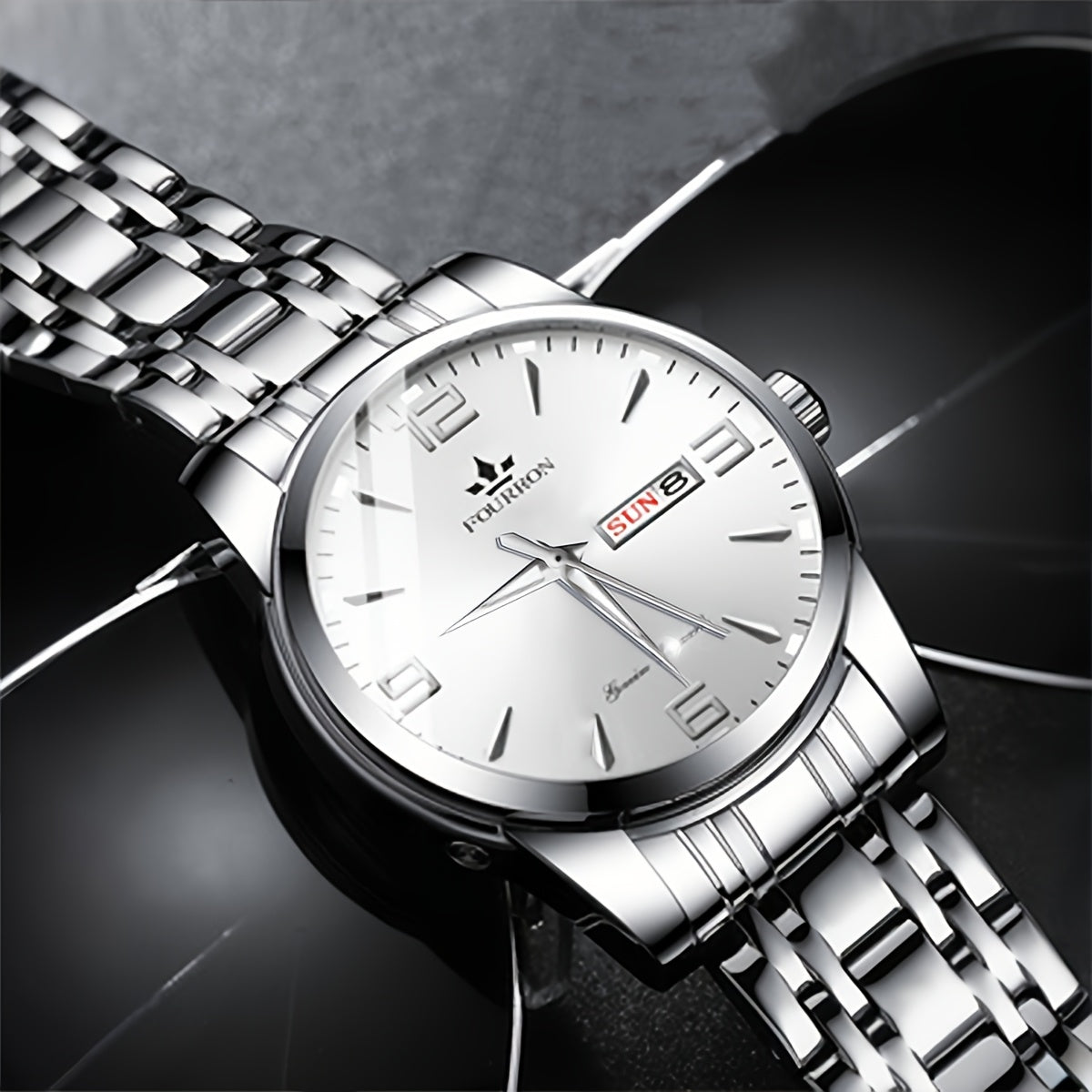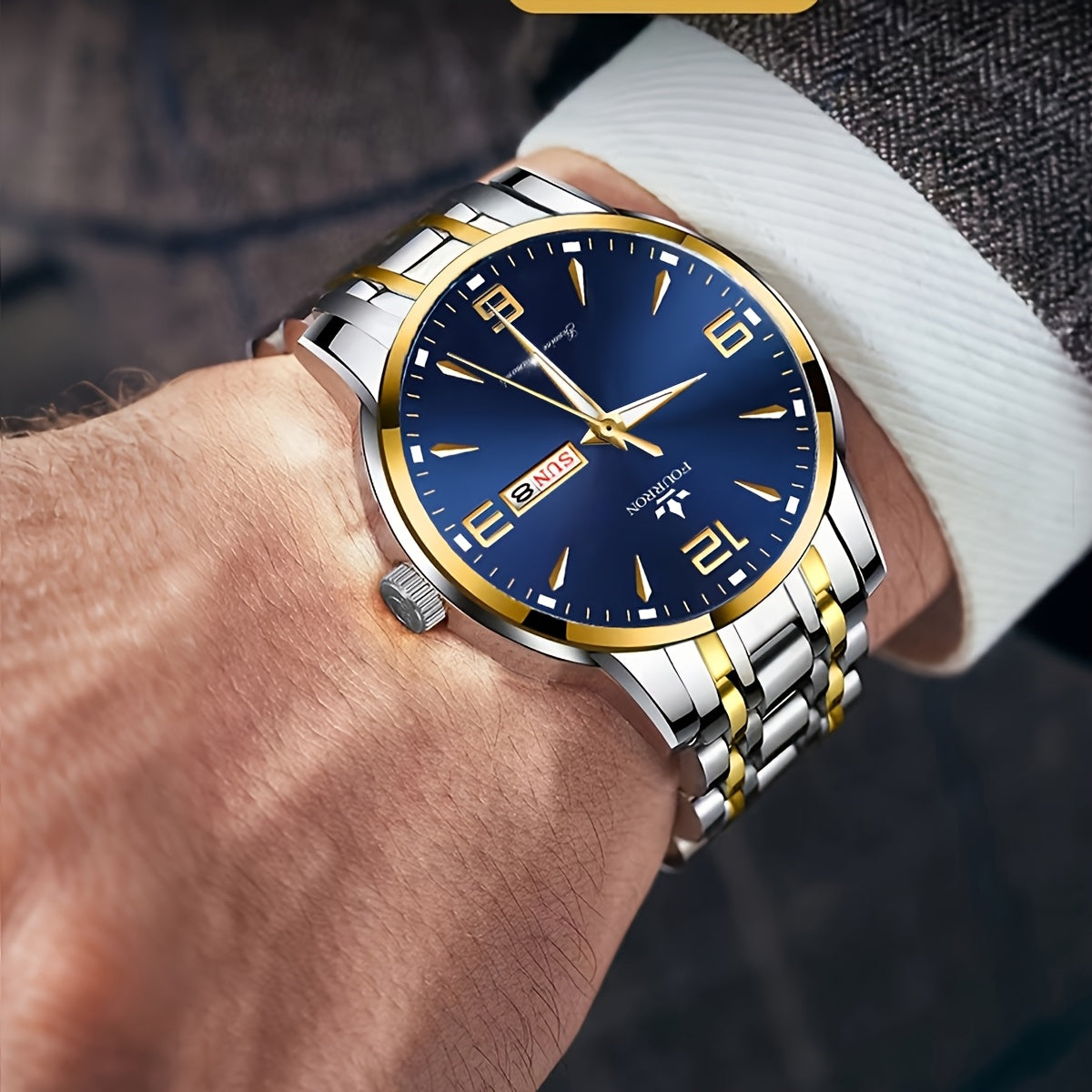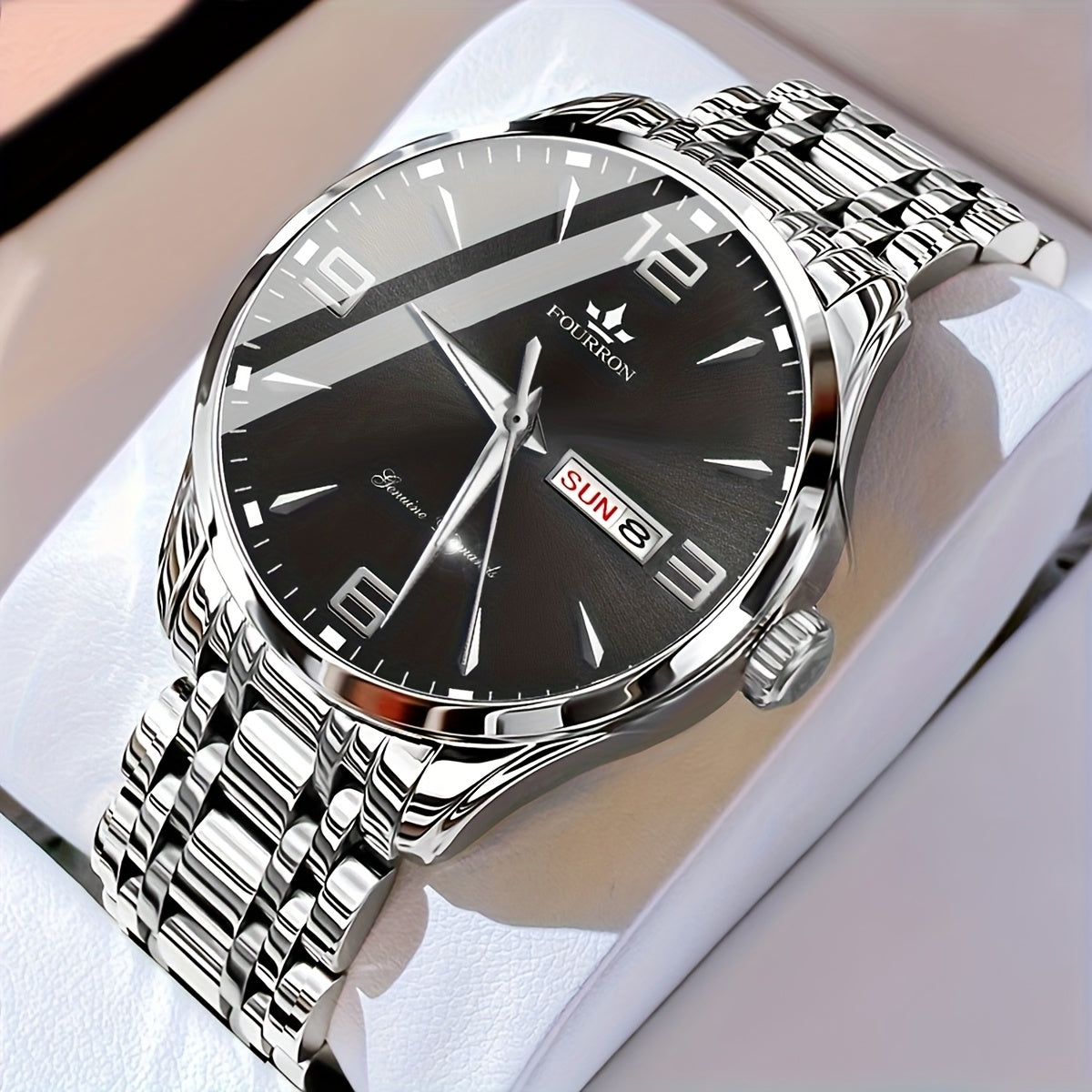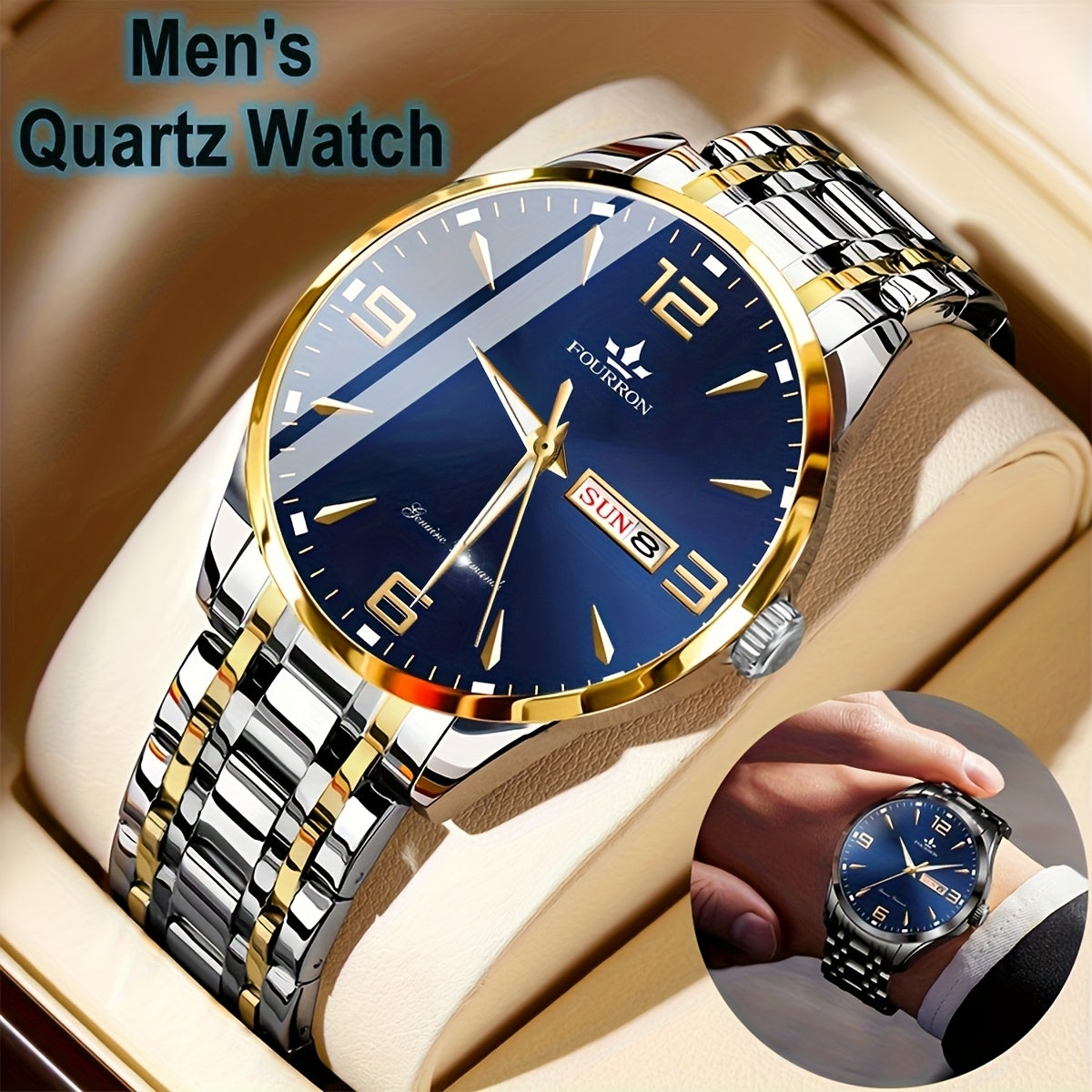 1 հատ նոր FOURRON տղամարդու չժանգոտվող պողպատե ժապավենով քվարցե ժամացույց - մեծ HD քերծվածքակայուն և մաշվածությանը դիմացկուն ցուցանակ, IPX7 ջրակայուն, լուսավոր, ամսաթվի և օրացույցի ֆունկցիա, լուռ մեխանիզմ, ոճային նվեր նրա համար