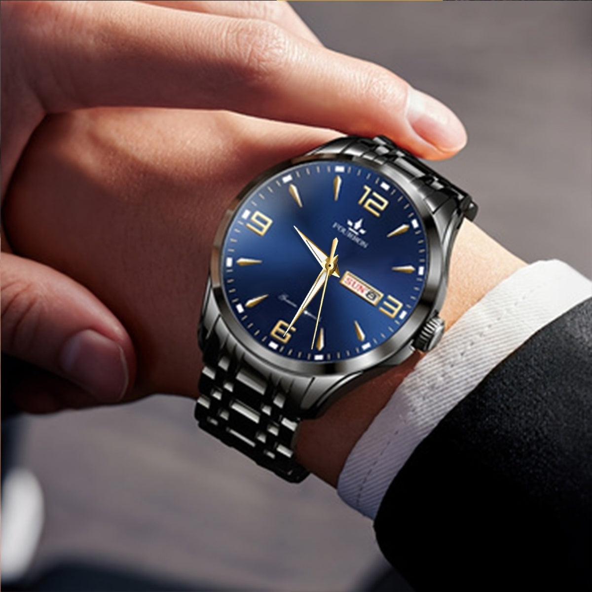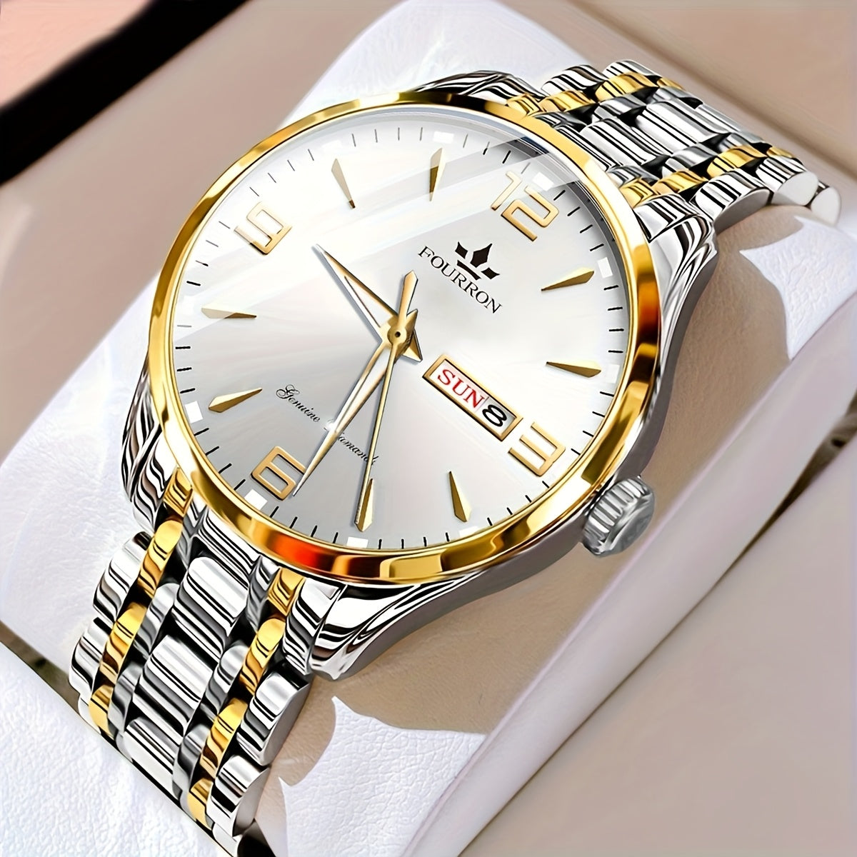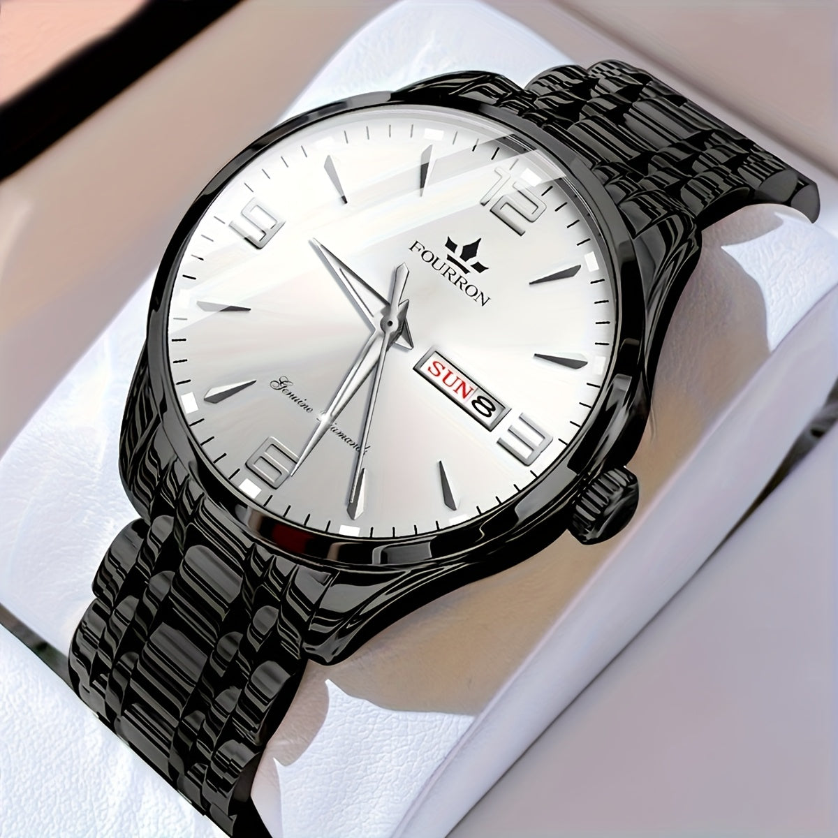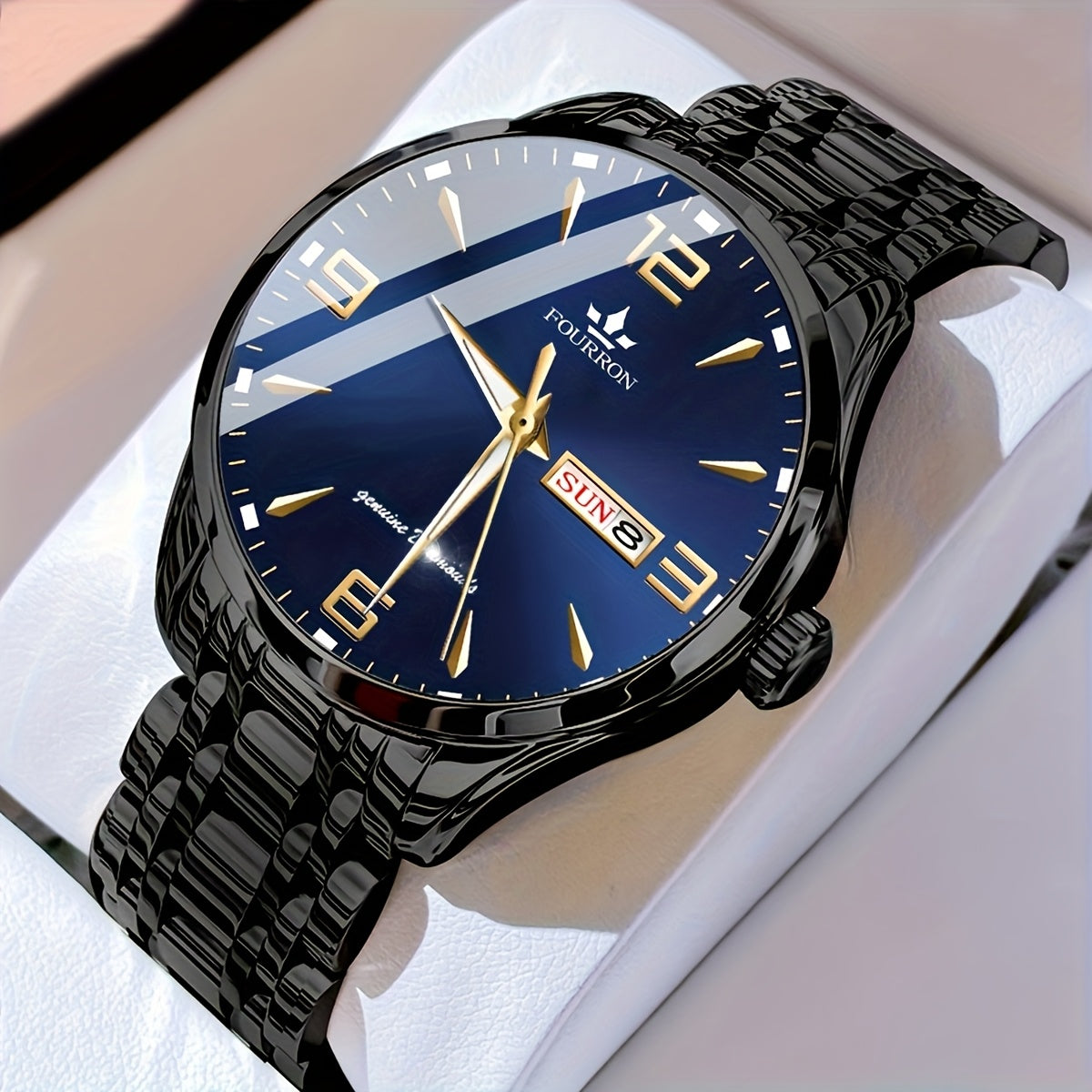 1 հատ նոր FOURRON տղամարդու չժանգոտվող պողպատե ժապավենով քվարցե ժամացույց - մեծ HD քերծվածքակայուն և մաշվածությանը դիմացկուն ցուցանակ, IPX7 ջրակայուն, լուսավոր, ամսաթվի և օրացույցի ֆունկցիա, լուռ մեխանիզմ, ոճային նվեր նրա համար