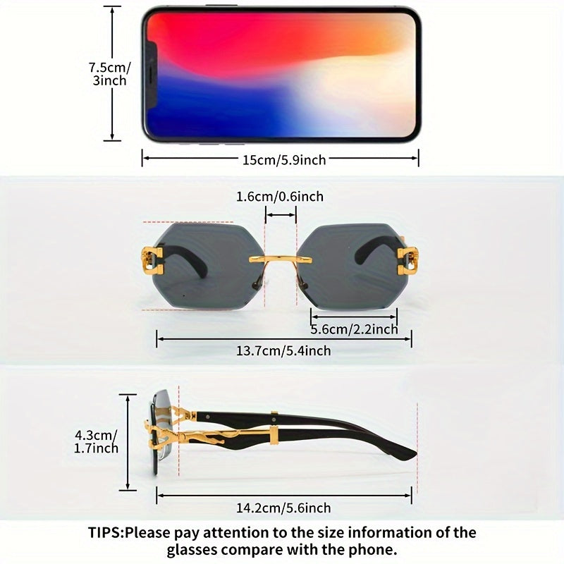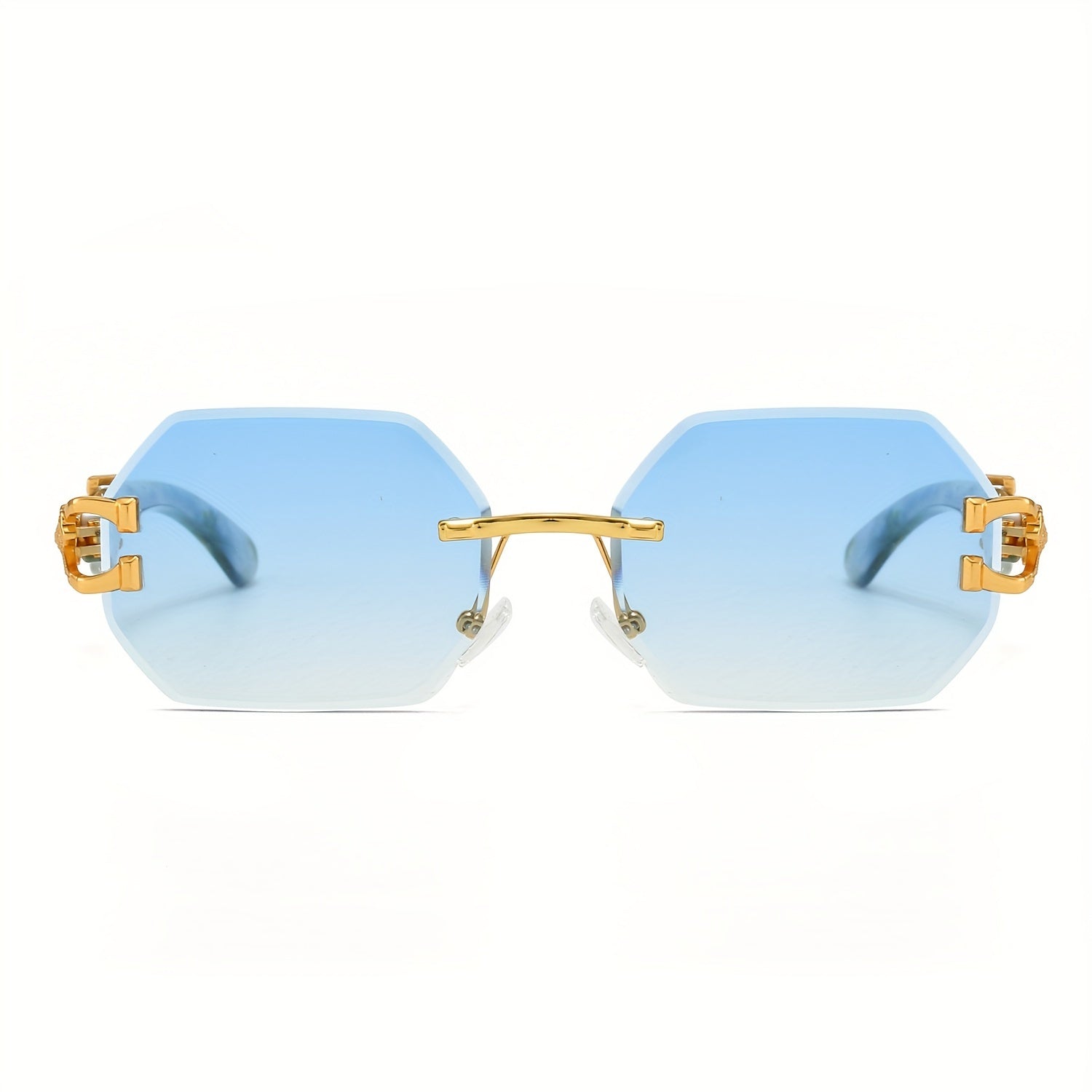 1 հատ ռետրո անկաշկանդ ակնոց տղամարդկանց և կանանց համար, անկանոն ձևի համակարգչային ոսպնյակ, մետաղական ծխնի, լեռնագնացության սպորտաձևերի համար, փայտի հյուսվածքի իմիտացիա, նորաձև դեկորատիվ ակնոցներ, հարմար է ամենօրյա և տոնական կրելու համար