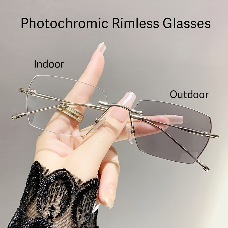 1 հատ շրջանակազուրկ քառակուսի ֆոտոքրոմիկ ակնոցներ - էլեգանտ և թեթև, գույնը փոխող ոսպնյակներ՝ նախատեսված ներսի/օգտագործման համար, իդեալական են ամենօրյա կրելու, դպրոցի, բիզնեսի և հատուկ առիթների համար, առանց դեղատոմսի, կատարյալ նվեր