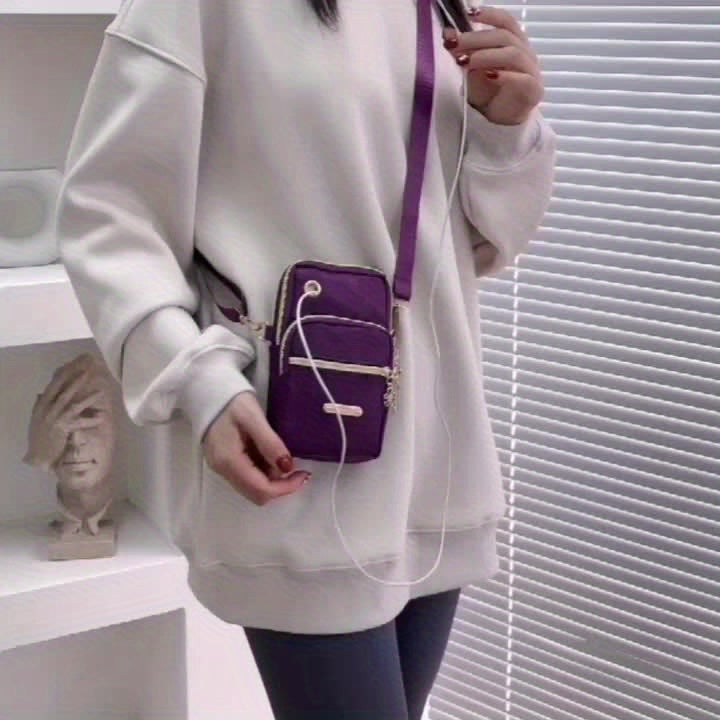 1 հատ կանացի նորաձև խաչաձև բջջային հեռախոսի դրամապանակ, պատահական բազմագրպանով կայծակաճարմանդ պայուսակ՝ կարգավորելի ժապավենով, կոմպակտ սպորտային մետաղադրամների պայուսակ և ականջակալ՝ ամենօրյա ճանապարհորդության վկայականի պահպանման համար