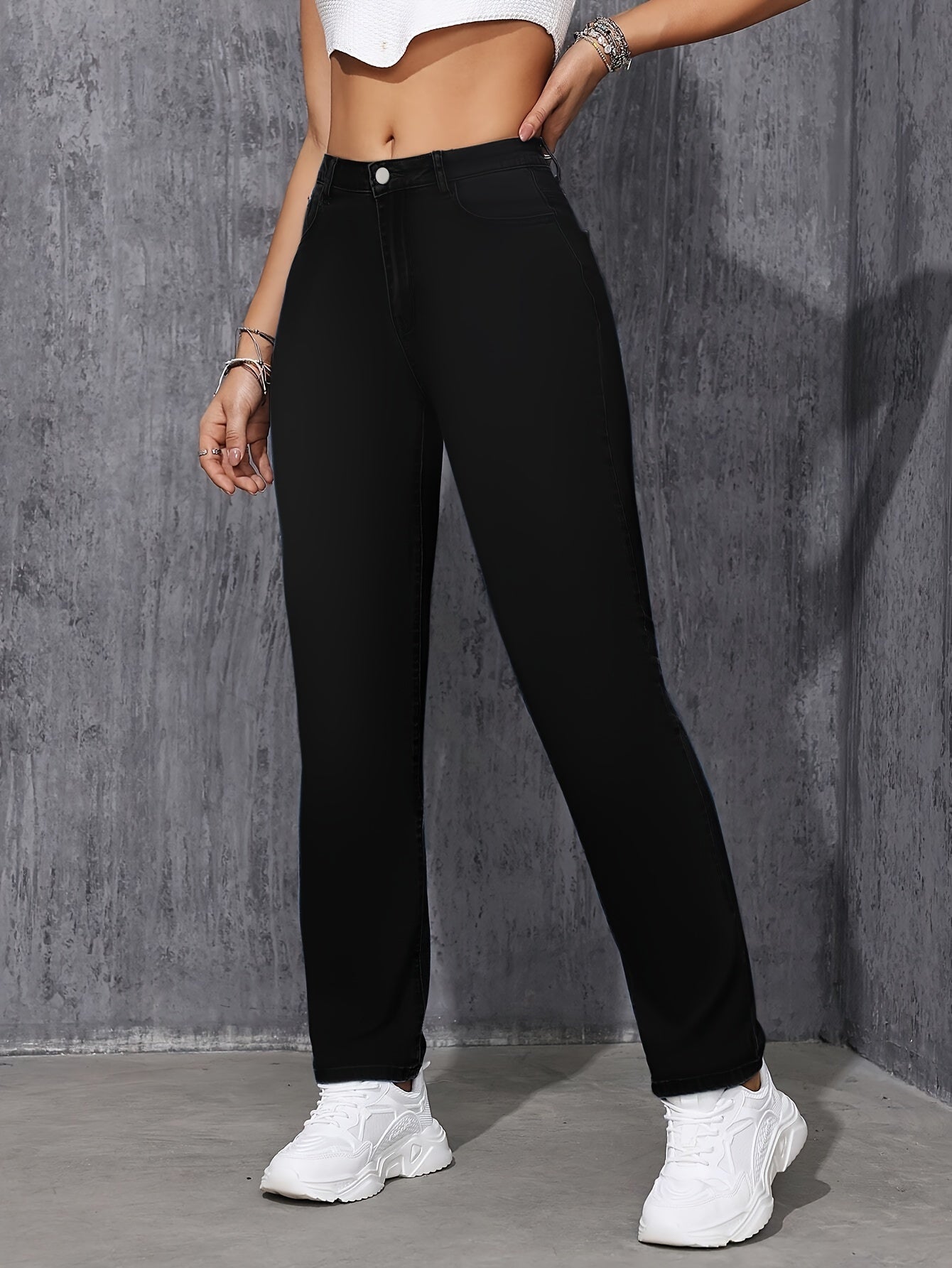 1 հատ Կանացի նորաձև ասեղնագործված բարակ հարմարվող պատահական ջինսե ջինսեր, երկրաչափական նախշ, բոլոր սեզոնային ձգվող գործվածք, հյուսված գործվածք