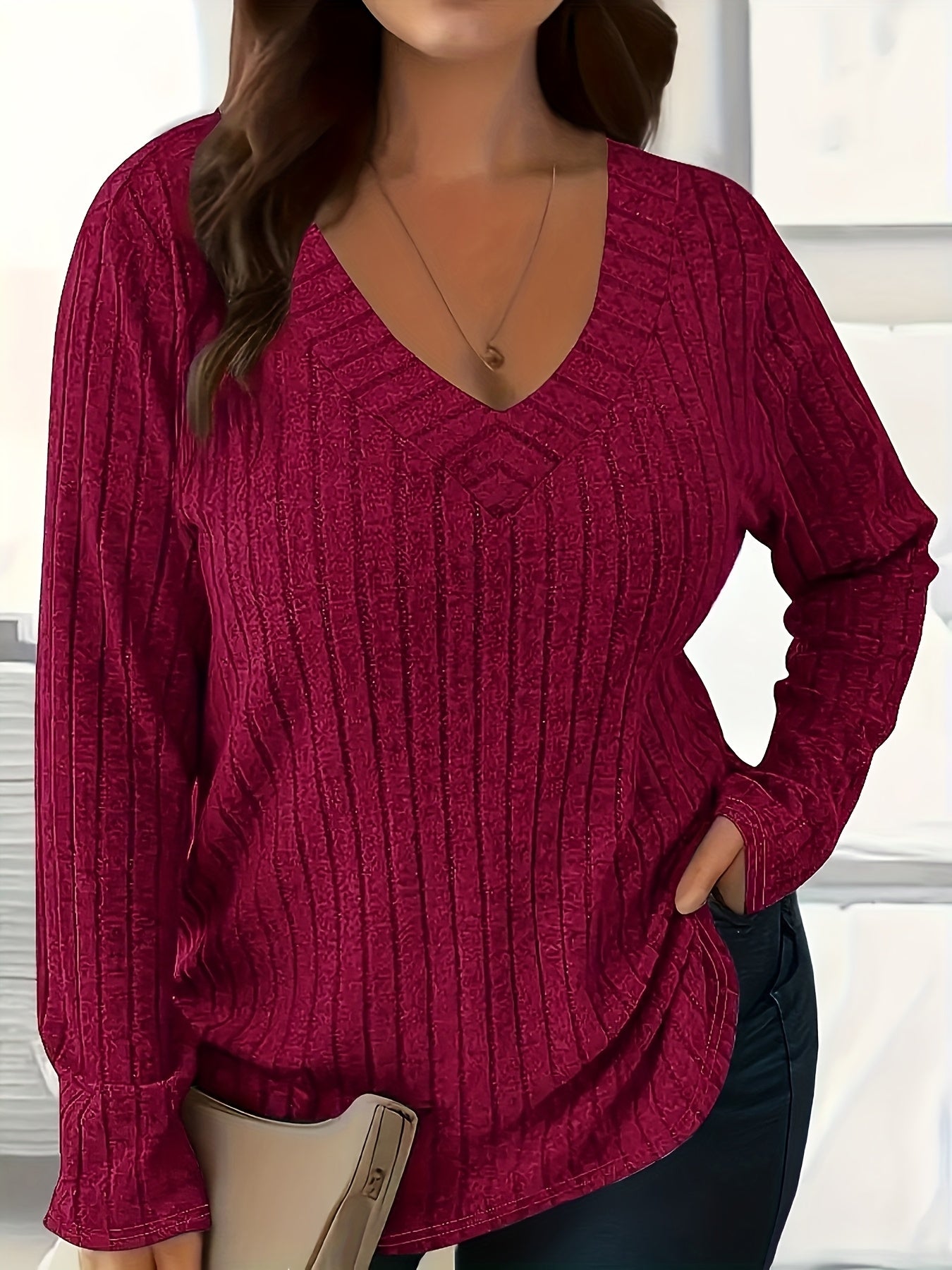 1 հատ Women'S Plus Size Casual V-Neck սվիտեր - 95% պոլիեսթեր 5% սպանդեքս տրիկոտաժե գործվածք, միաձույլ գույն, երկարաթև, գարուն/աշուն/ձմեռ բաց վերնաշապիկ