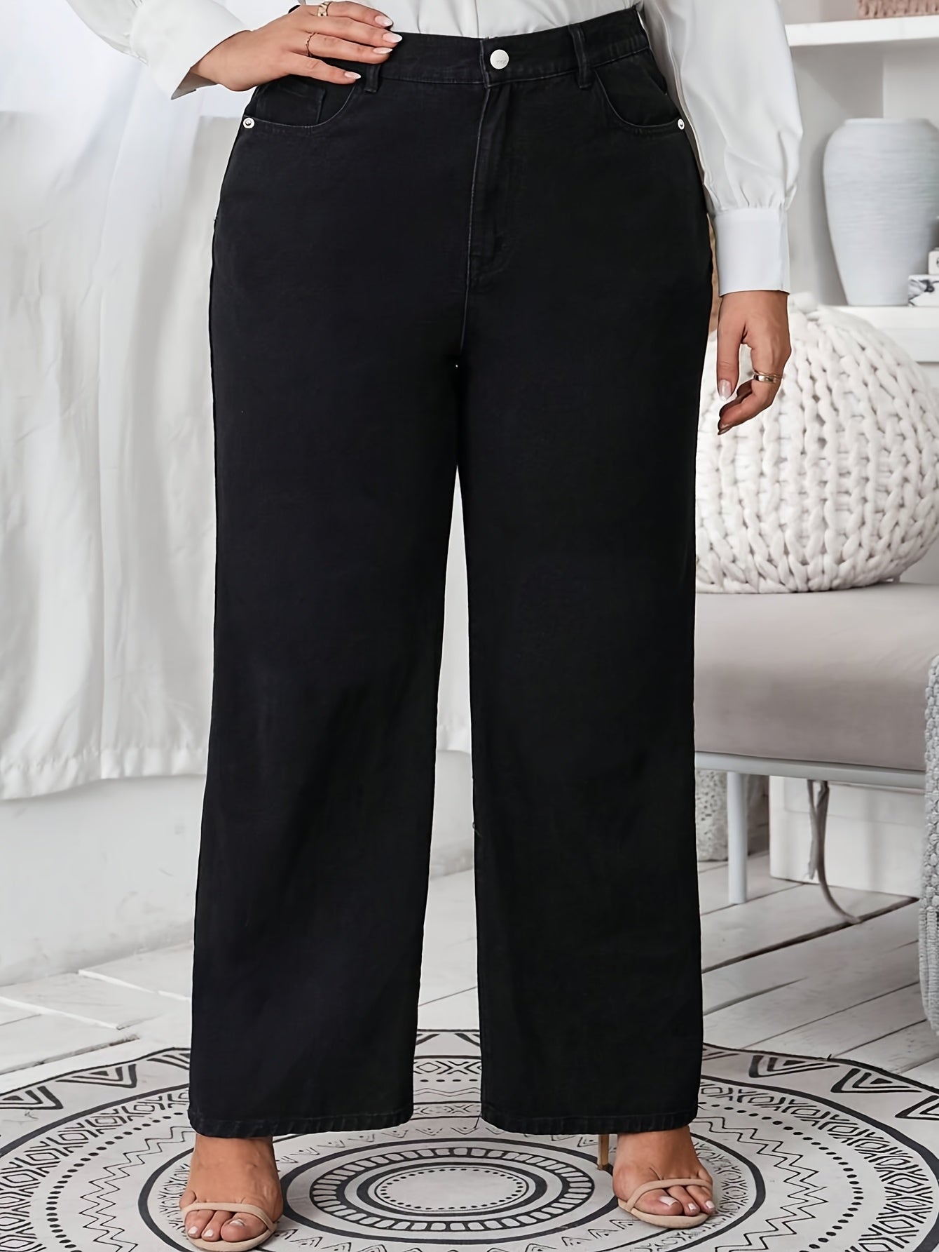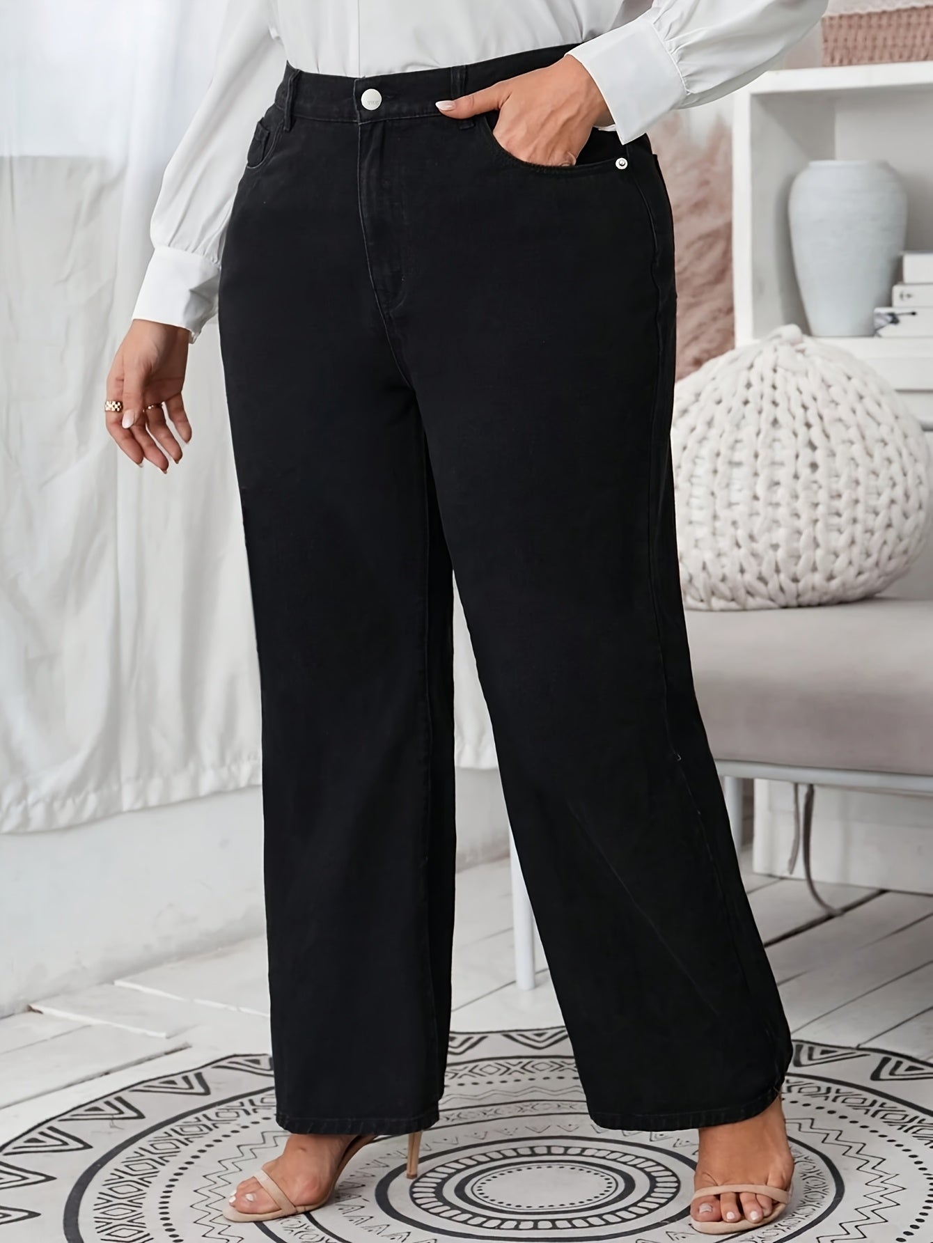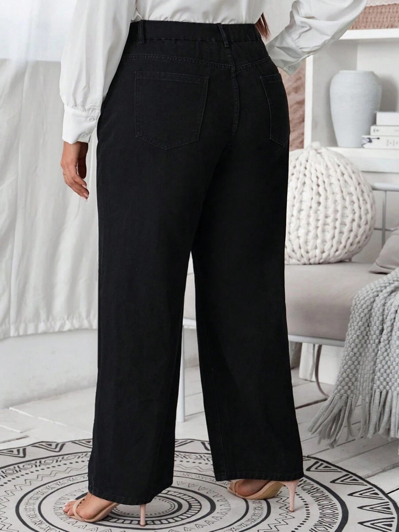 1 հատ Կանացի պլյուս չափսի բարձր ձգվող ջինսե ջինս, սովորական միագույն լվացված երկար շալվար կայծակաճարմանդով, հյուսված գործվածք, բոլոր սեզոնային նորաձևություն հանգստյան օրերին պատահական առիթների համար, տեսանելի ոտք, նորաձև բազմակողմանի