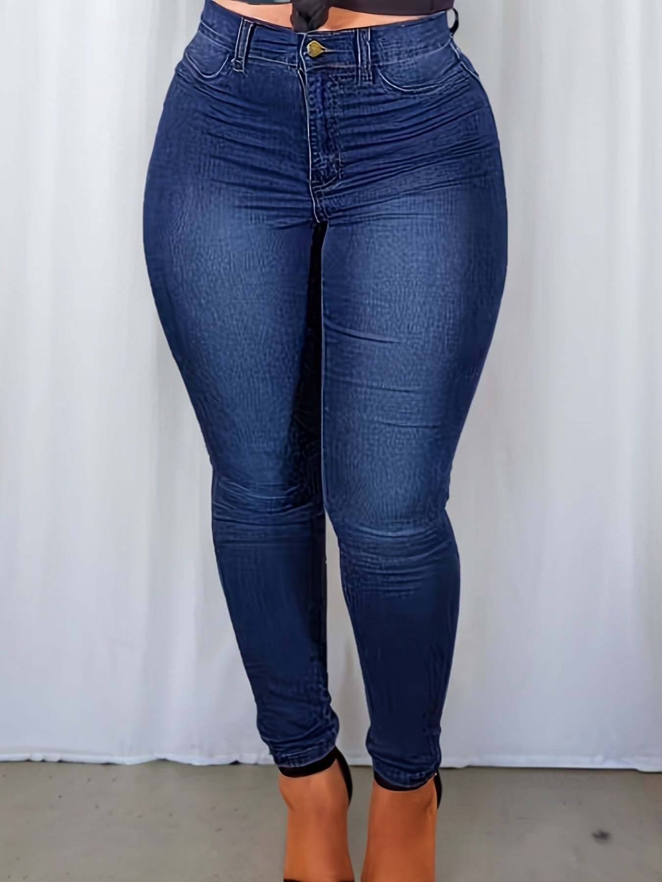 1 հատ Կանացի պլյուս չափի ձգվող ջինսե ջինս, պինդ գույնի կոճակ-վերև լվացված պատահական ոճ, (75%, 22% պոլիեսթեր, 3% սպանդեքս), միջին ձգվող գործվածք, ամբողջ սեզոնային հյուսված տաբատ