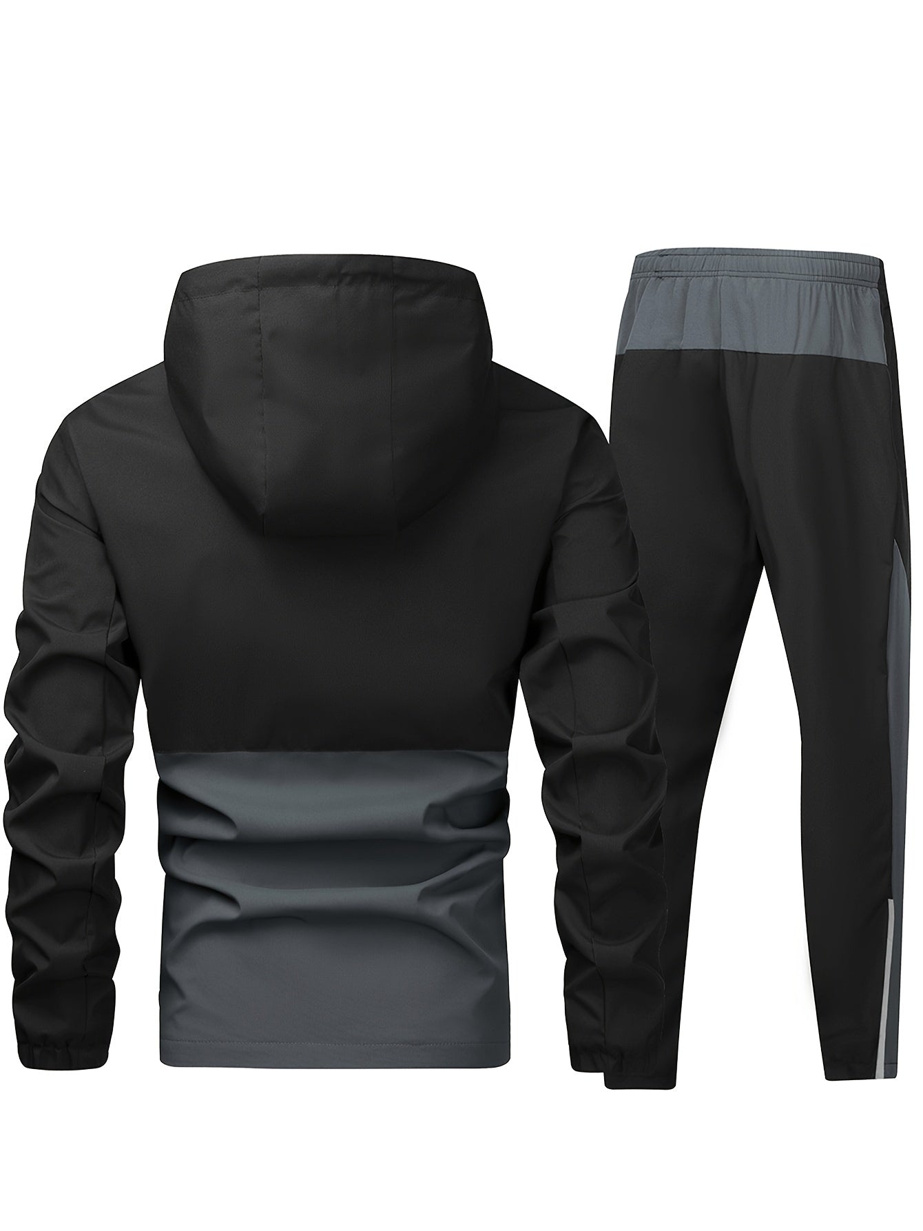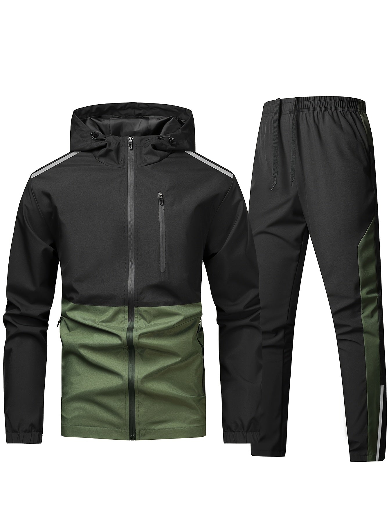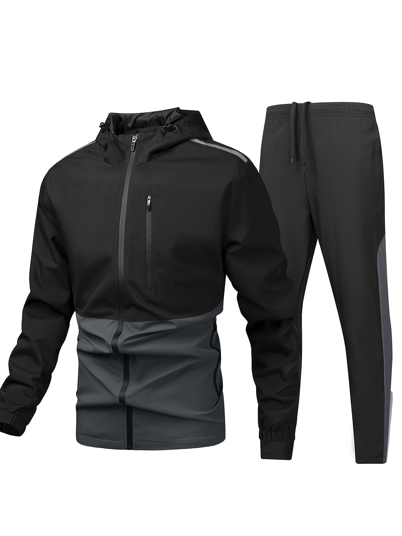 Տղամարդկանց պատահական նորաձև սպորտային կոստյում 1 կոմպլեկտ, երկարաթև գլխարկով բաճկոն գրպաններով, միաձույլ պոլիեսթեր վերնաշապիկ և պոլիեսթեր սպանդեքս խառնուրդ, սովորական կոստյում, ոչ ձգվող գործվածք, բոլոր սեզոնային սպորտային հանդերձանք