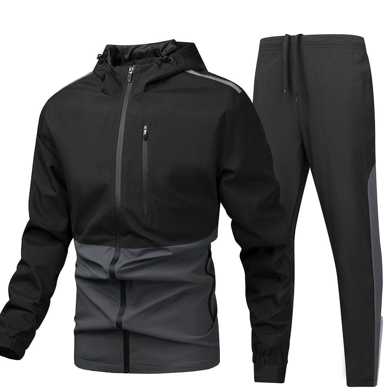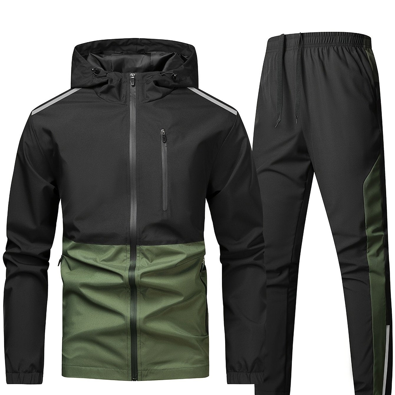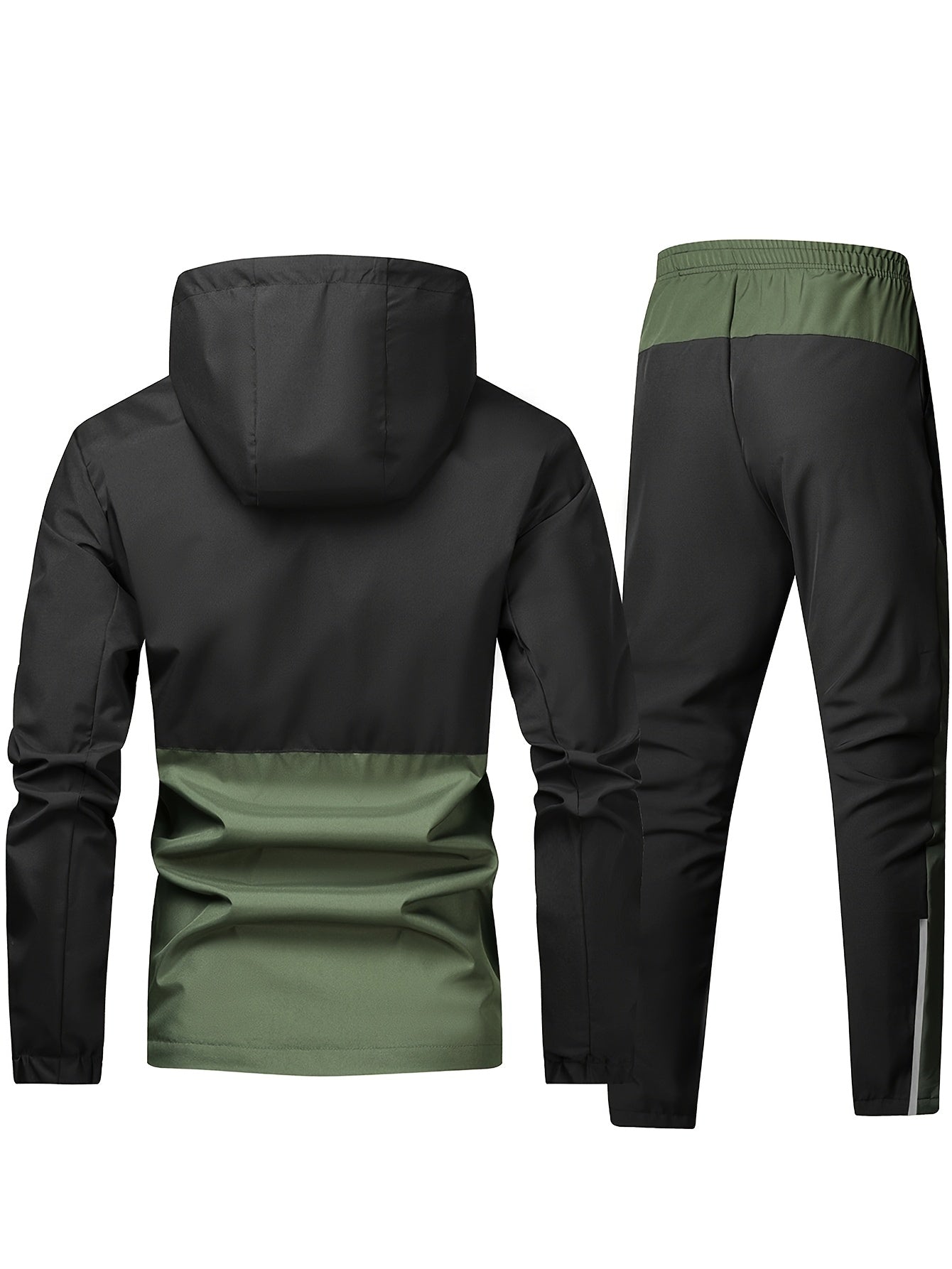 Տղամարդկանց պատահական նորաձև սպորտային կոստյում 1 կոմպլեկտ, երկարաթև գլխարկով բաճկոն գրպաններով, միաձույլ պոլիեսթեր վերնաշապիկ և պոլիեսթեր սպանդեքս խառնուրդ, սովորական կոստյում, ոչ ձգվող գործվածք, բոլոր սեզոնային սպորտային հանդերձանք