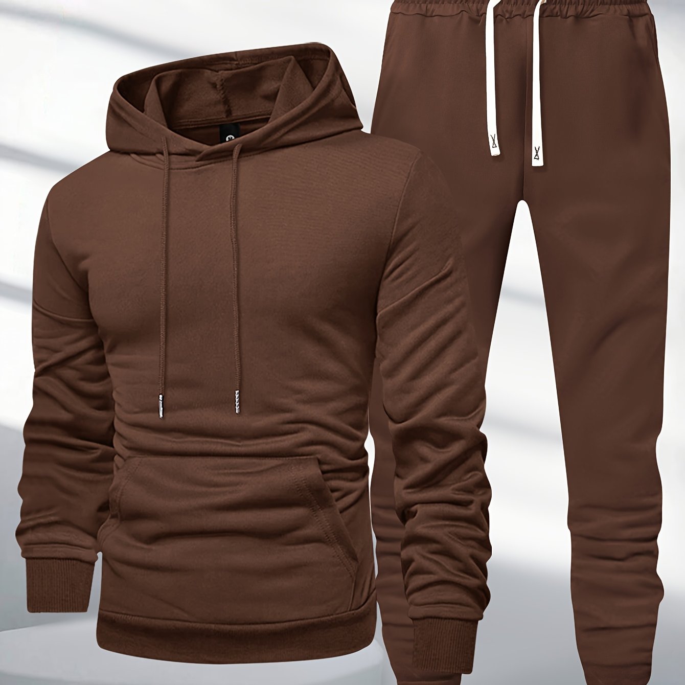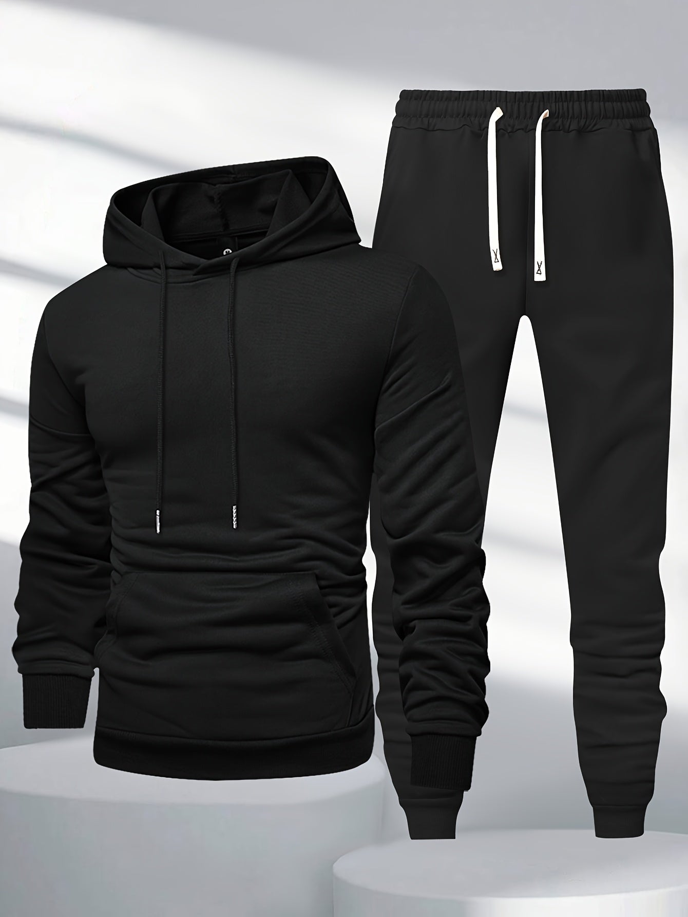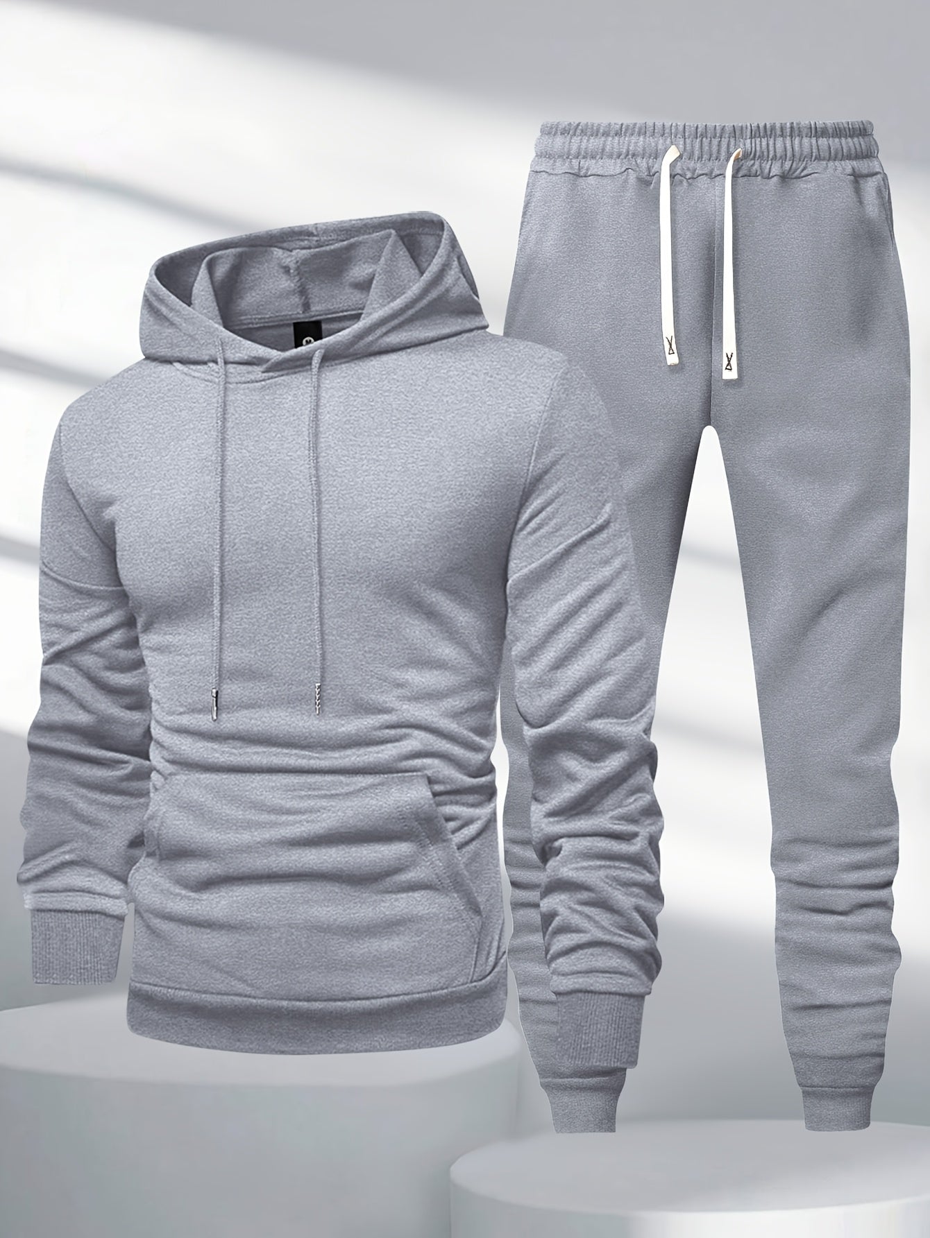 Տղամարդկանց 1 կոմպլեկտ պատահական պոլիեսթեր քրտինքի կոստյում, միաձույլ երկարաթև պուլվեր գլխարկով գլխարկով պարանով գոտկատեղով, տրիկոտաժե սպորտային լաունաժների հավաքածու գարուն/աշուն
