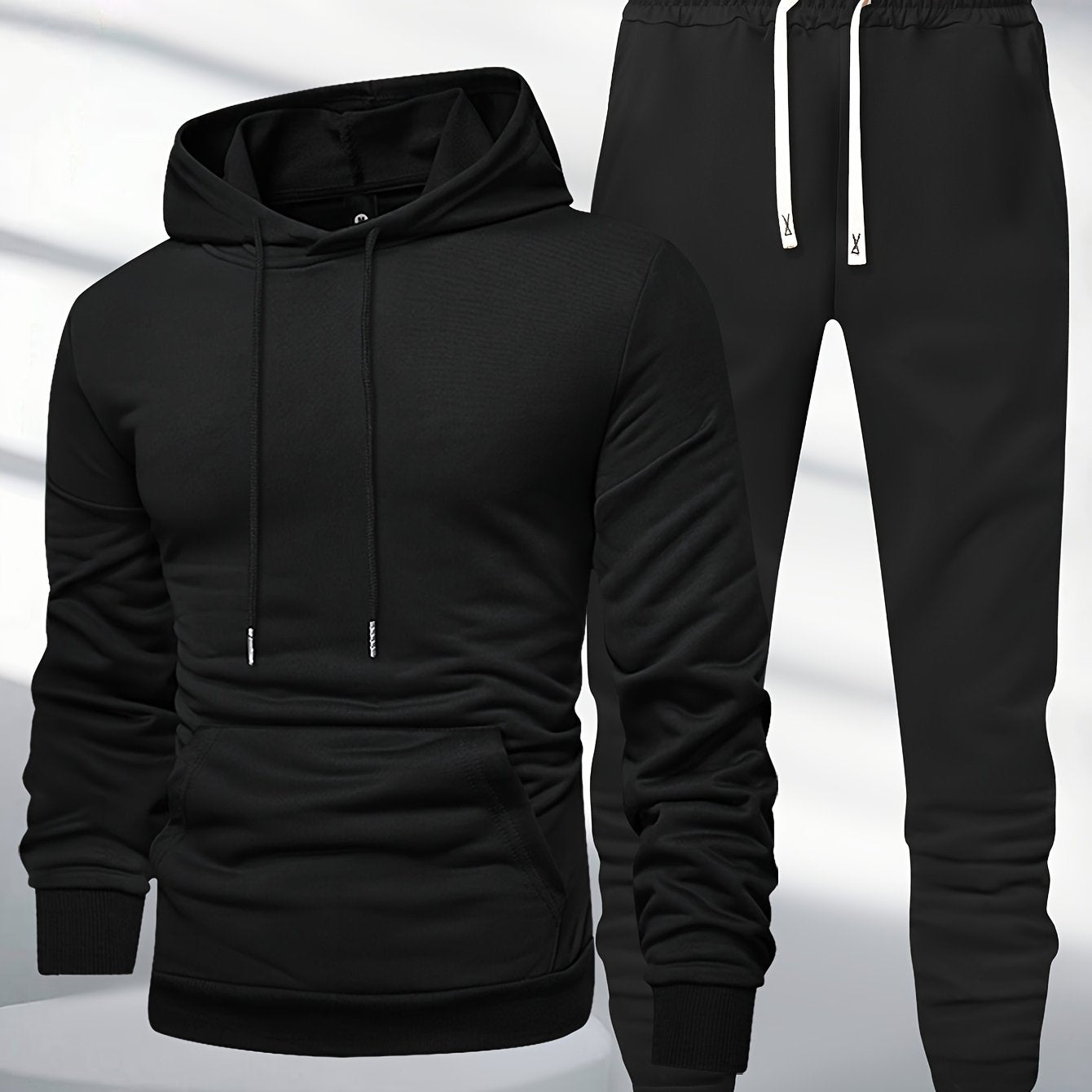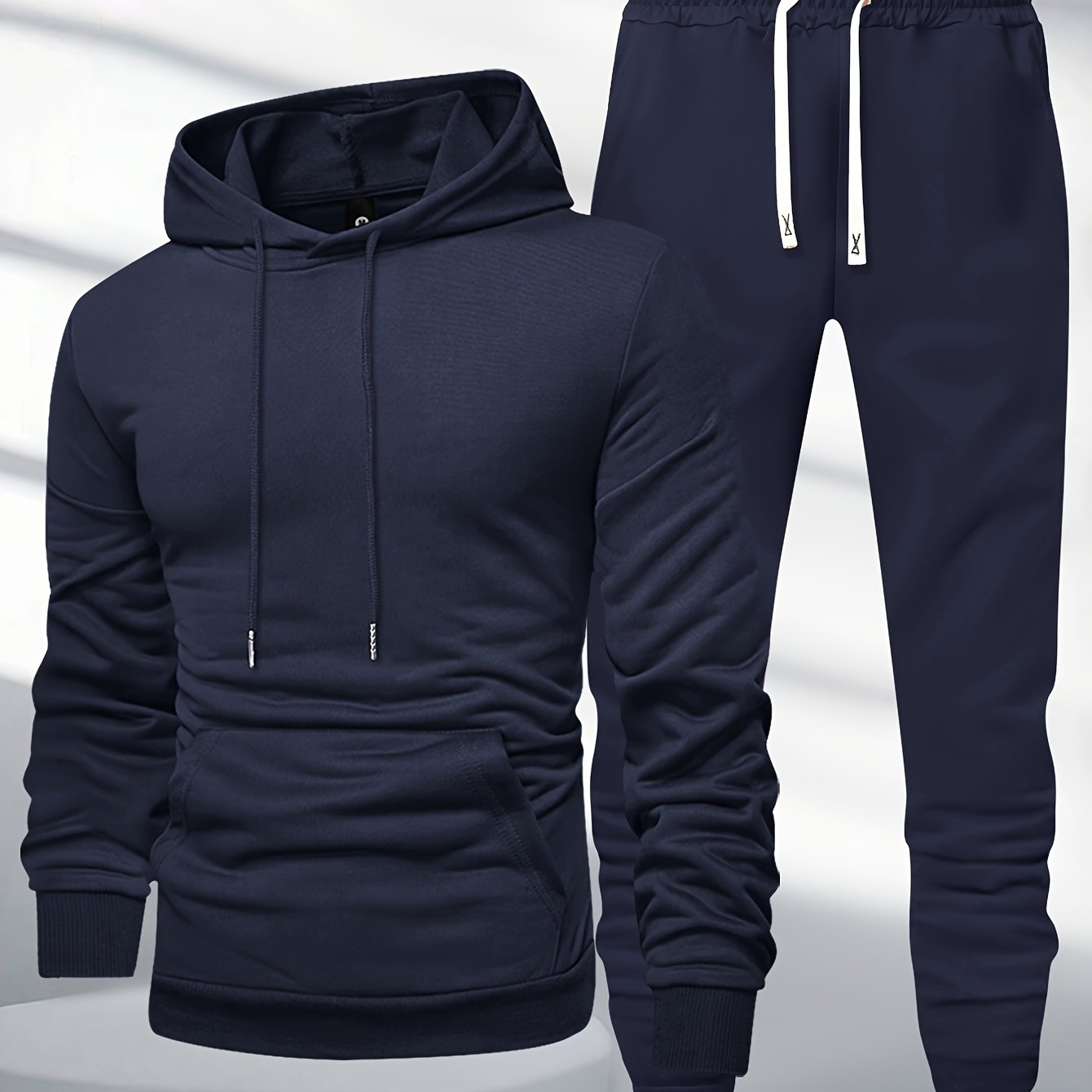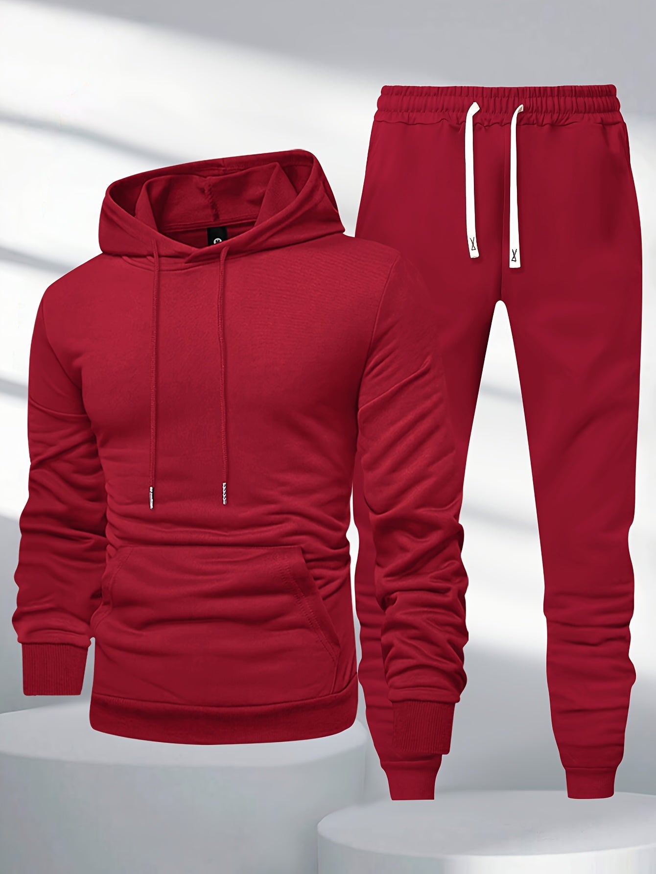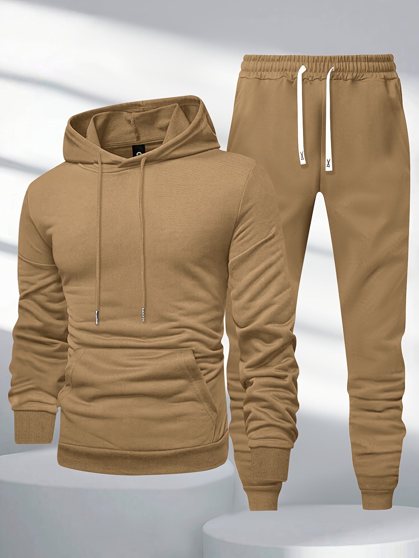 Տղամարդկանց 1 կոմպլեկտ պատահական պոլիեսթեր քրտինքի կոստյում, միաձույլ երկարաթև պուլվեր գլխարկով գլխարկով պարանով գոտկատեղով, տրիկոտաժե սպորտային լաունաժների հավաքածու գարուն/աշուն
