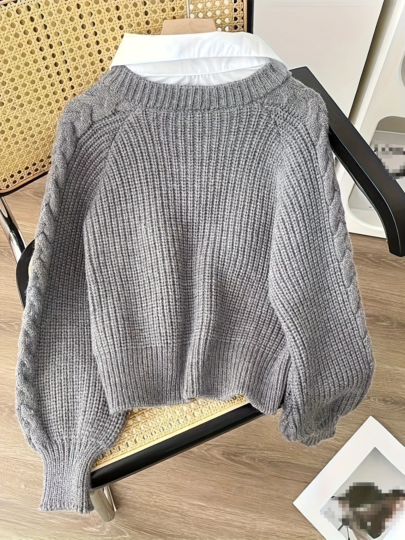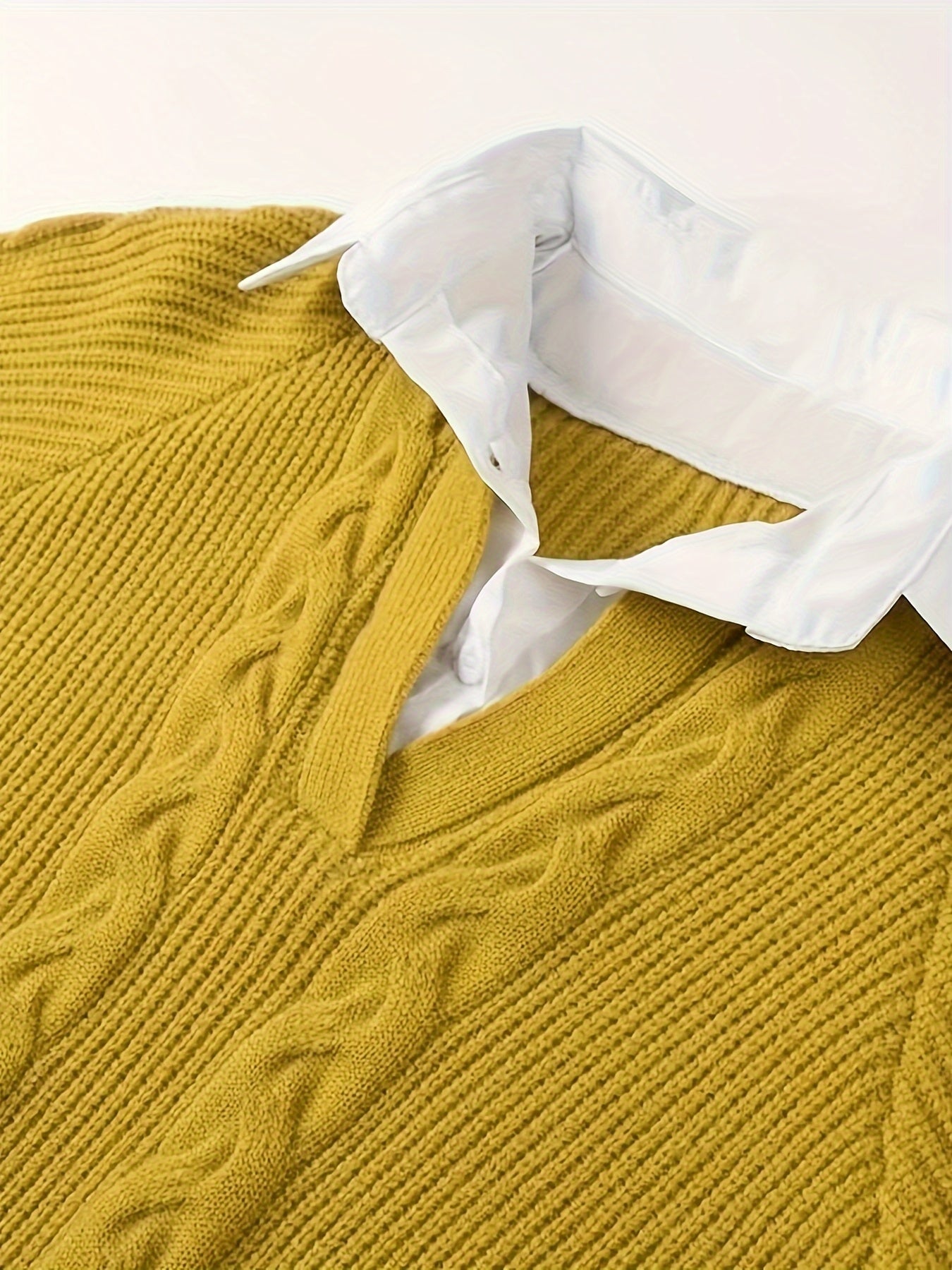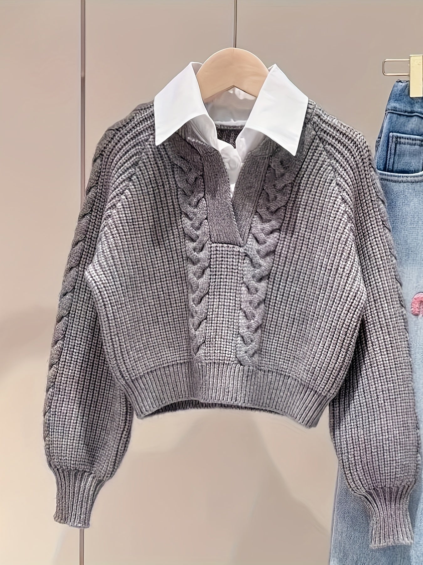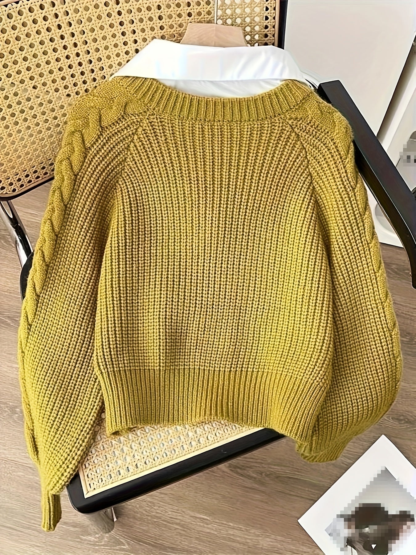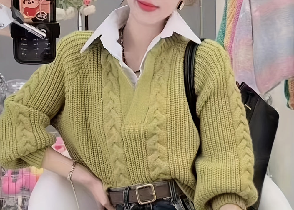 2-ը մեկ կոնտրաստ գույնի օձիքով սվիտեր, շքեղ կաբելային տրիկոտաժե երկարաթև պոլո սվիտեր աշնանային և ձմեռային համար, կանացի հագուստ