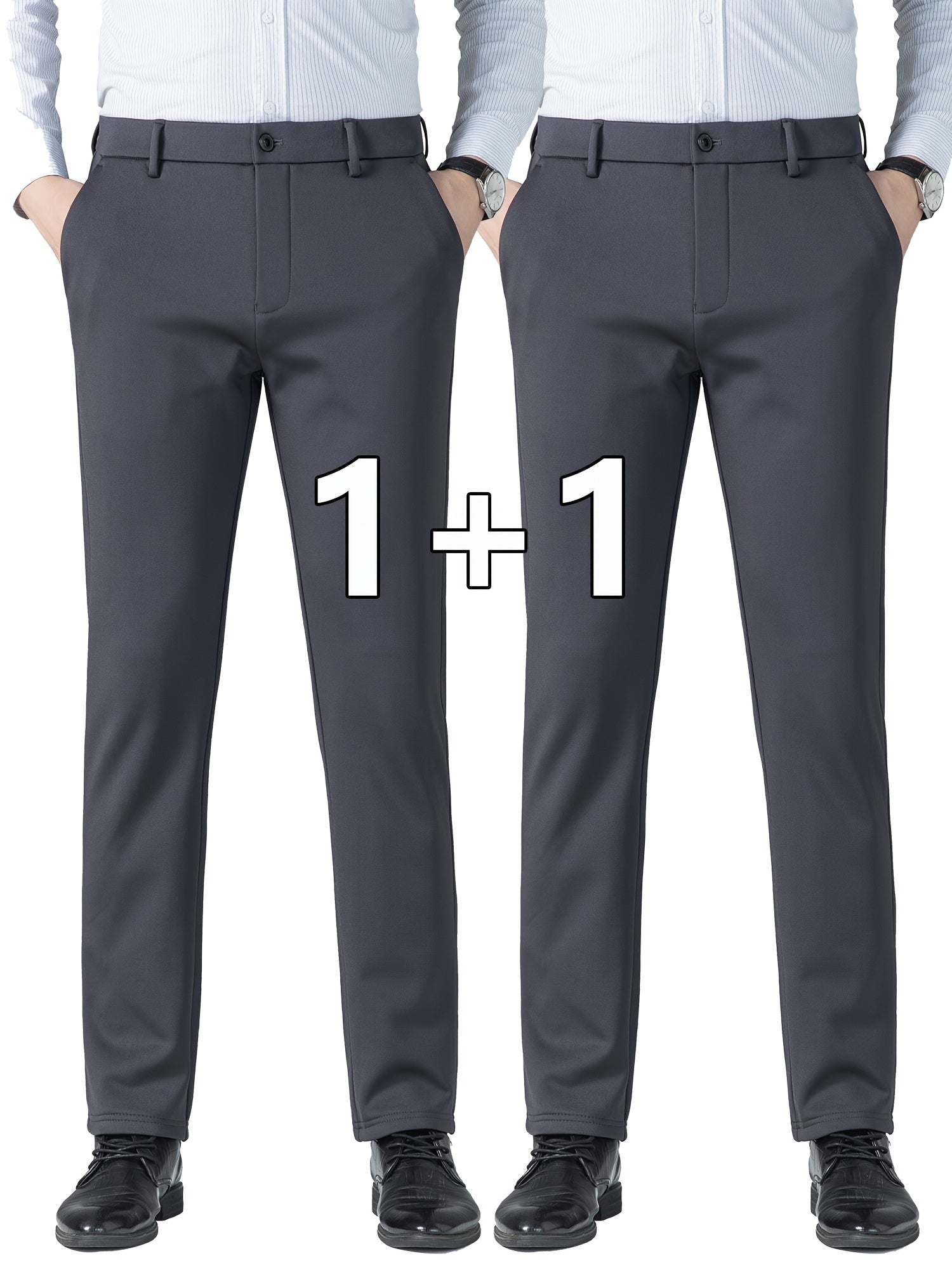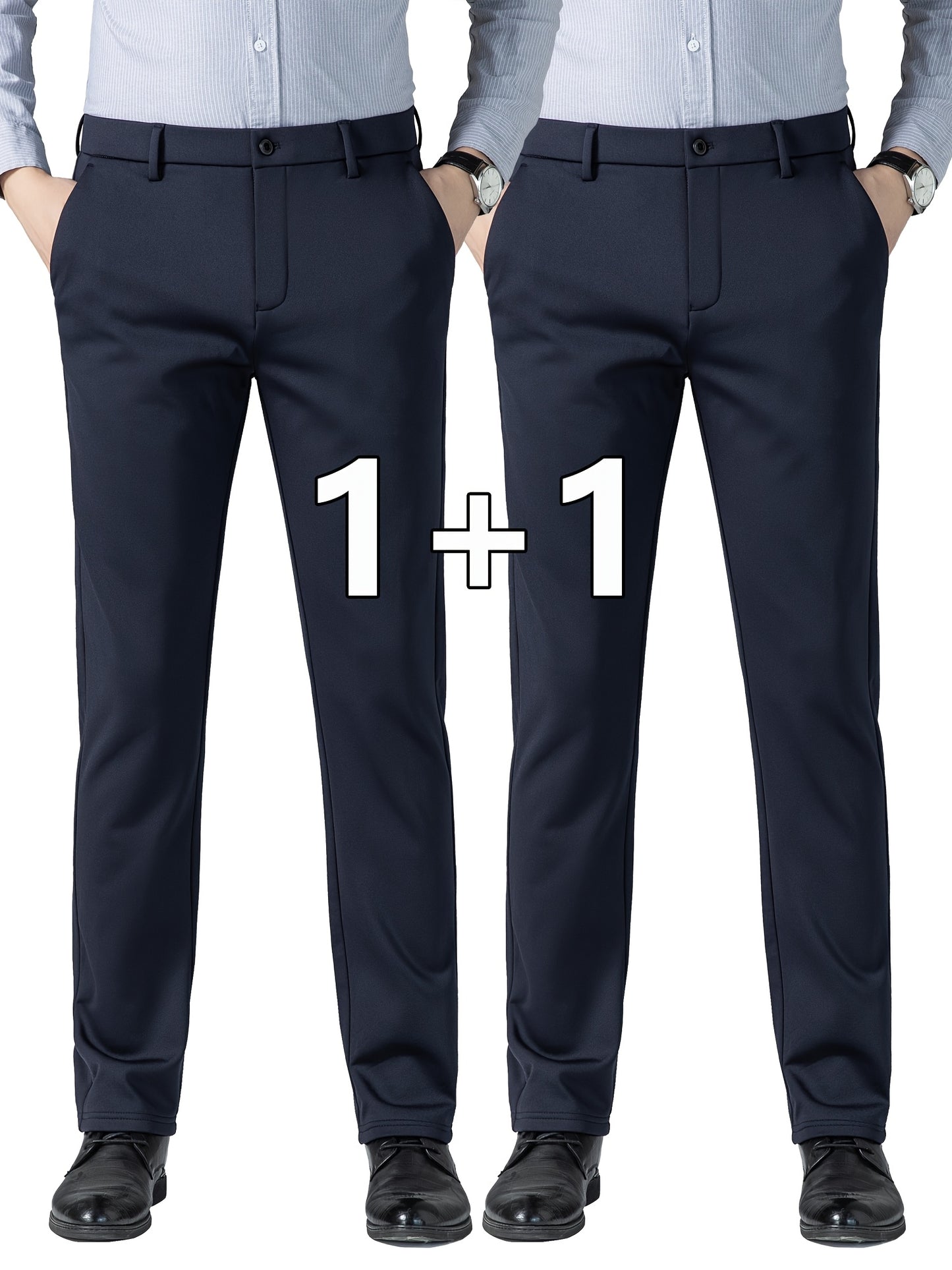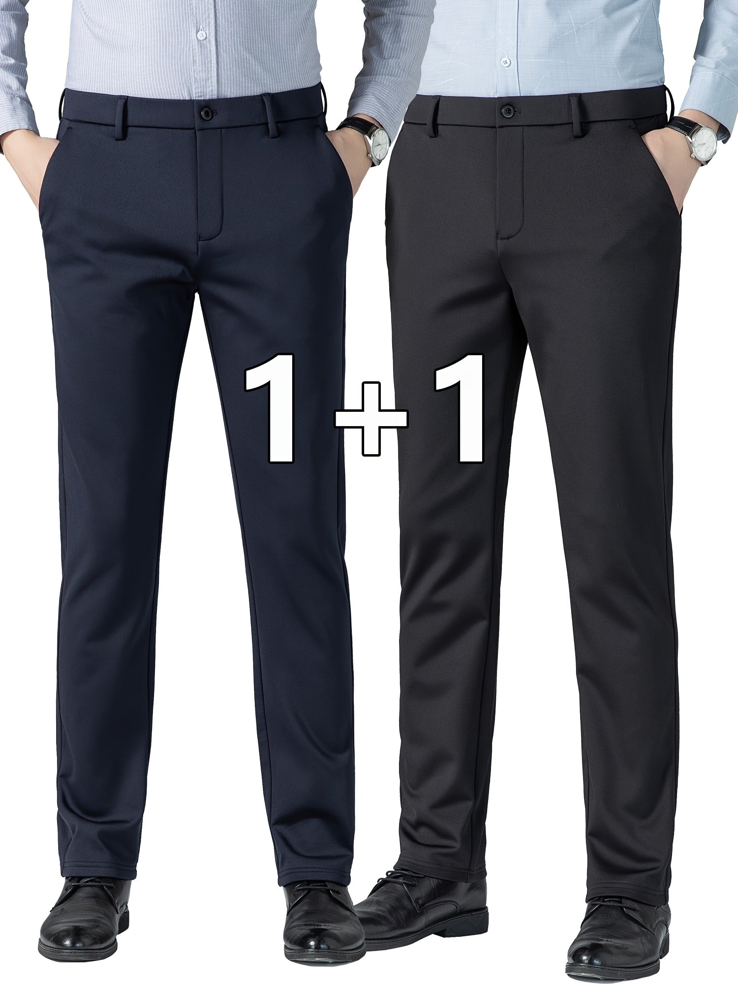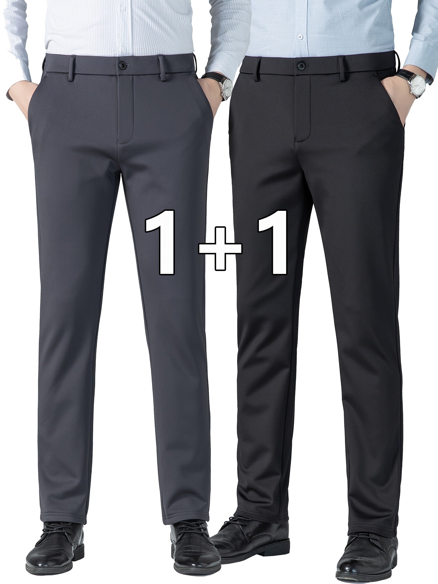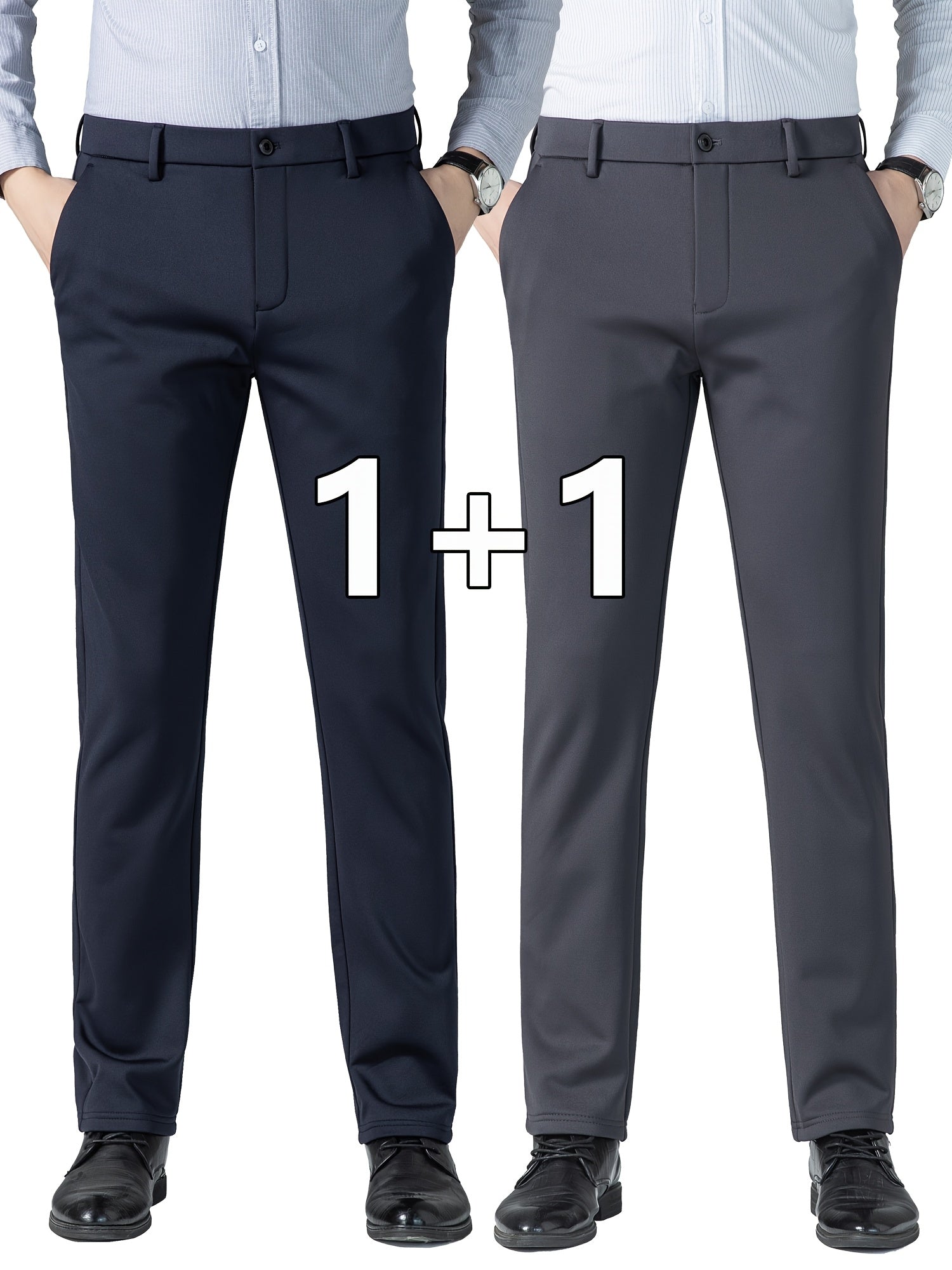 Տղամարդկանց բիզնես պատահական ձգվող շալվար 2 փաթեթով, բոլոր սեզոնային կնճիռներին դիմացկուն ոչ երկաթե երկար տաբատ, միաձույլ գույն, սովորական տեղավորվում է, դետալ կայծակաճարմանդ, 100% պոլիեսթեր, 350/180 գ/մ², աշխատանքային ոճ