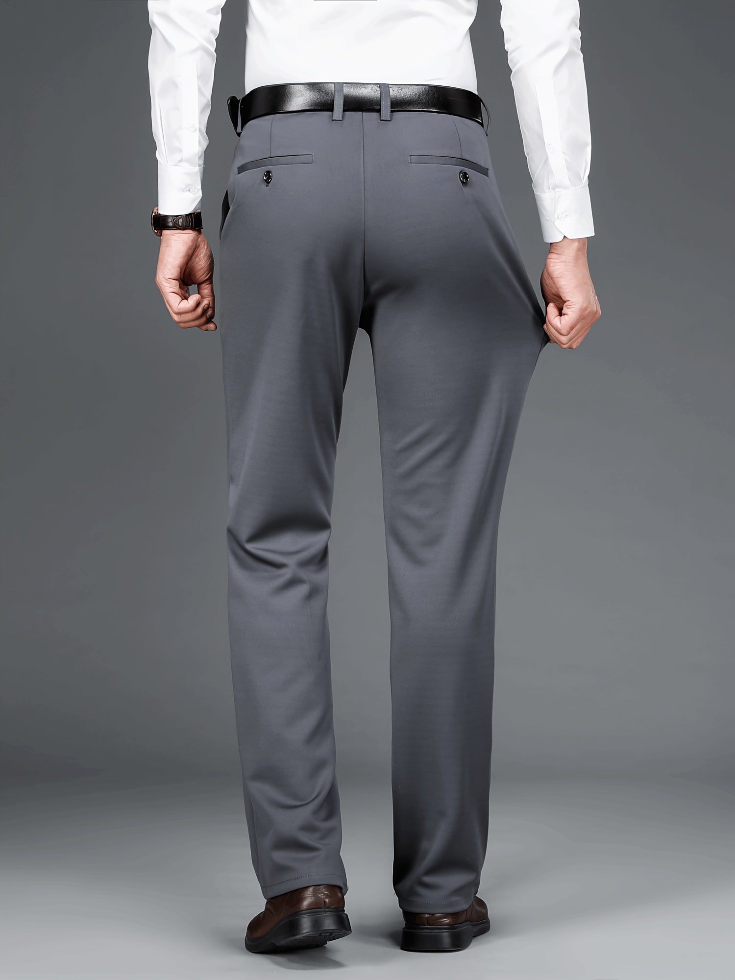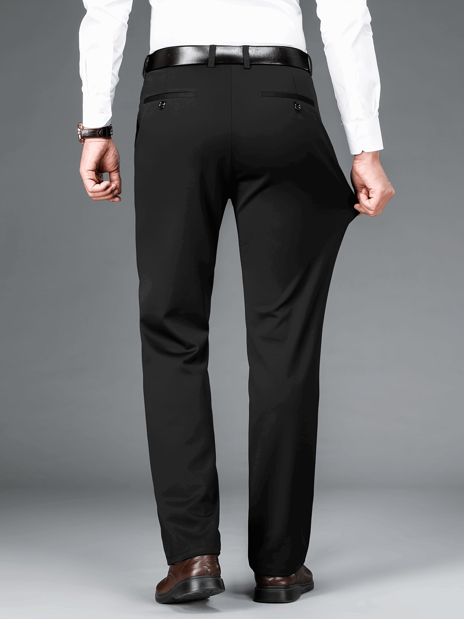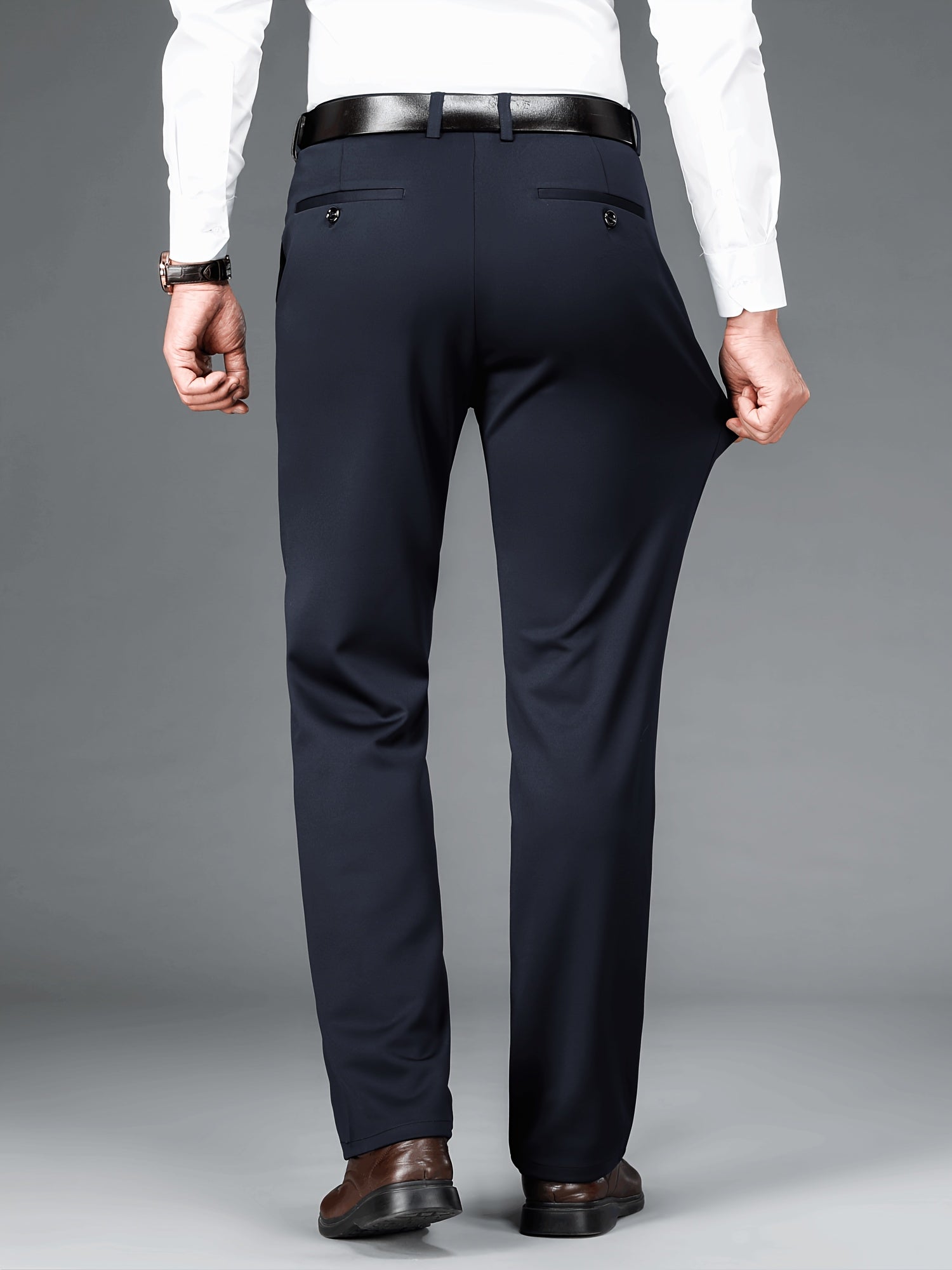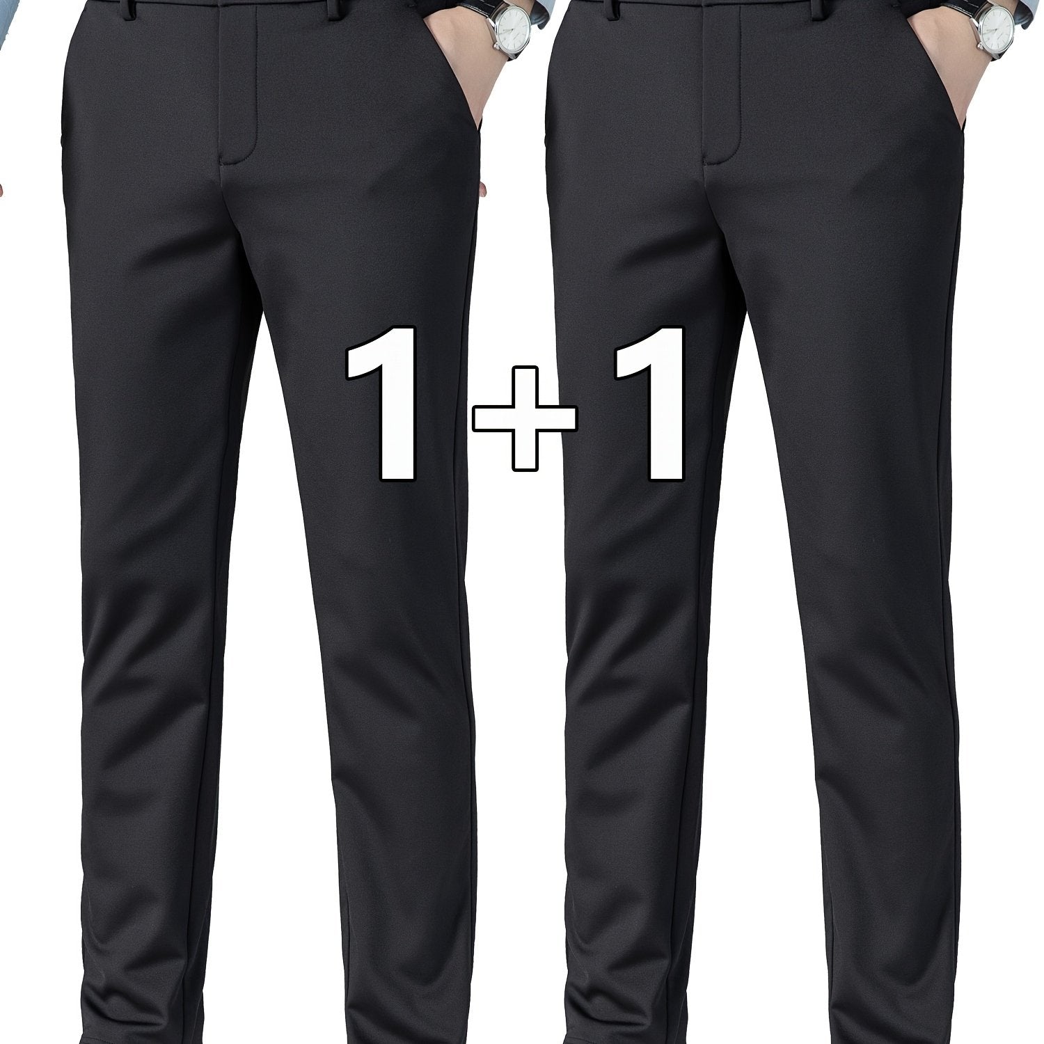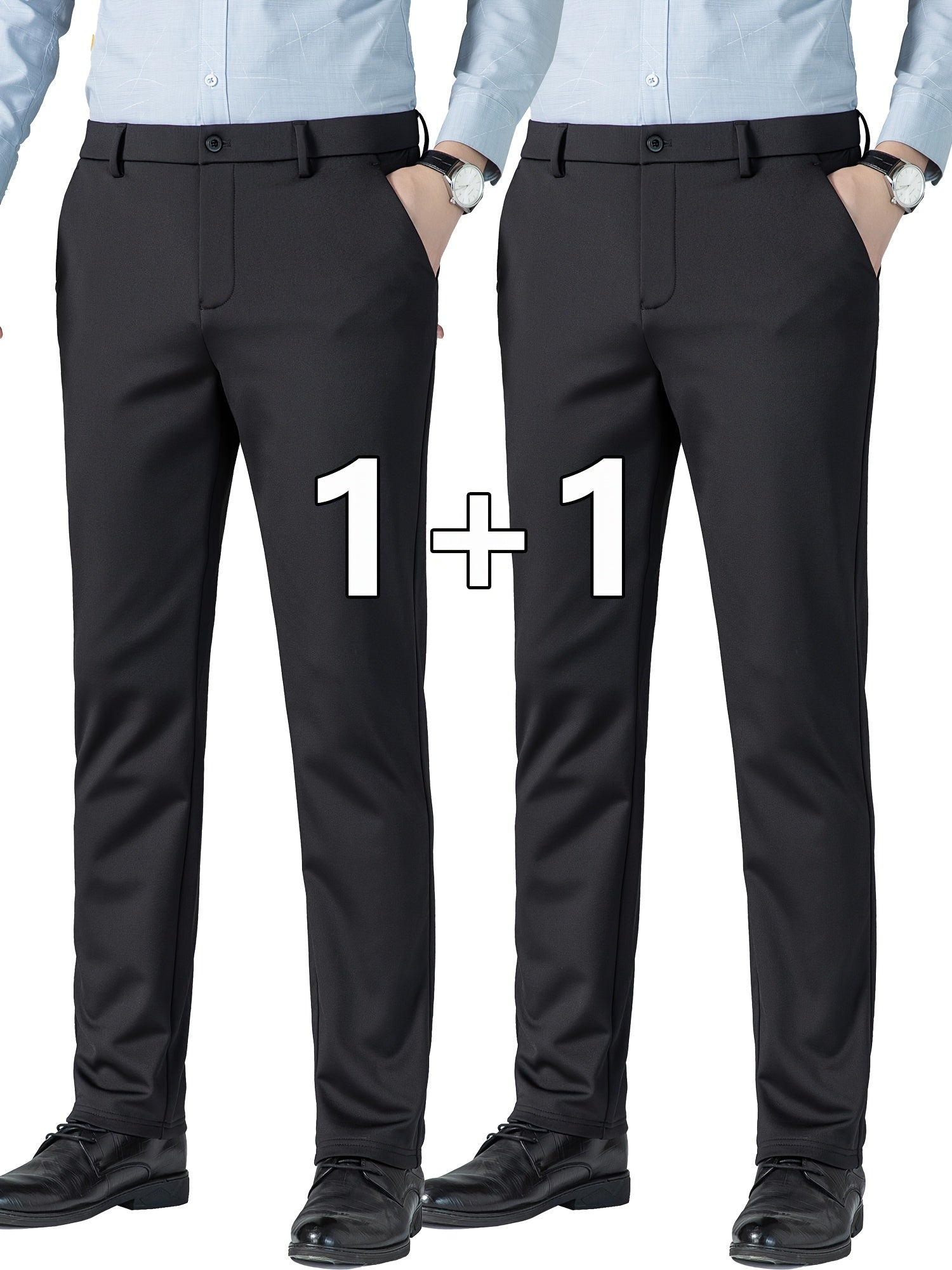 Տղամարդկանց բիզնես պատահական ձգվող շալվար 2 փաթեթով, բոլոր սեզոնային կնճիռներին դիմացկուն ոչ երկաթե երկար տաբատ, միաձույլ գույն, սովորական տեղավորվում է, դետալ կայծակաճարմանդ, 100% պոլիեսթեր, 350/180 գ/մ², աշխատանքային ոճ
