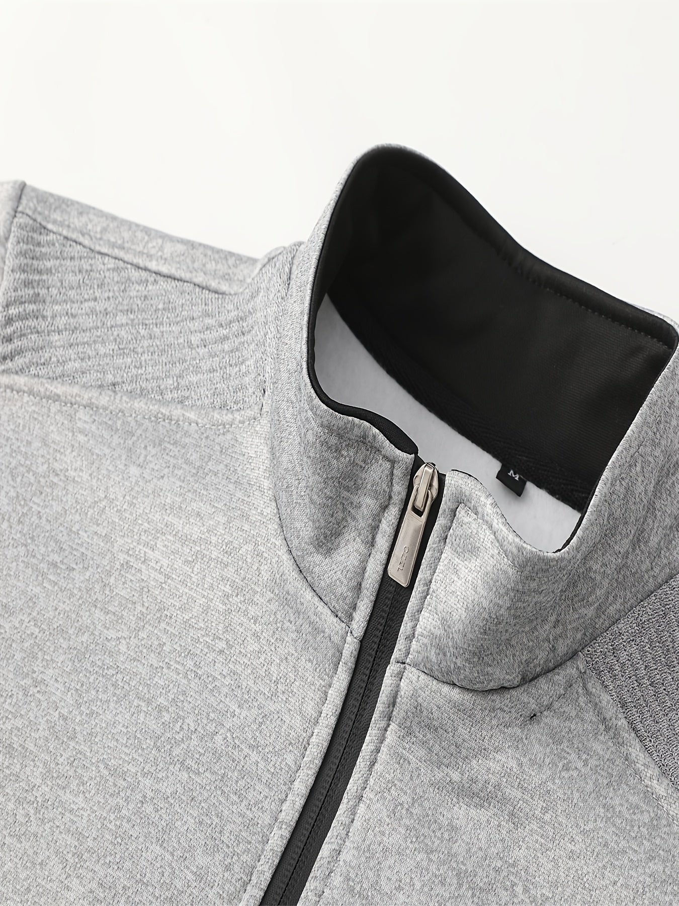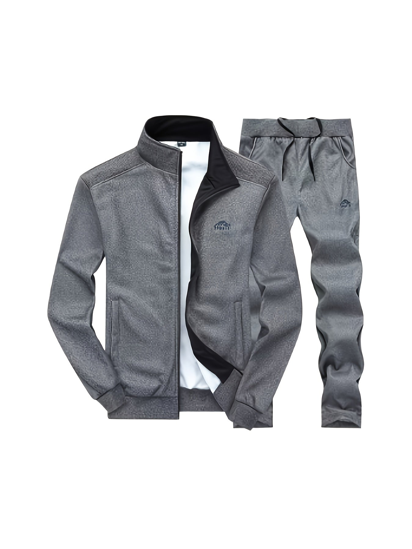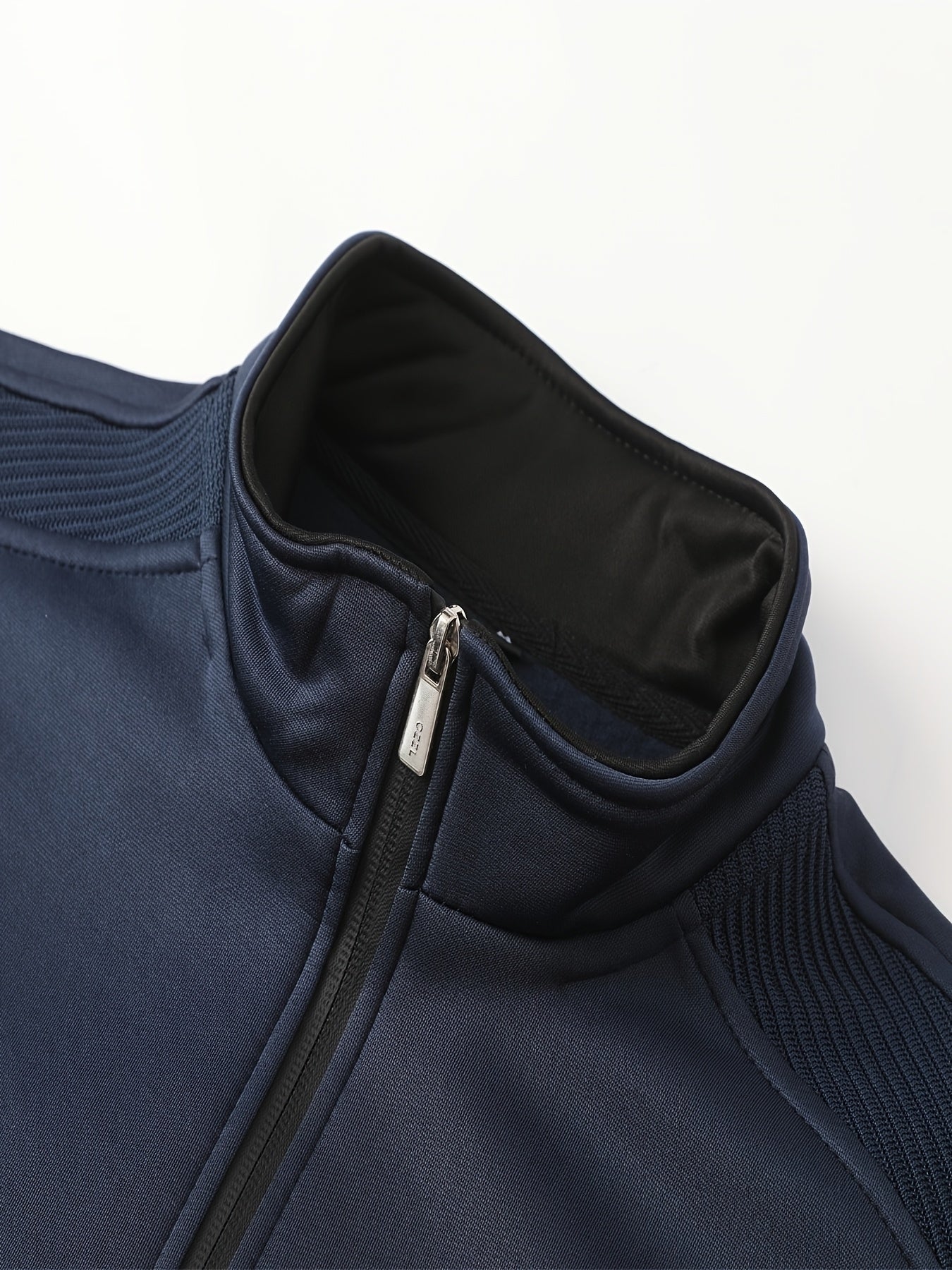 2025 Men'S Athletic Set - White & Black, Long Sleeve, Collared, Non-Stretch Fabric, with Pockets, for Spring/Fall, Casual Sportswear, Casual Sportswear|Modern Athletic|Pocketed Jacket