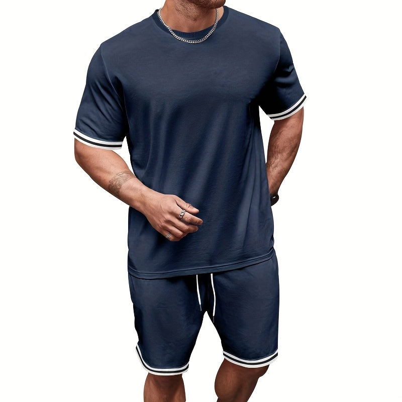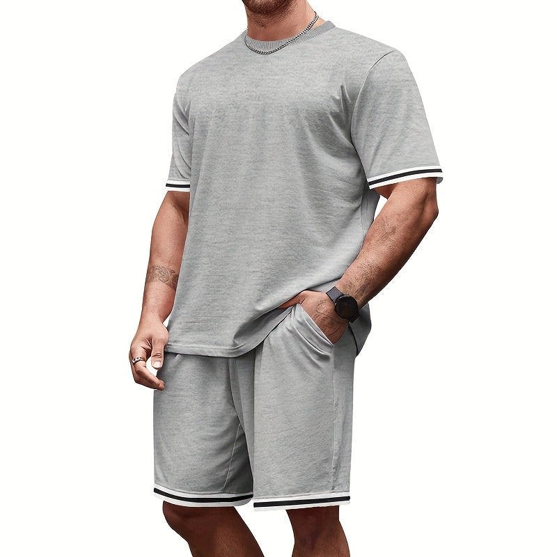2025 թվականի նոր տղամարդկանց համար նախատեսված կլոր վզնոցով կարճ թևքերով ամառային շապիկ՝ միագույն, տղամարդու կոստյումով