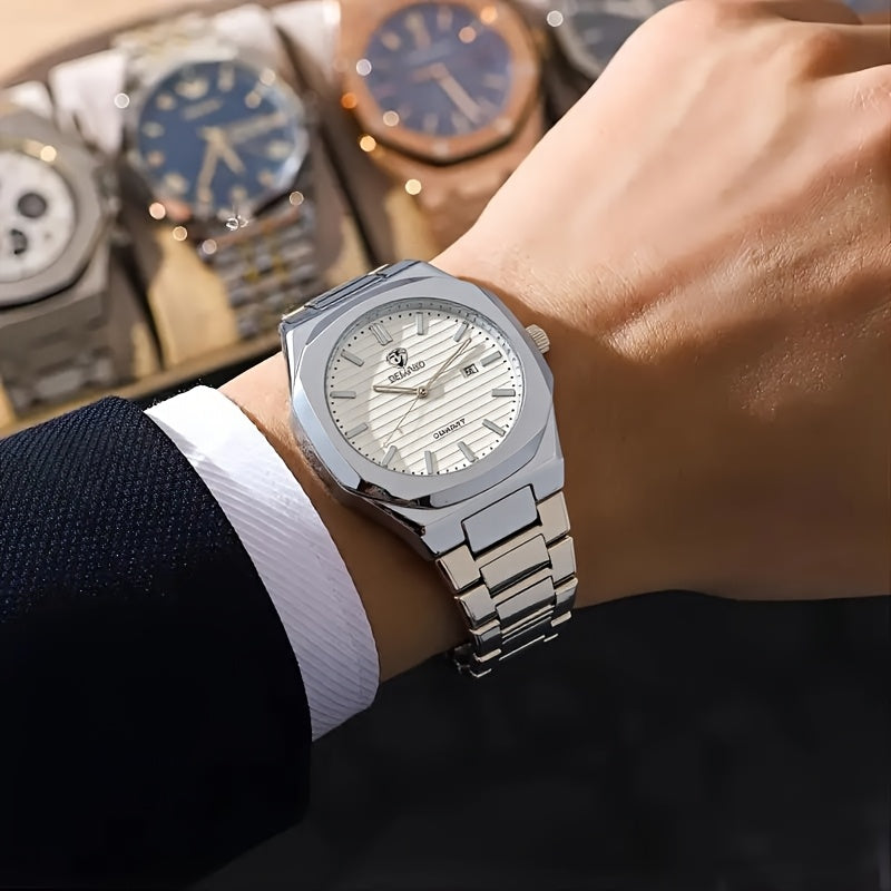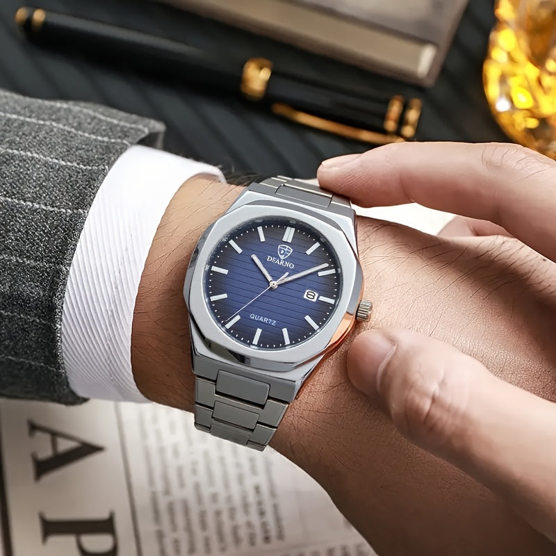 2025 թվականի նոր տղամարդու ժամացույց, բազմակողմանի և բարձրակարգ, ոճային քվարցային ժամացույց չժանգոտվող պողպատե ժապավենով, կատարյալ է ինչպես գործնական, այնպես էլ առօրյա հագուստի համար, իդեալական նվեր տոների համար։