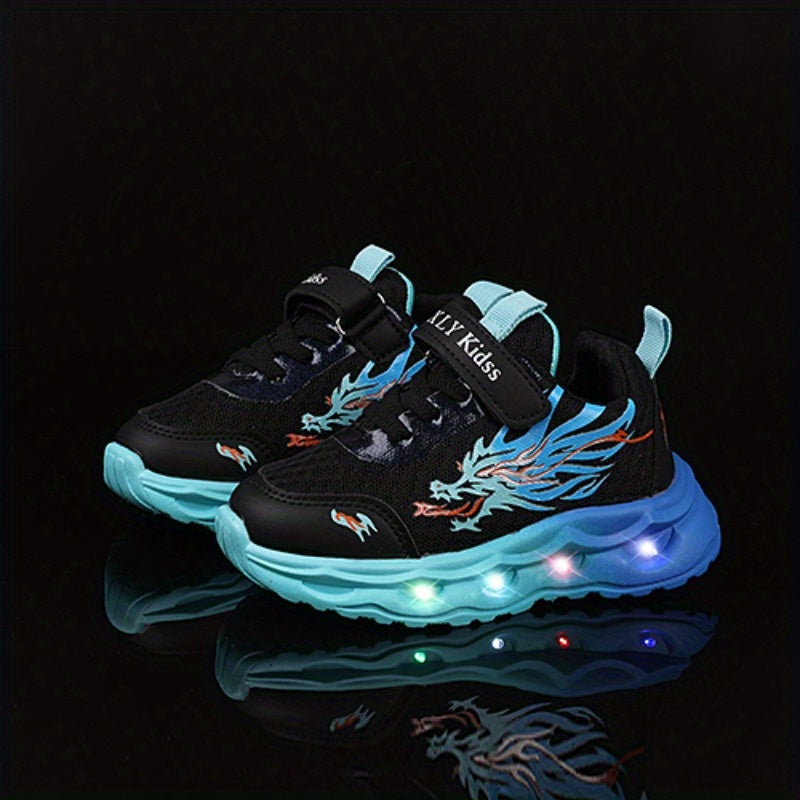 2025 New Youngsters' LED Light-Up Sneakers - Sparkling Cartoon Dad Shoes for Boys & Girls, Closure, Breathable Fabric Upper & Durable PVC Sole, All-Season Casual Wear, Kid Shoes, Everyday Youngsters'S Footwear, Fun Youngsters