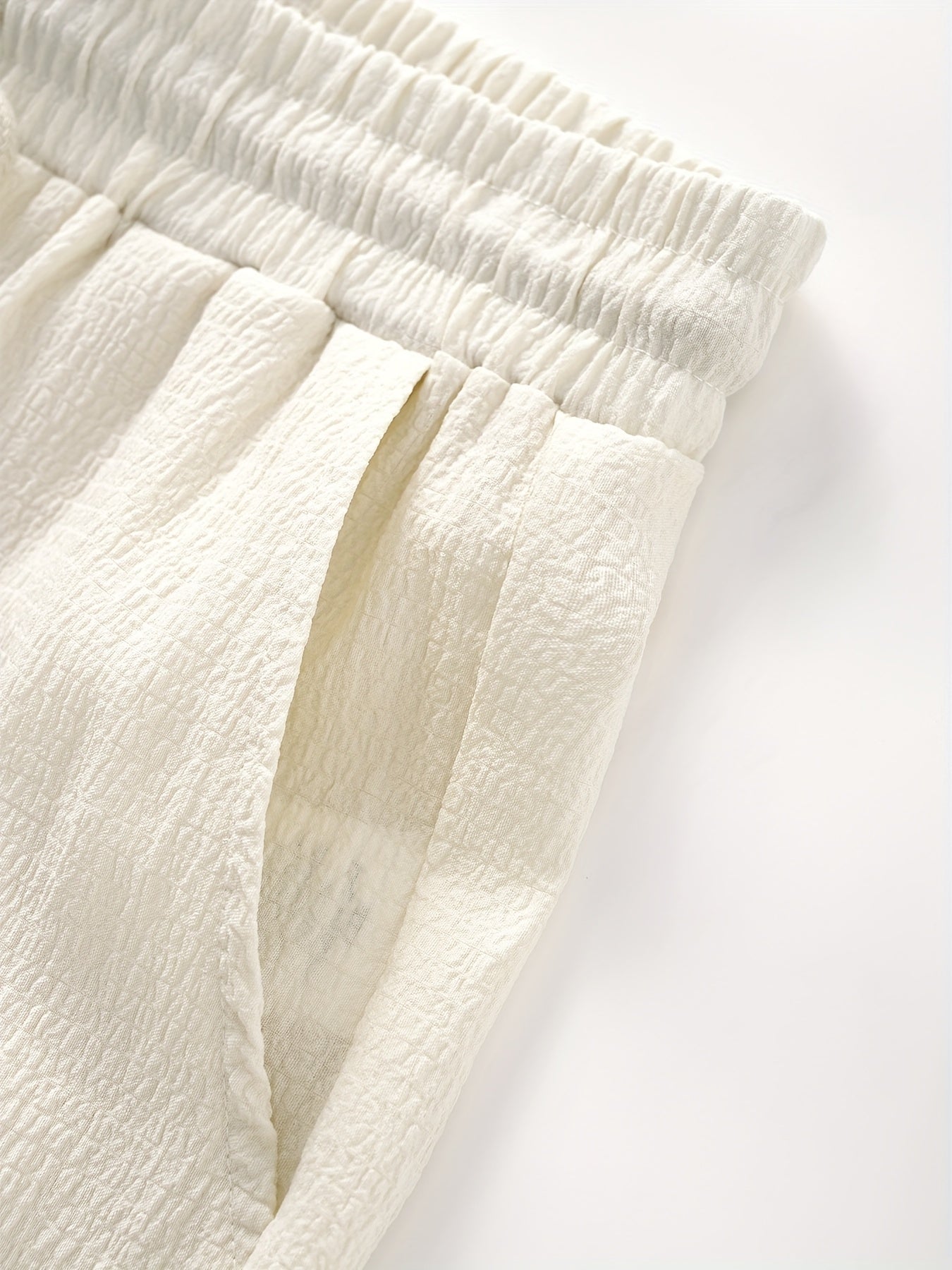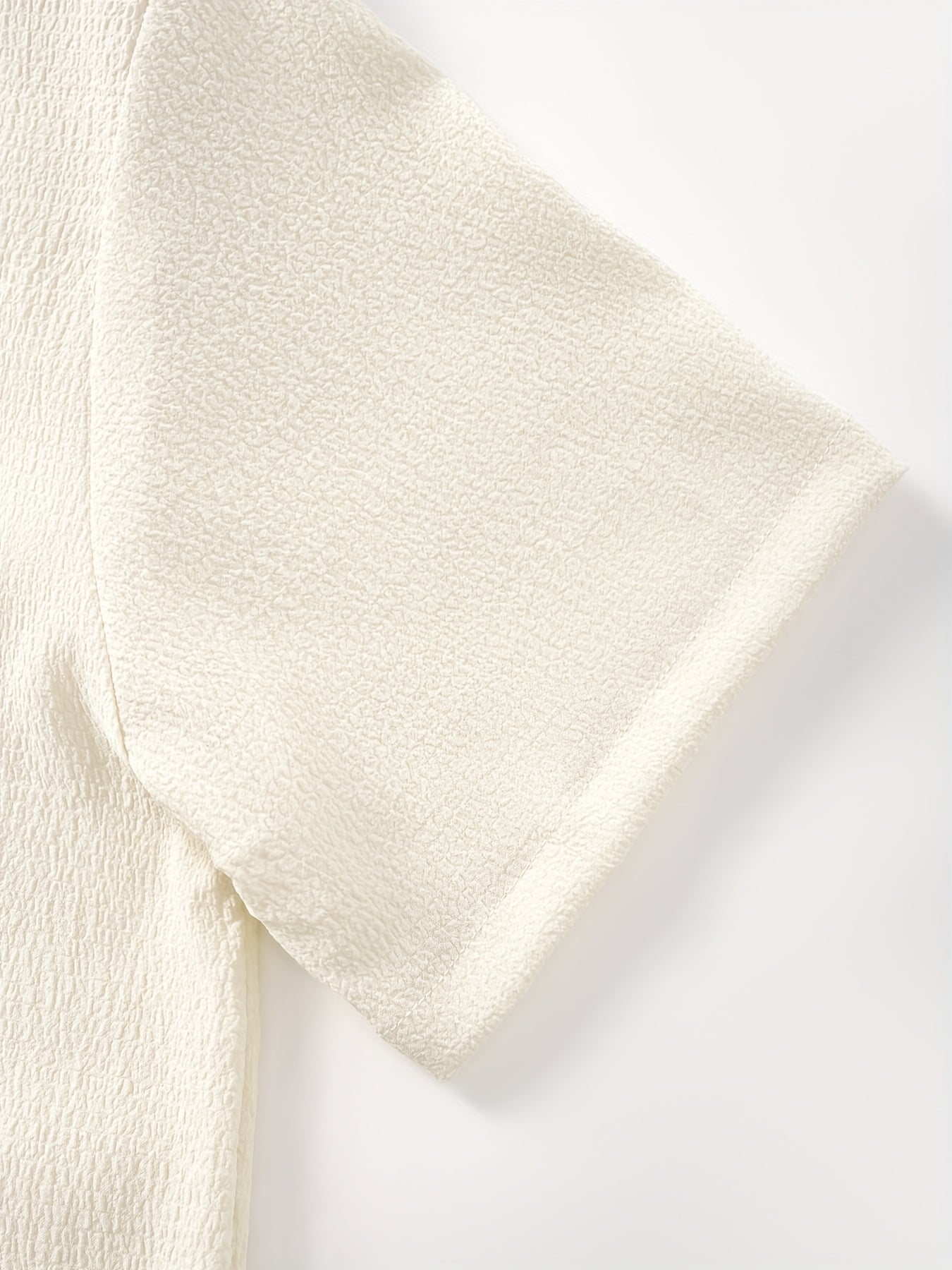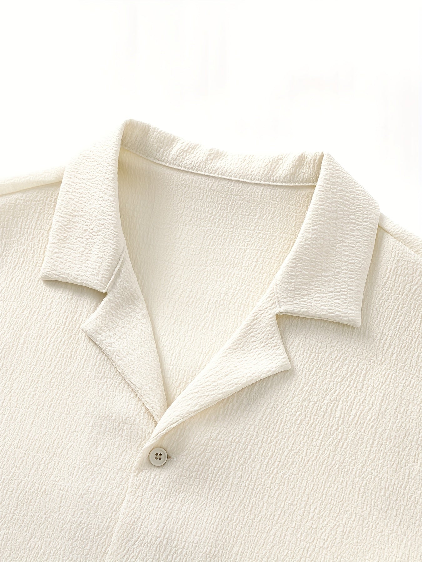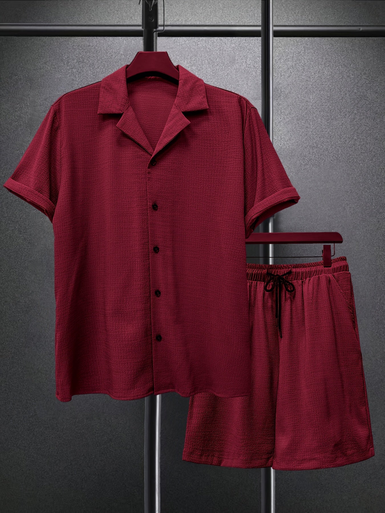 2025 spring and summer new small checkered texture shirt and shorts suit, casual solid color suit collar short-sleeved shirt and shorts Men's 2pcs suit, summer light top and pants Men's beach suit, daily outing, casual travel