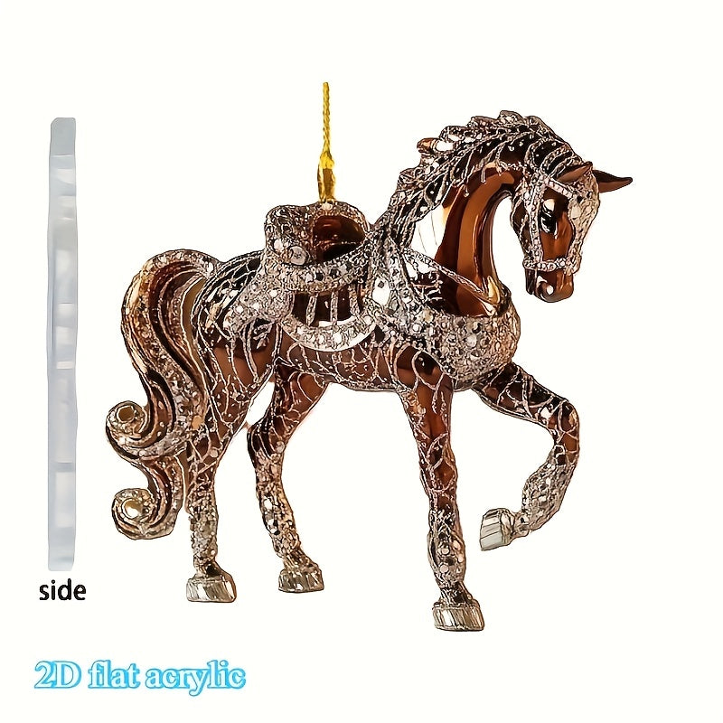 2D Flat, Elegant Golden Horseshoe Pendant - 2D Flat Acrylic Christmas Tree Ornament, Hanging Decoration for Home, Office, Car Interior - No Electricity Needed, Perfect Holiday Gift For Christmas, Halloween, Thanksgiving, New