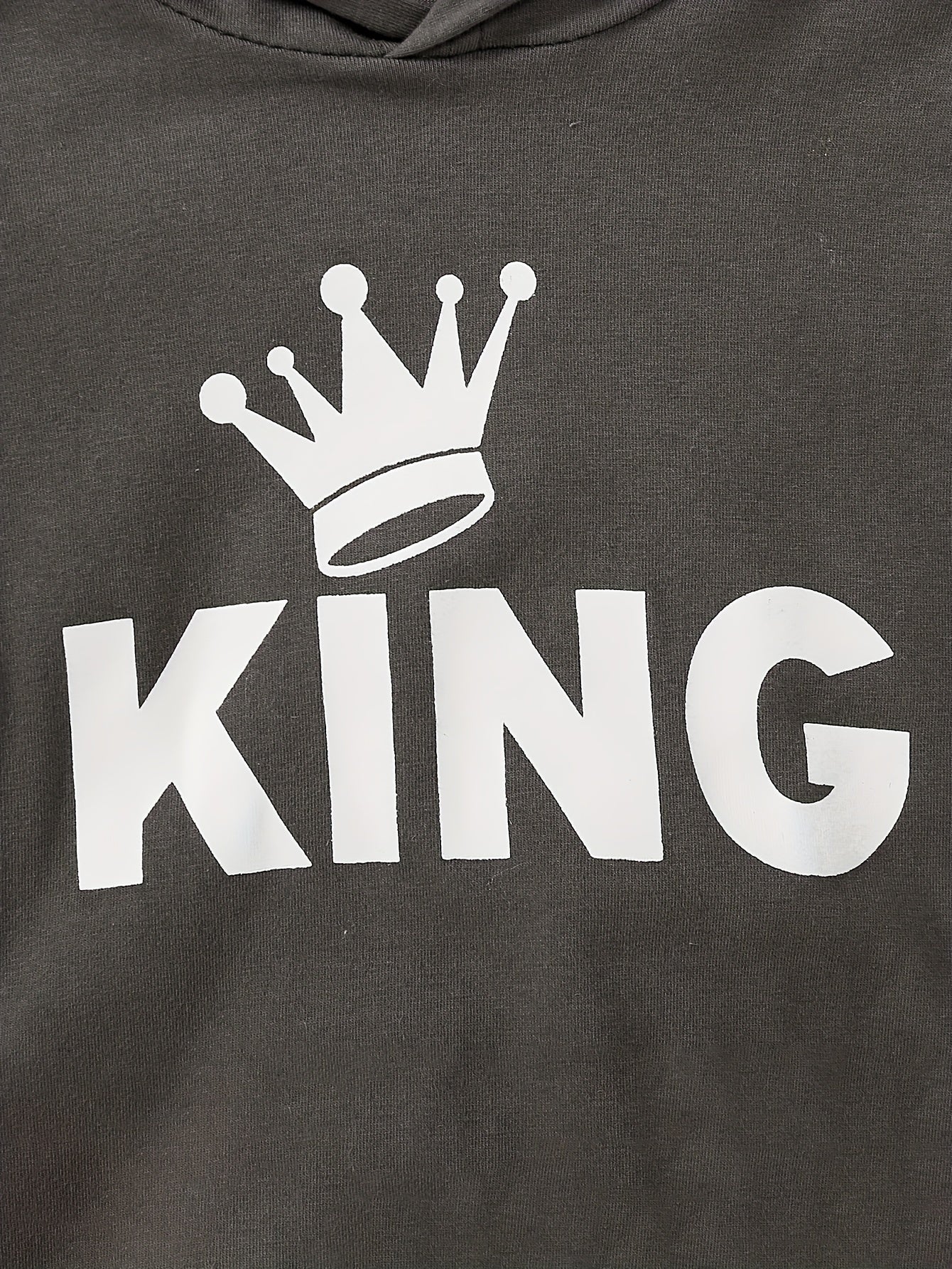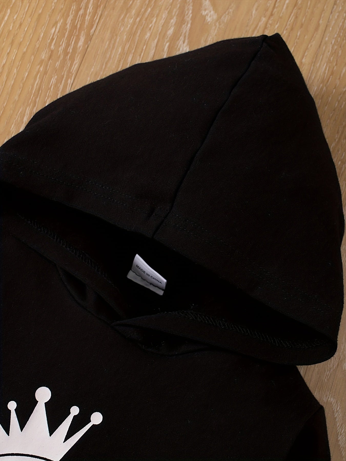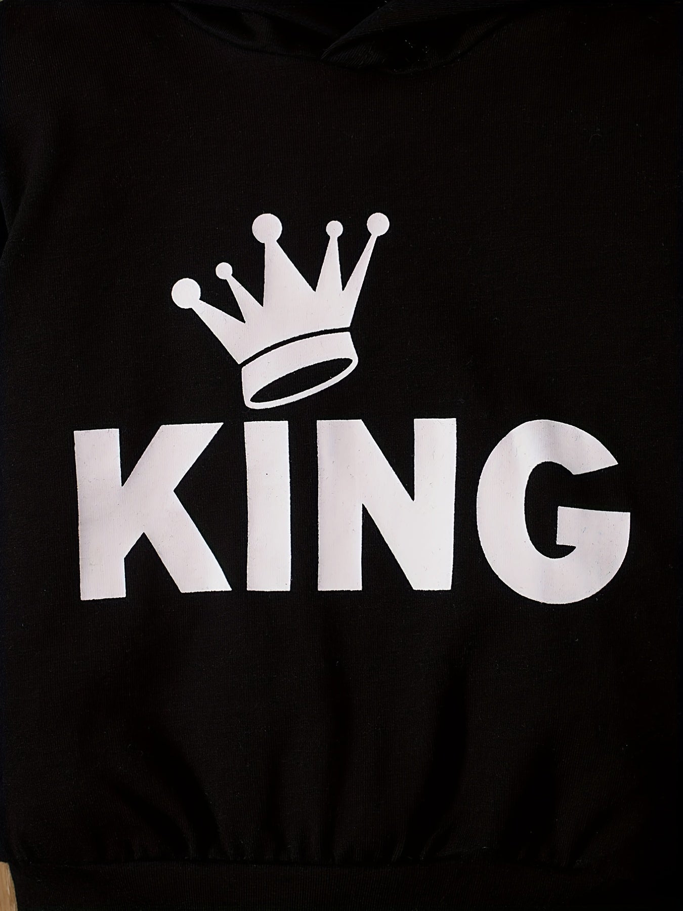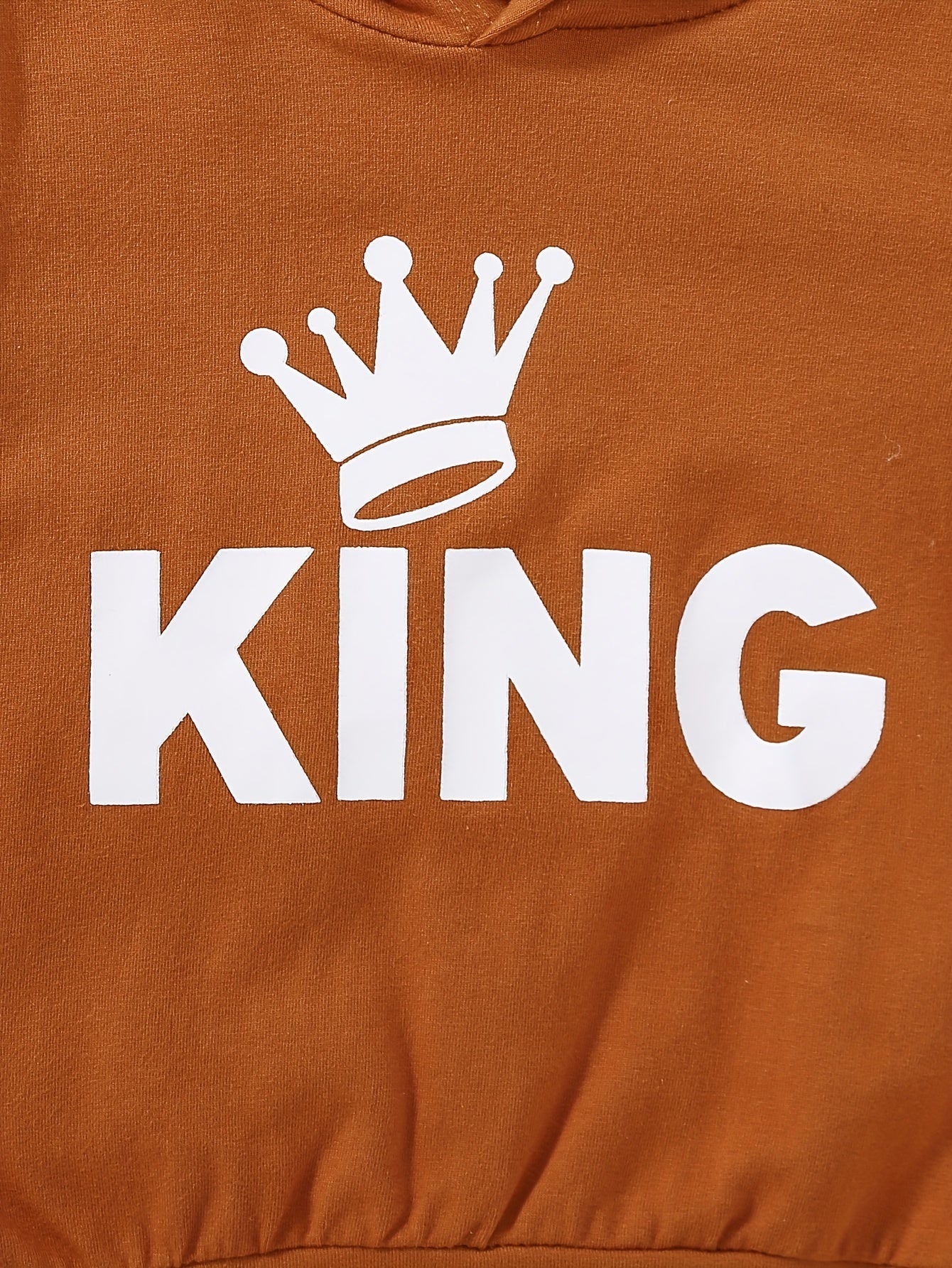 2 հատ Baby Boy's Casual Fashion Outfit Hooded KING Print երկարաթև մարզաշապիկ + շալվար բացօթյա հավաքածու