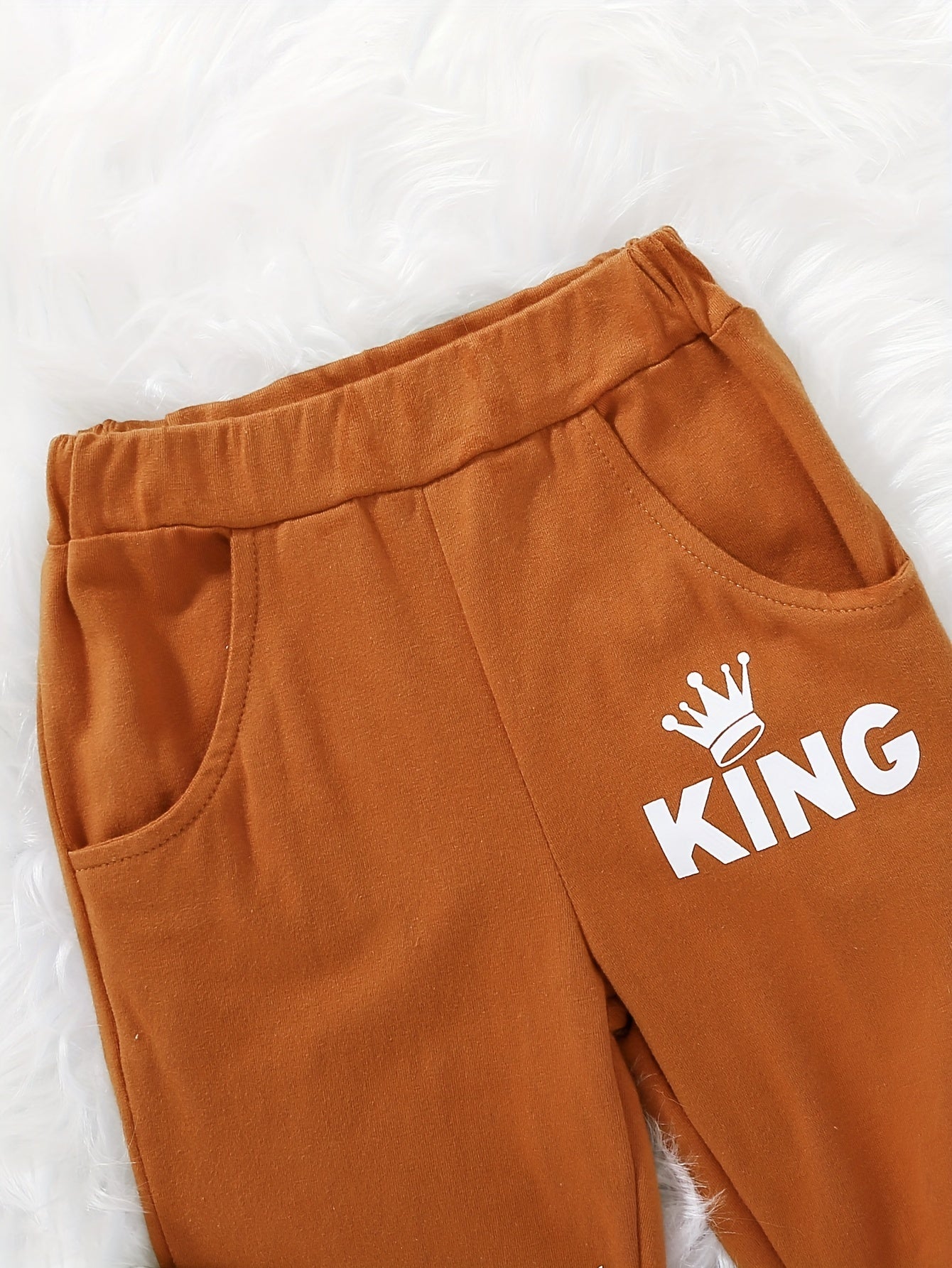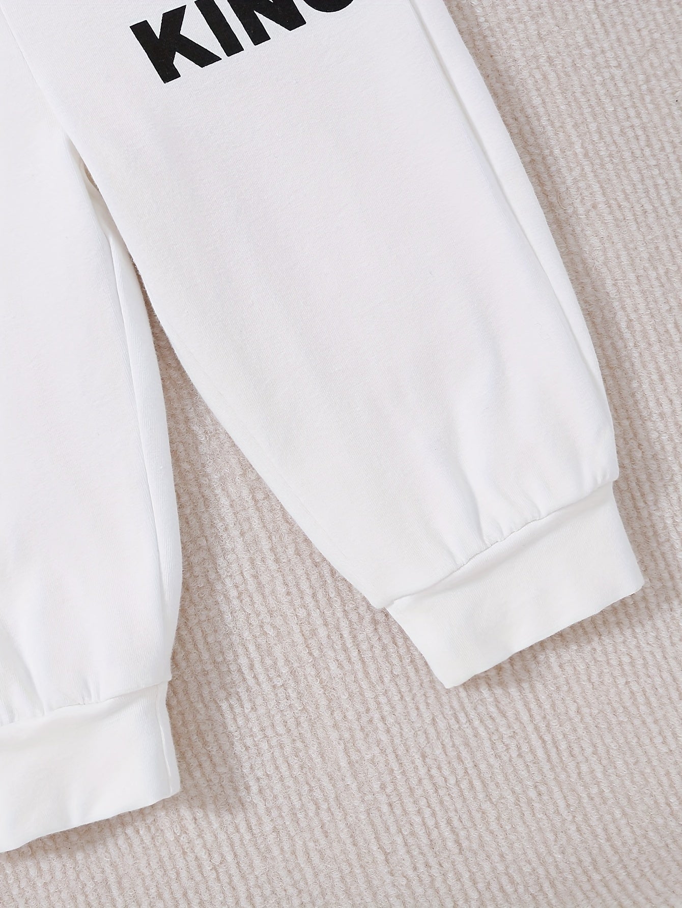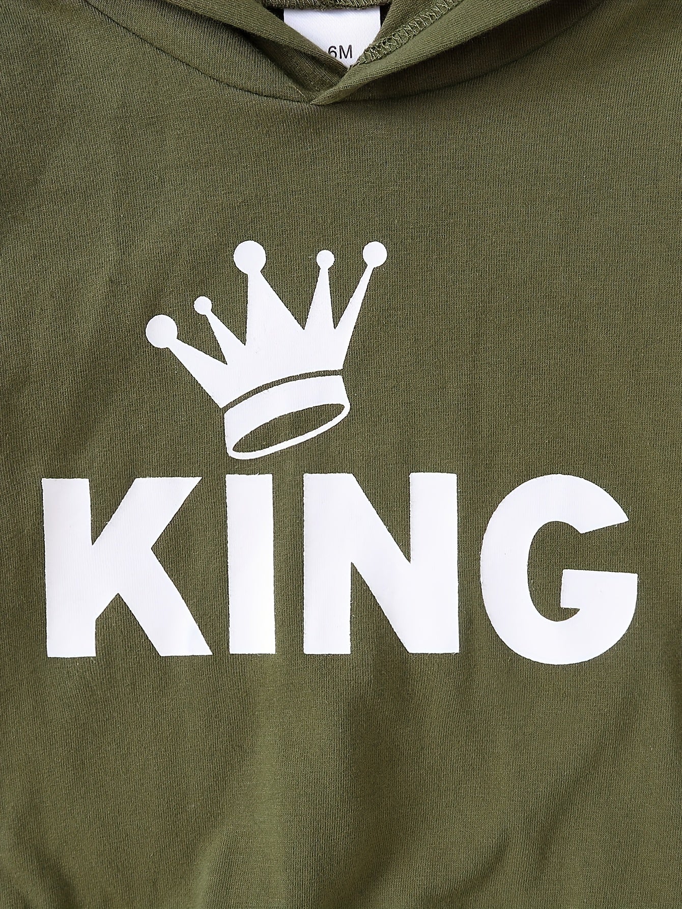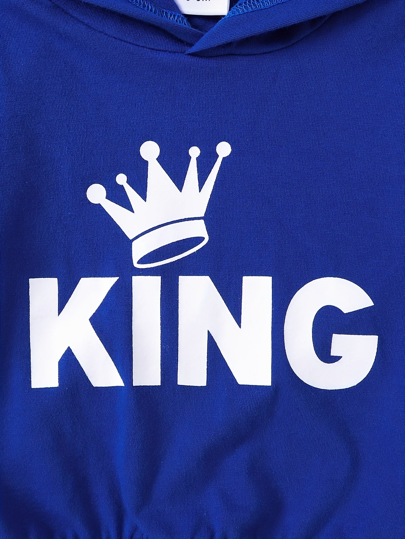 2 հատ Baby Boy's Casual Fashion Outfit Hooded KING Print երկարաթև մարզաշապիկ + շալվար բացօթյա հավաքածու