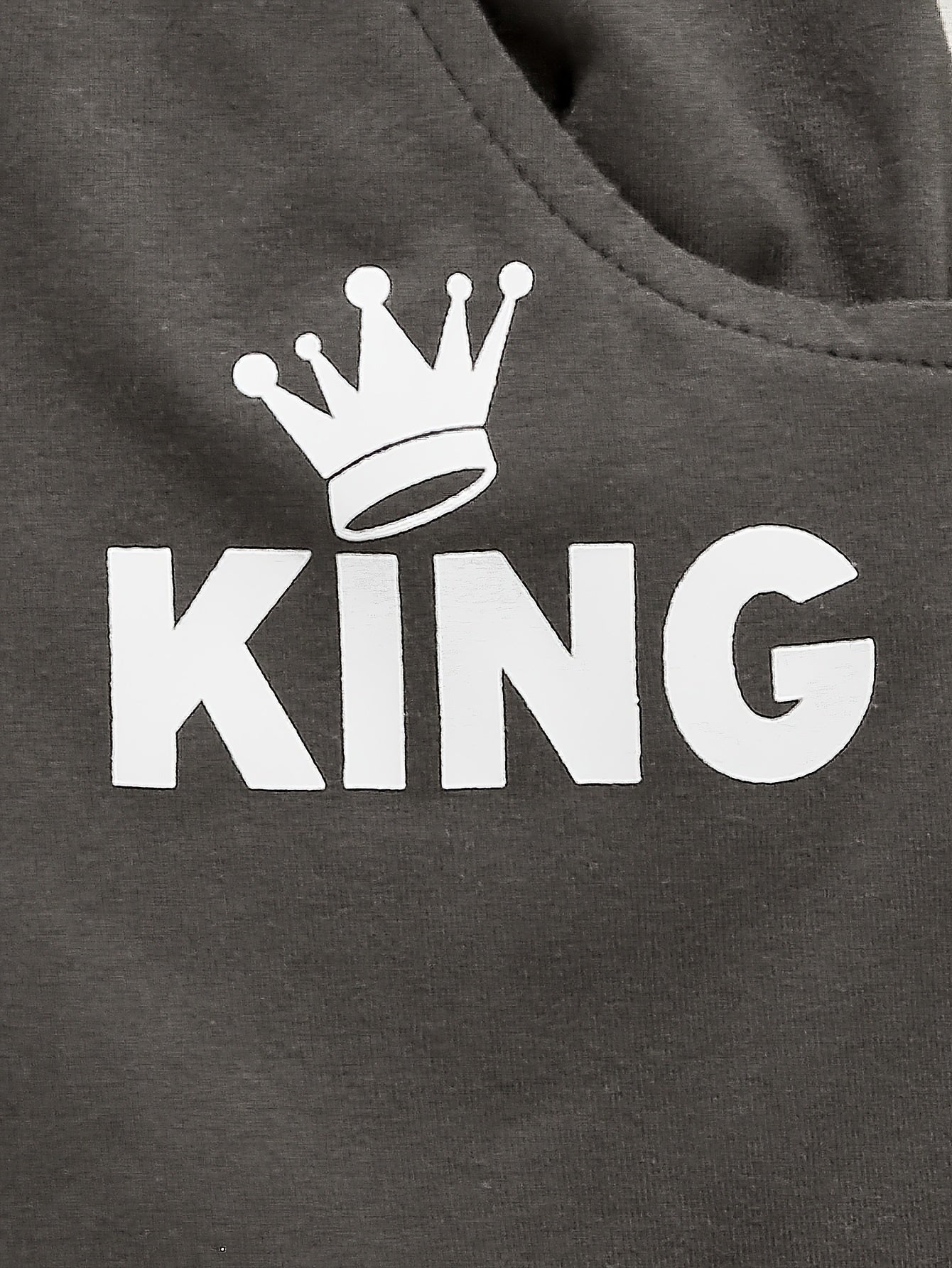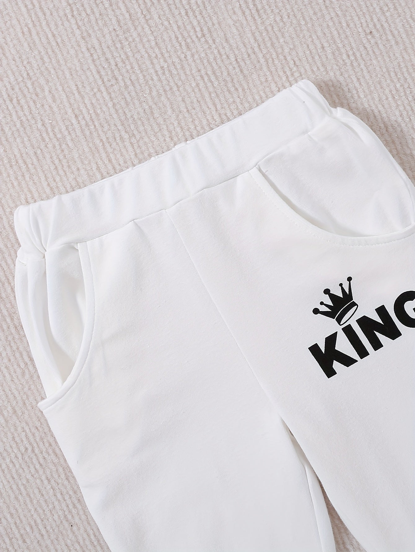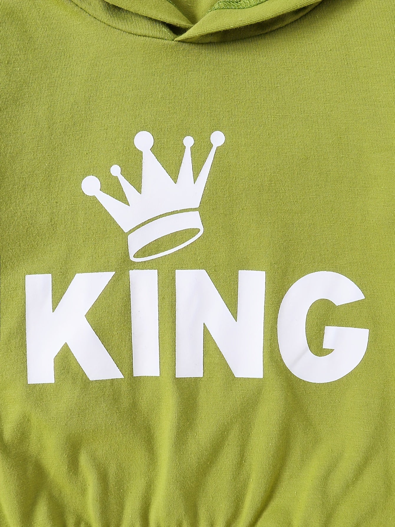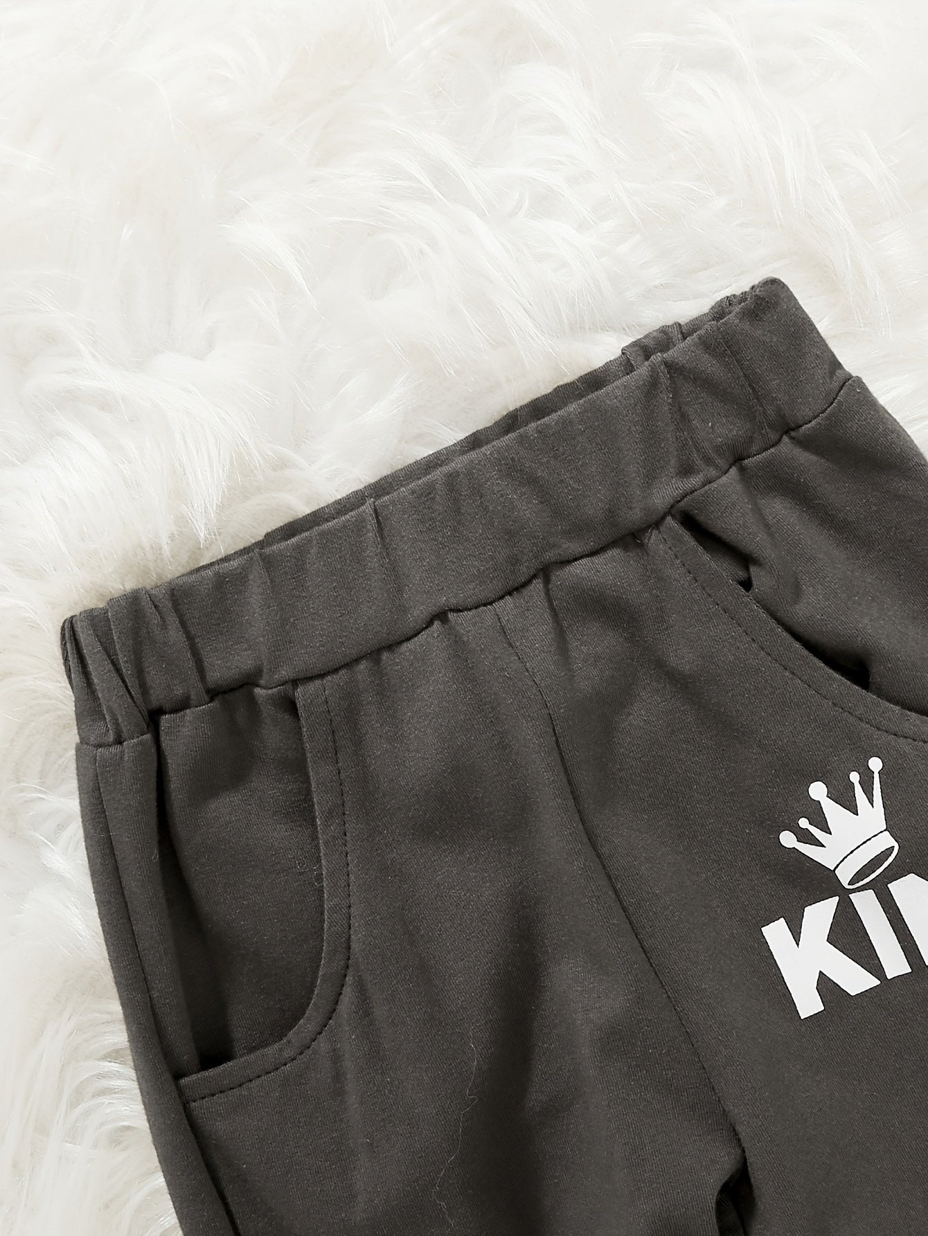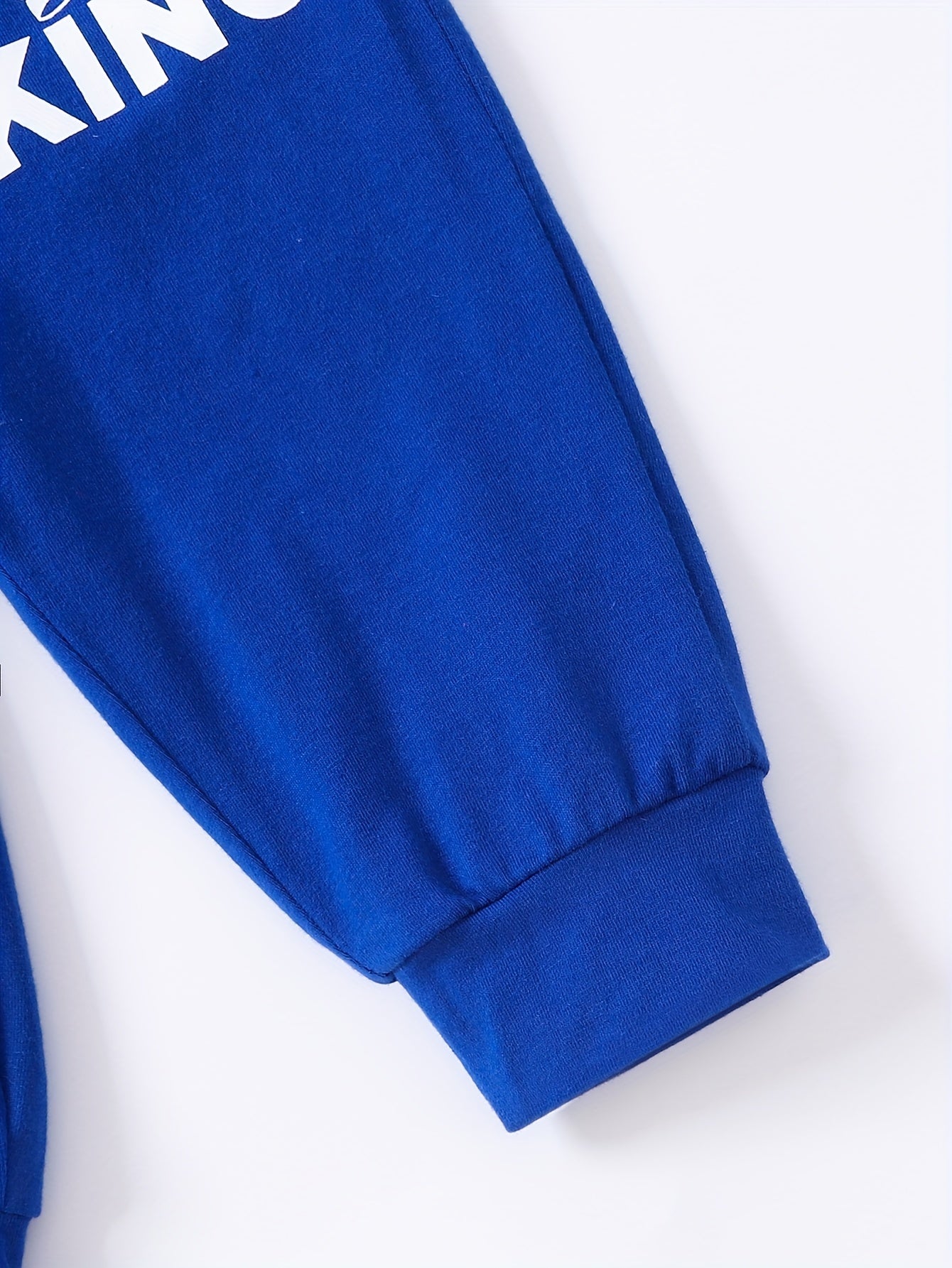 2 հատ Baby Boy's Casual Fashion Outfit Hooded KING Print երկարաթև մարզաշապիկ + շալվար բացօթյա հավաքածու