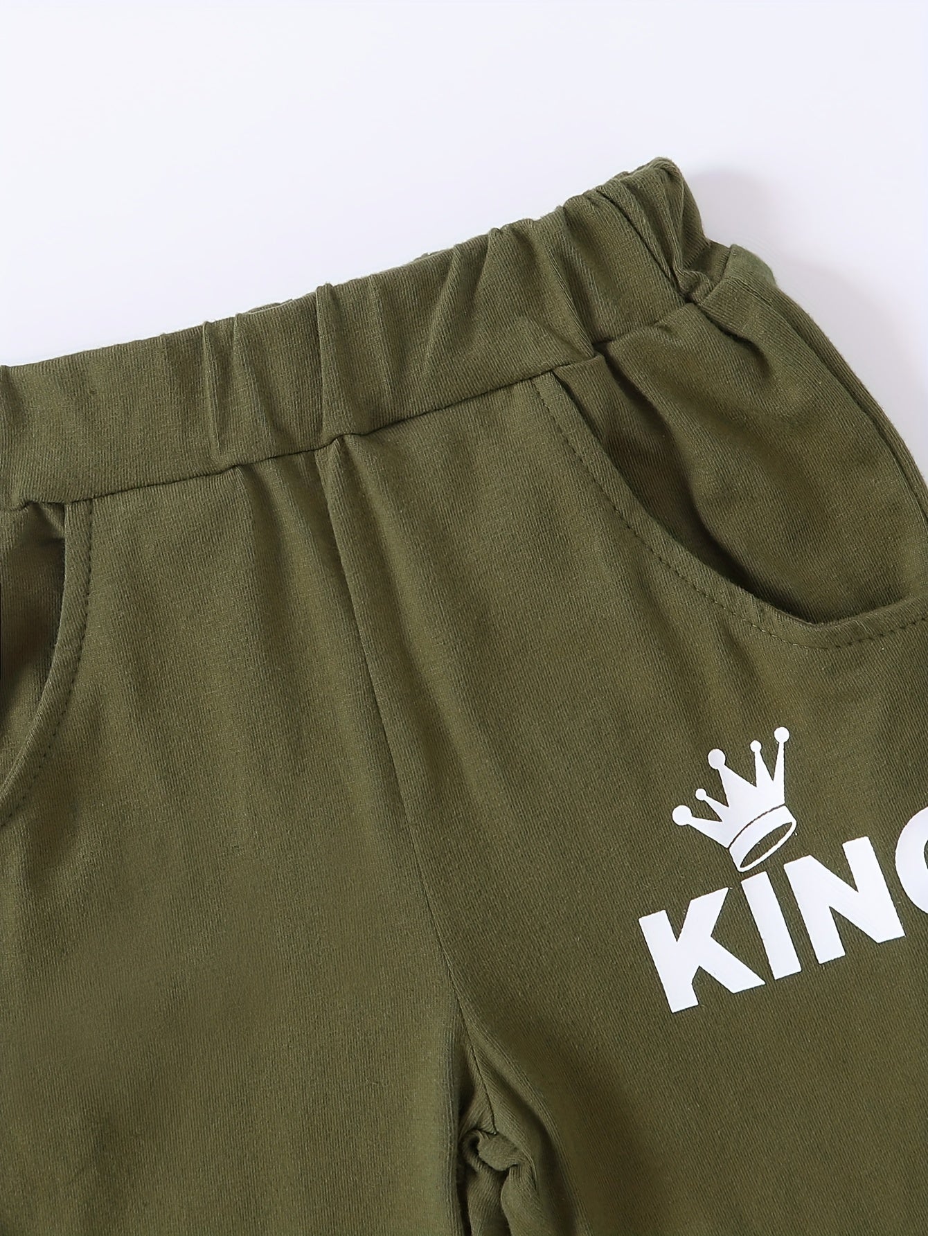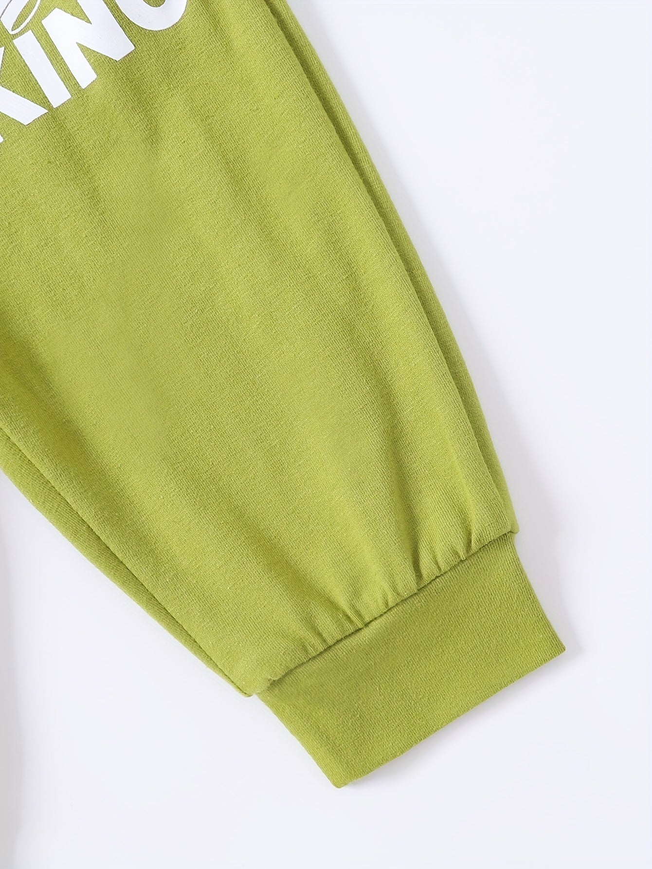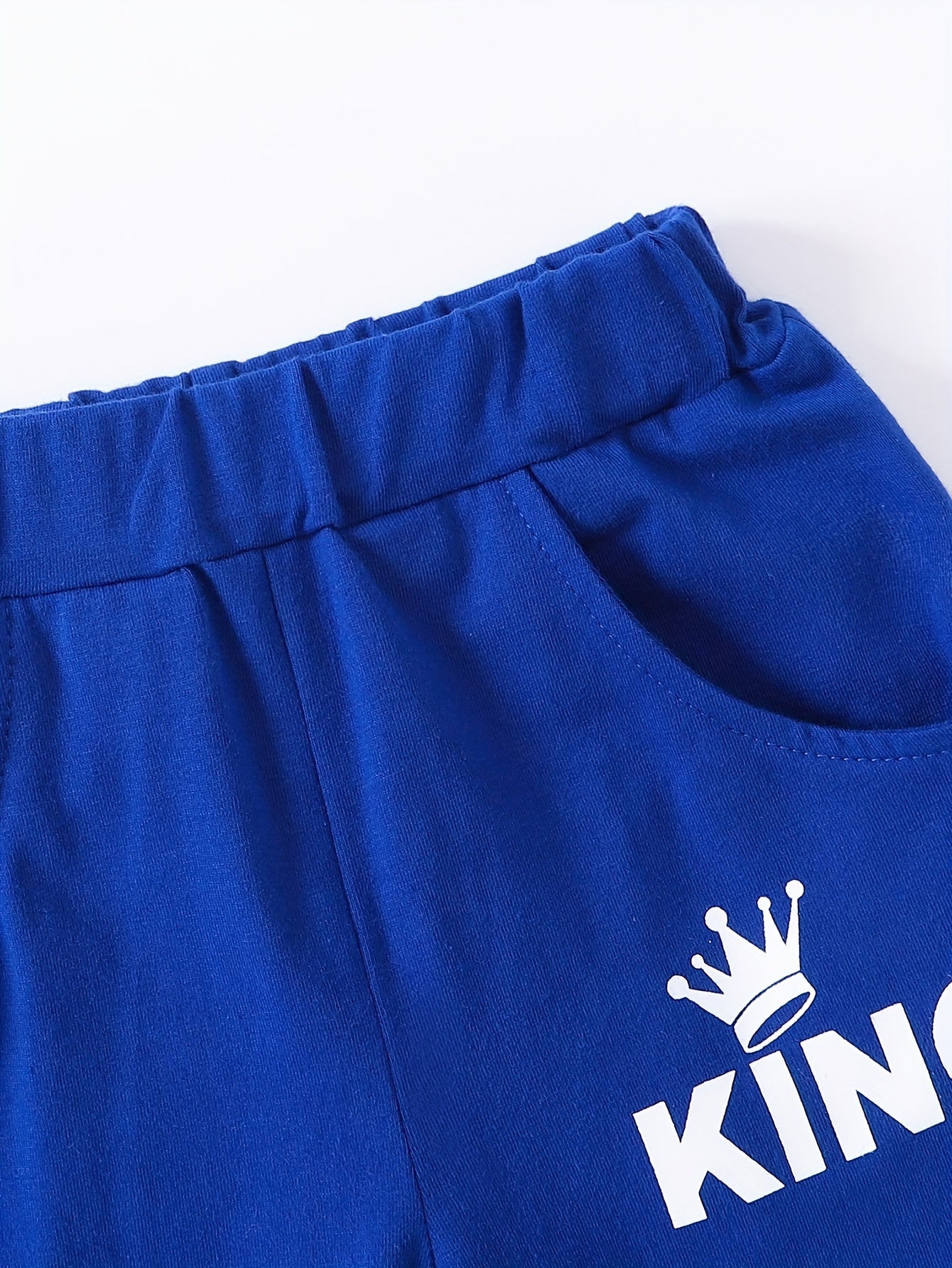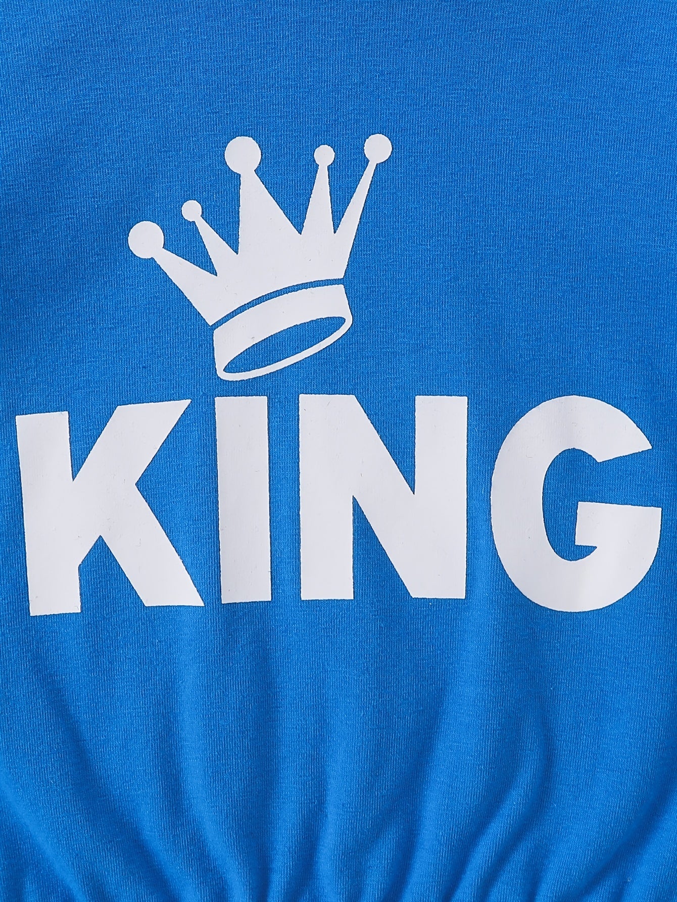 2 հատ Baby Boy's Casual Fashion Outfit Hooded KING Print երկարաթև մարզաշապիկ + շալվար բացօթյա հավաքածու