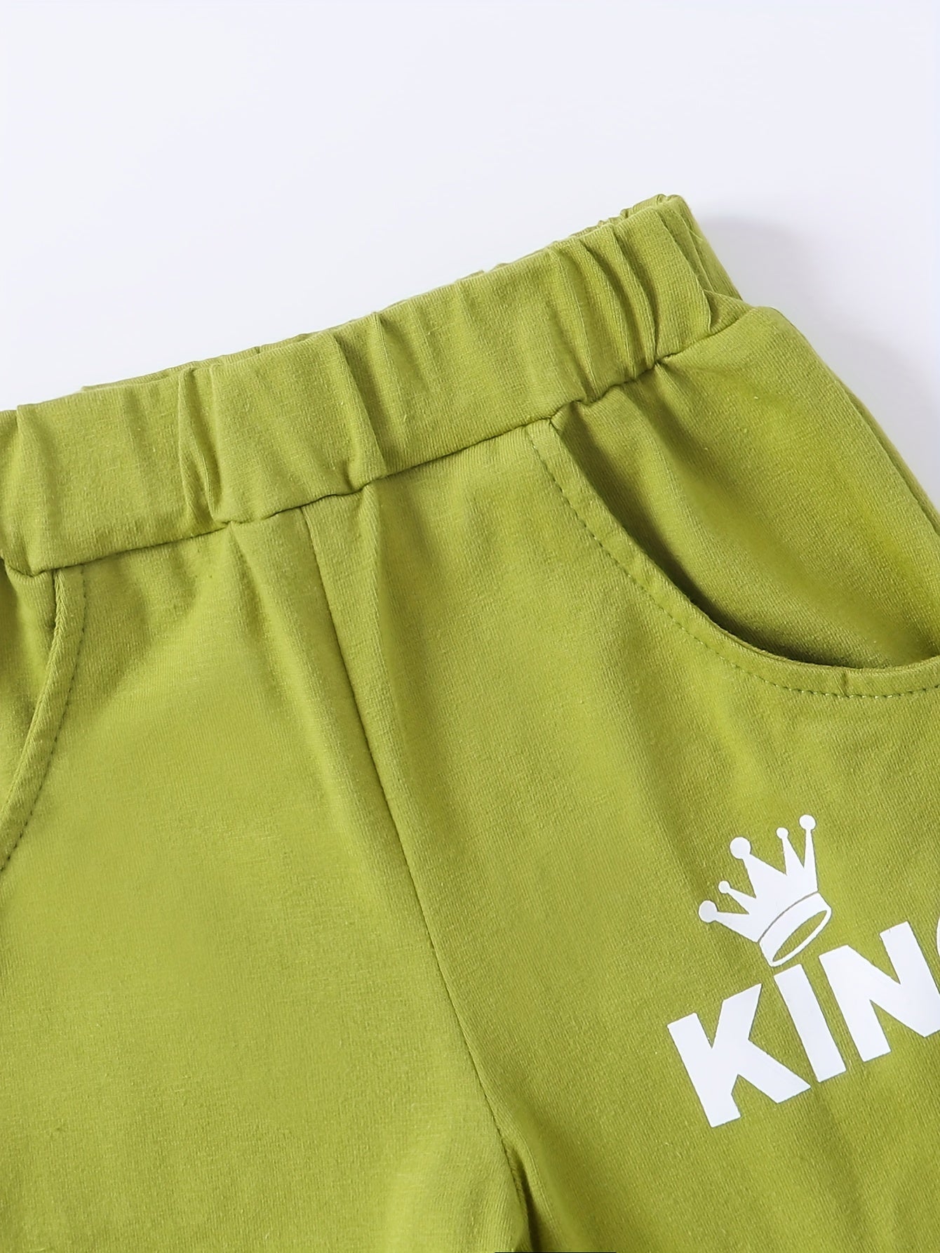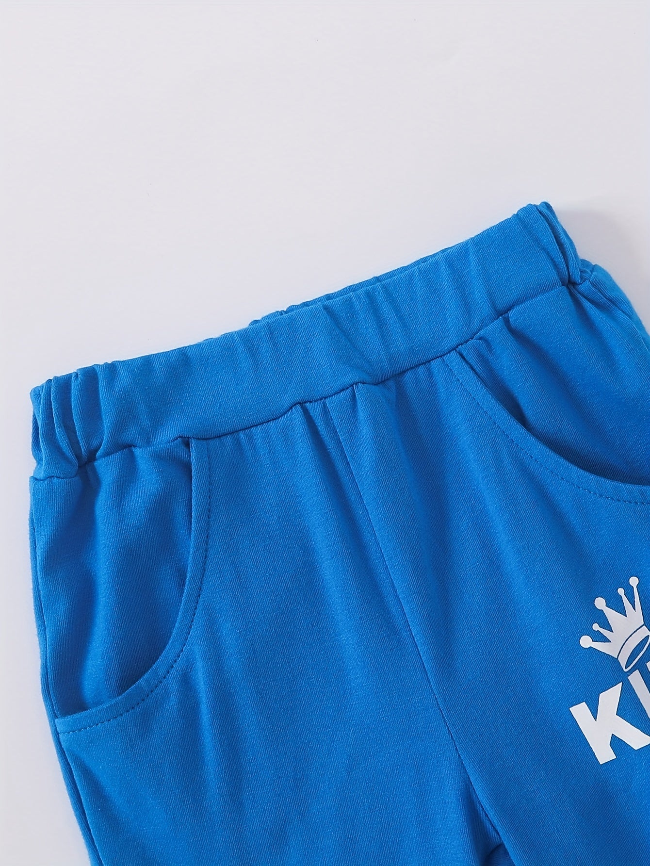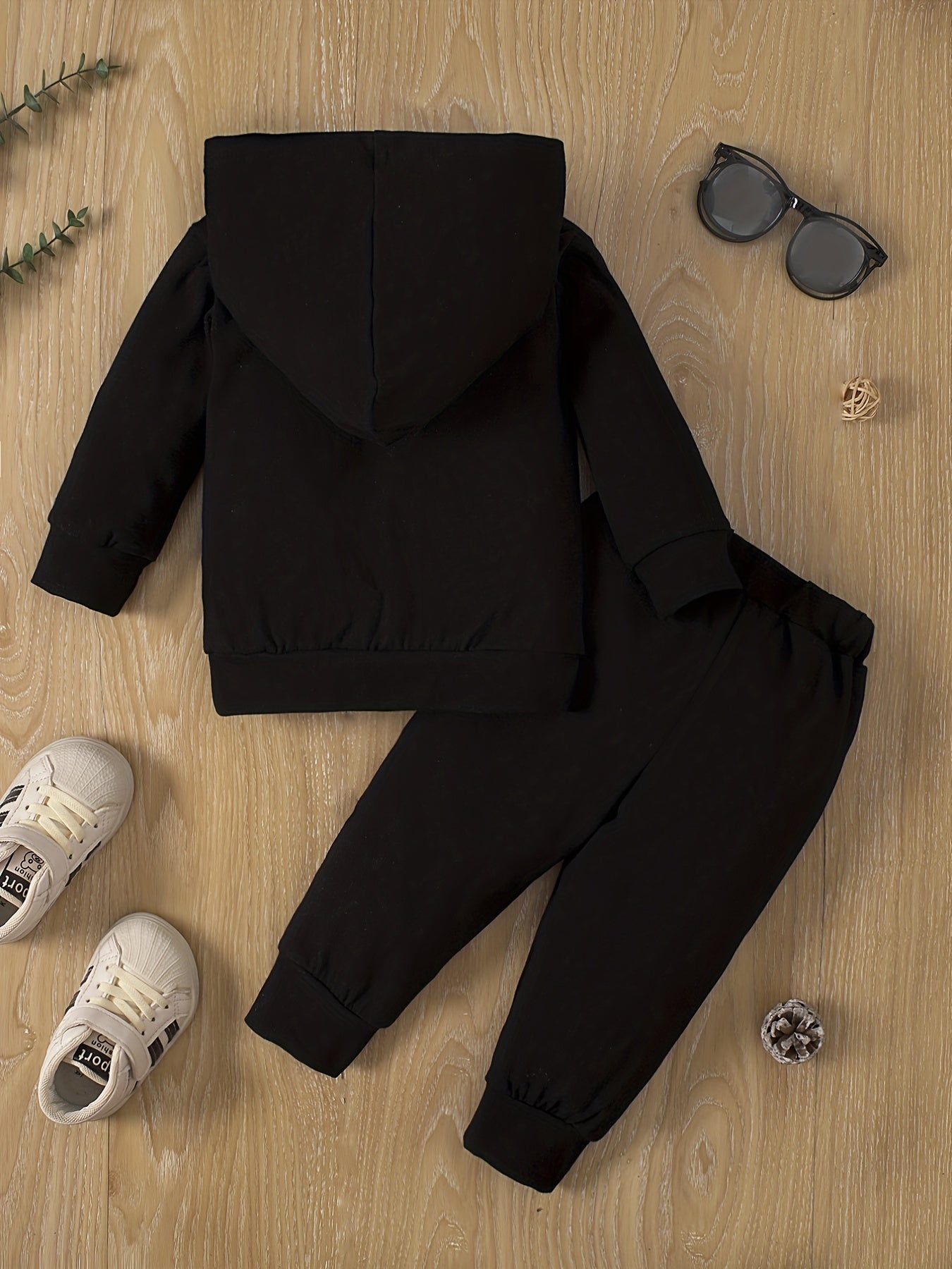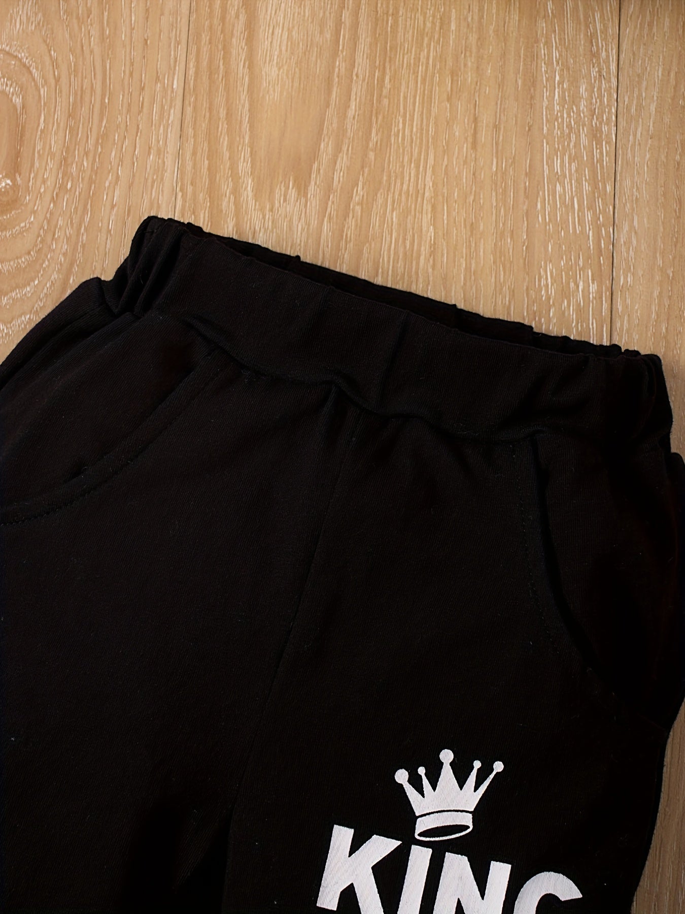 2 հատ Baby Boy's Casual Fashion Outfit Hooded KING Print երկարաթև մարզաշապիկ + շալվար բացօթյա հավաքածու
