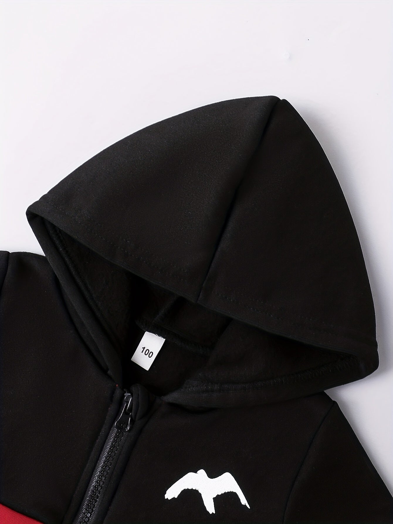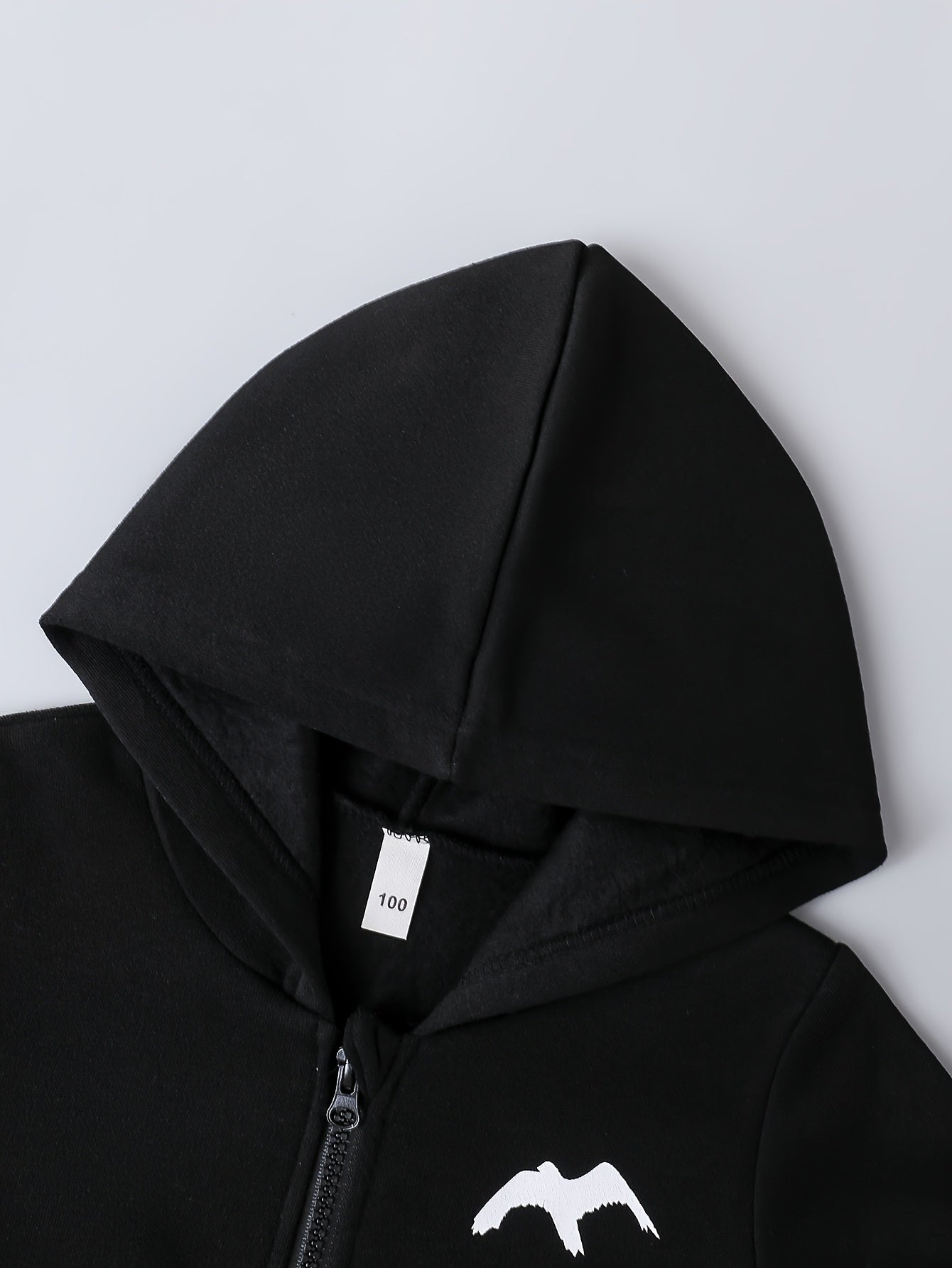 2pcs Boys' Autumn/Winter Fleece-Lined Hooded Zip-Up Jacket and Pants Set with Bird Print, Simple Color Block Design with Pockets, Fashionable Sporty Outfit for Outdoor Activities and Daily Wear, 100% Polyester Knit Stretch Fa