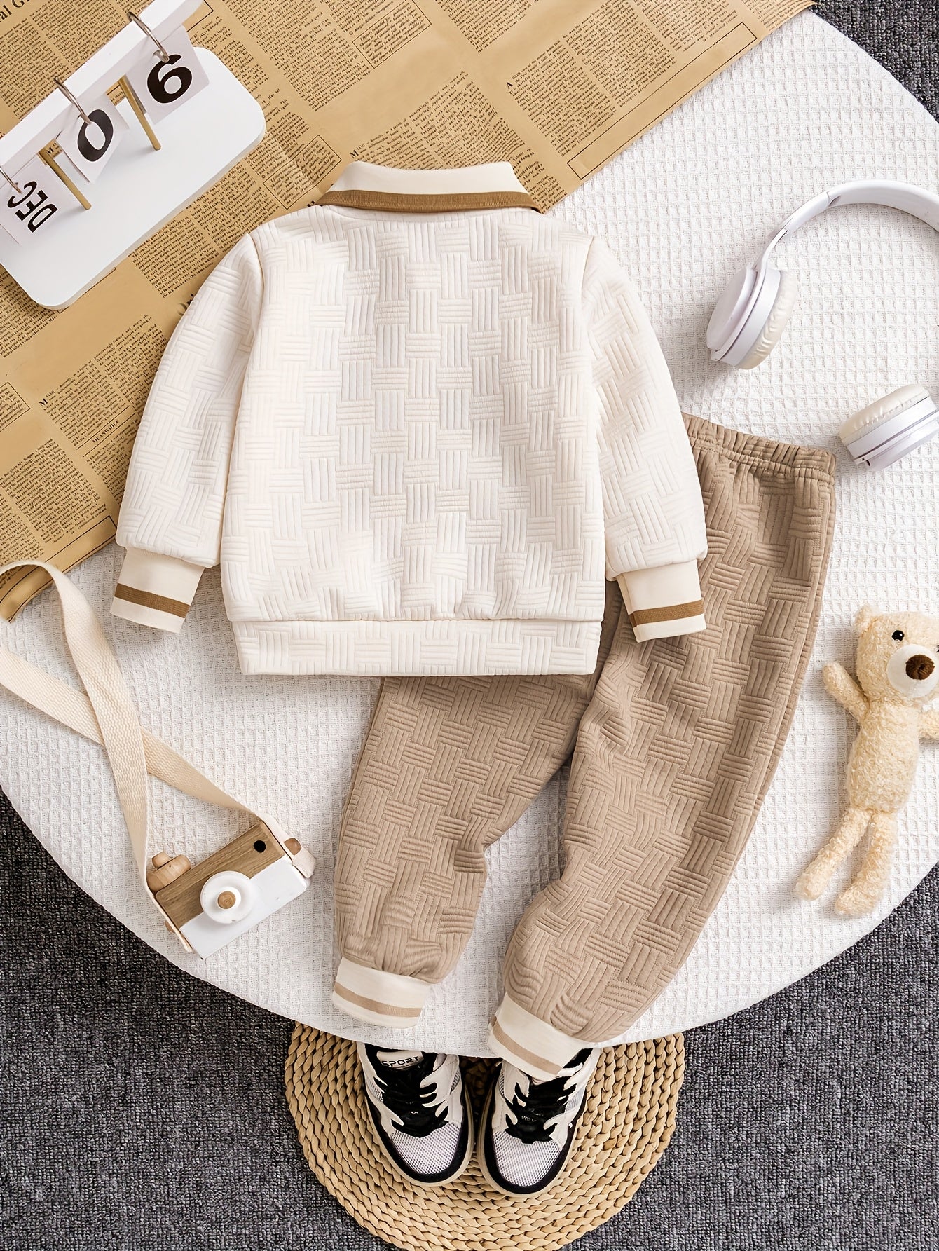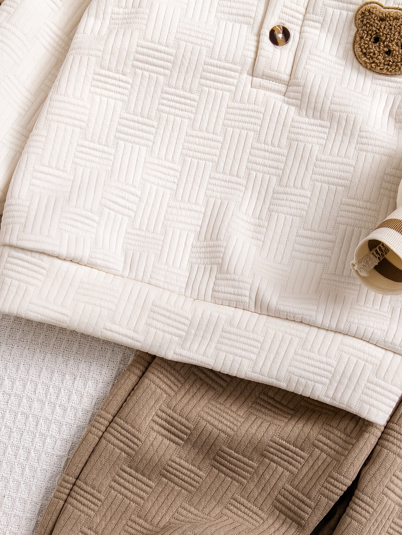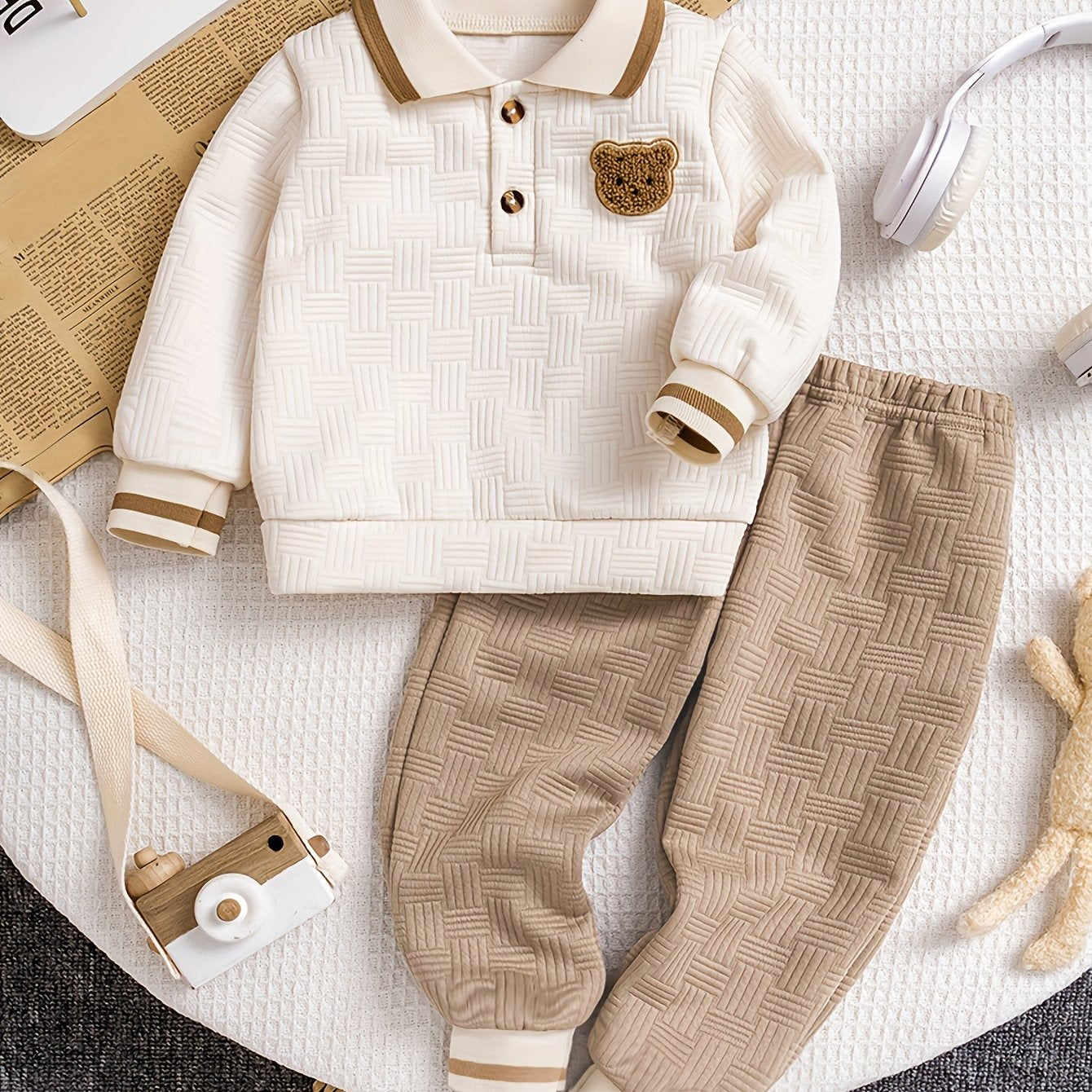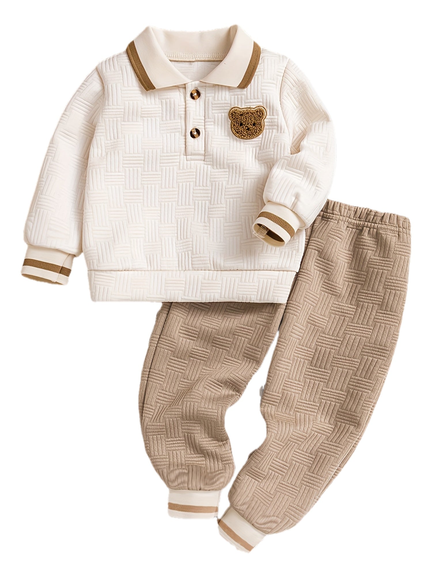 2 հատ տղաների համար նախատեսված աշուն/ձմեռ նորաձև, կողավոր, պատչվորք, սիրուն արջուկ-պանդա օձիքով, ժակարդե միագույն սվիտեր և միագույն ժակարդե տաբատ, ամենօրյա, նորաձև հավաքածու, իդեալական է բացօթյա օգտագործման համար