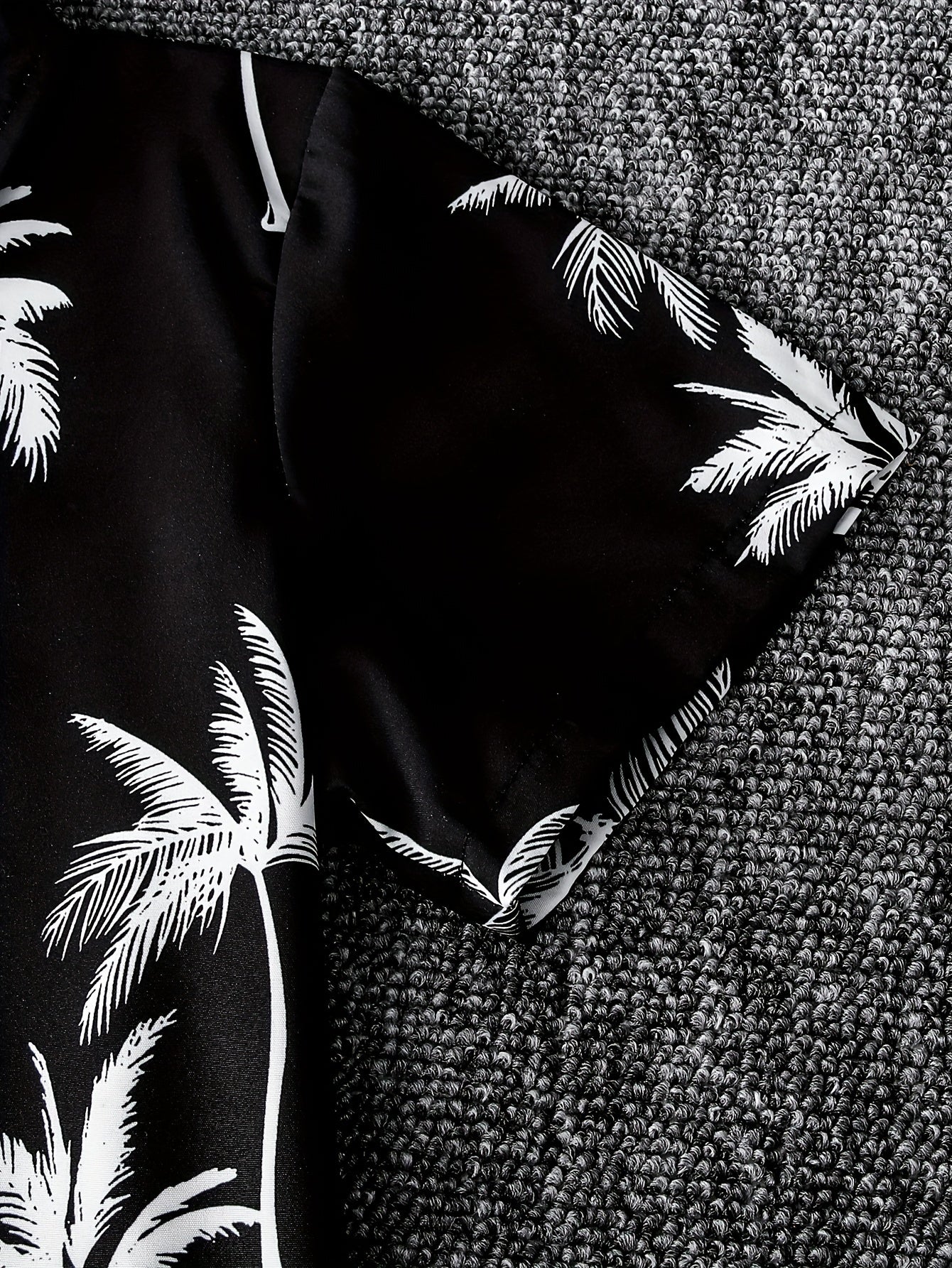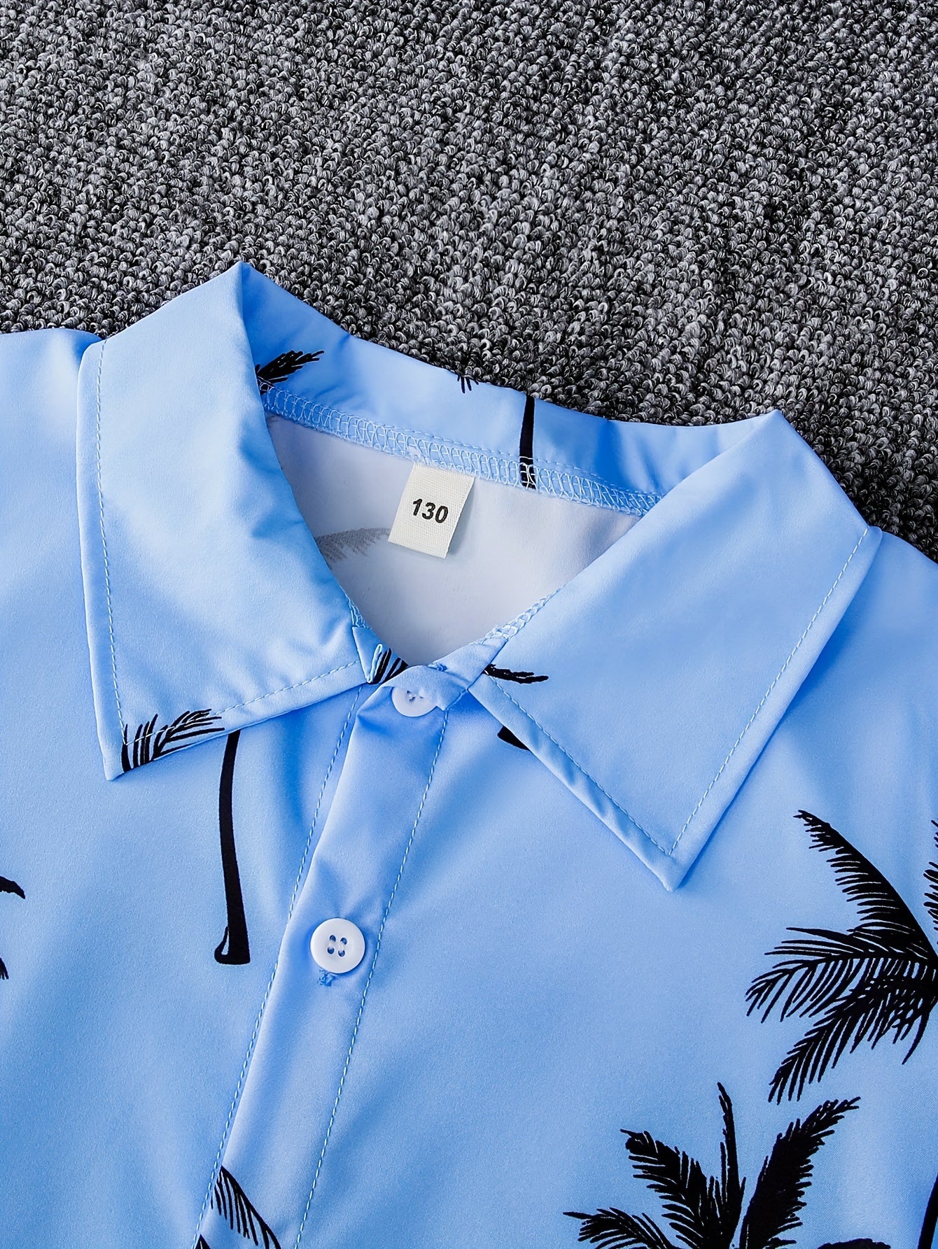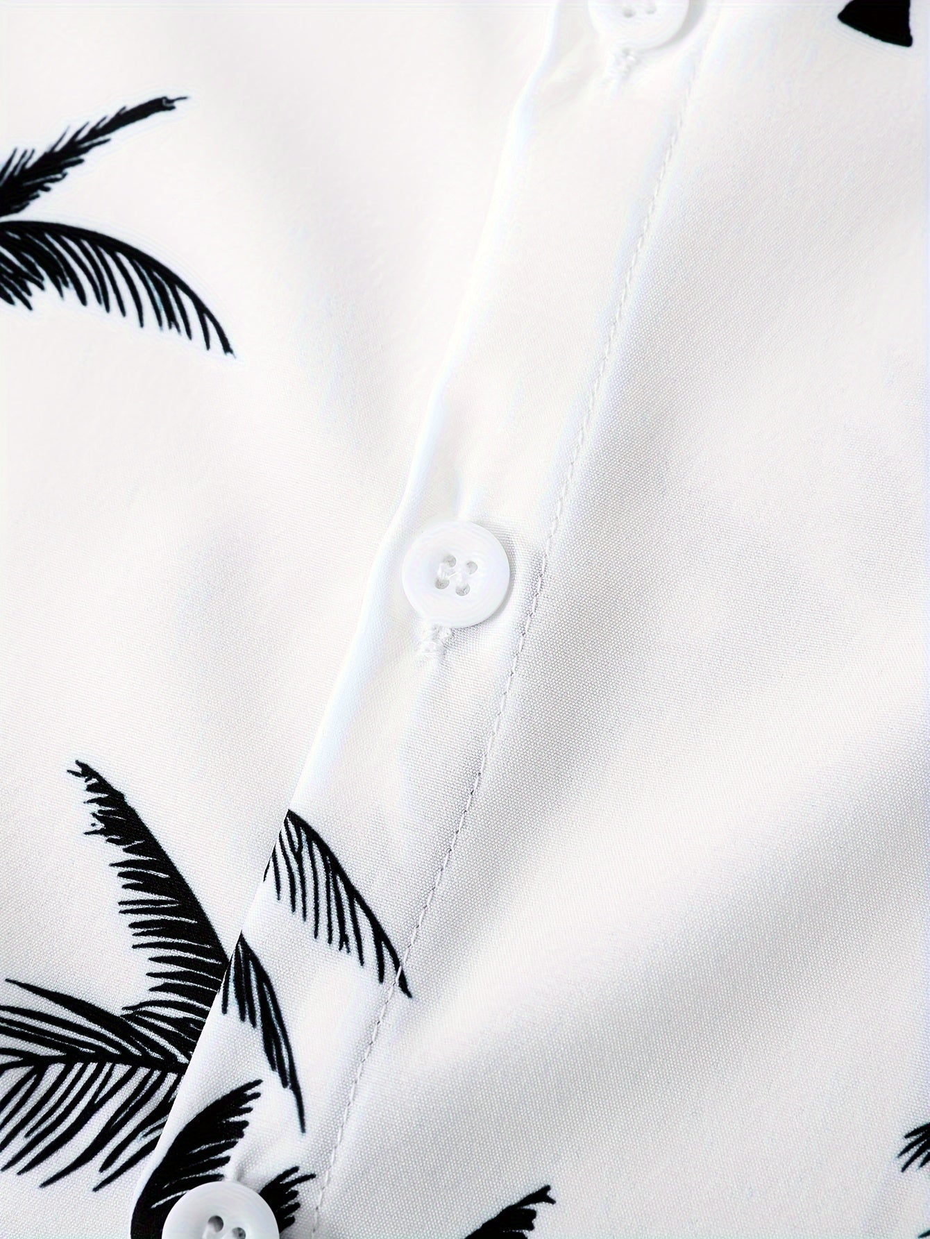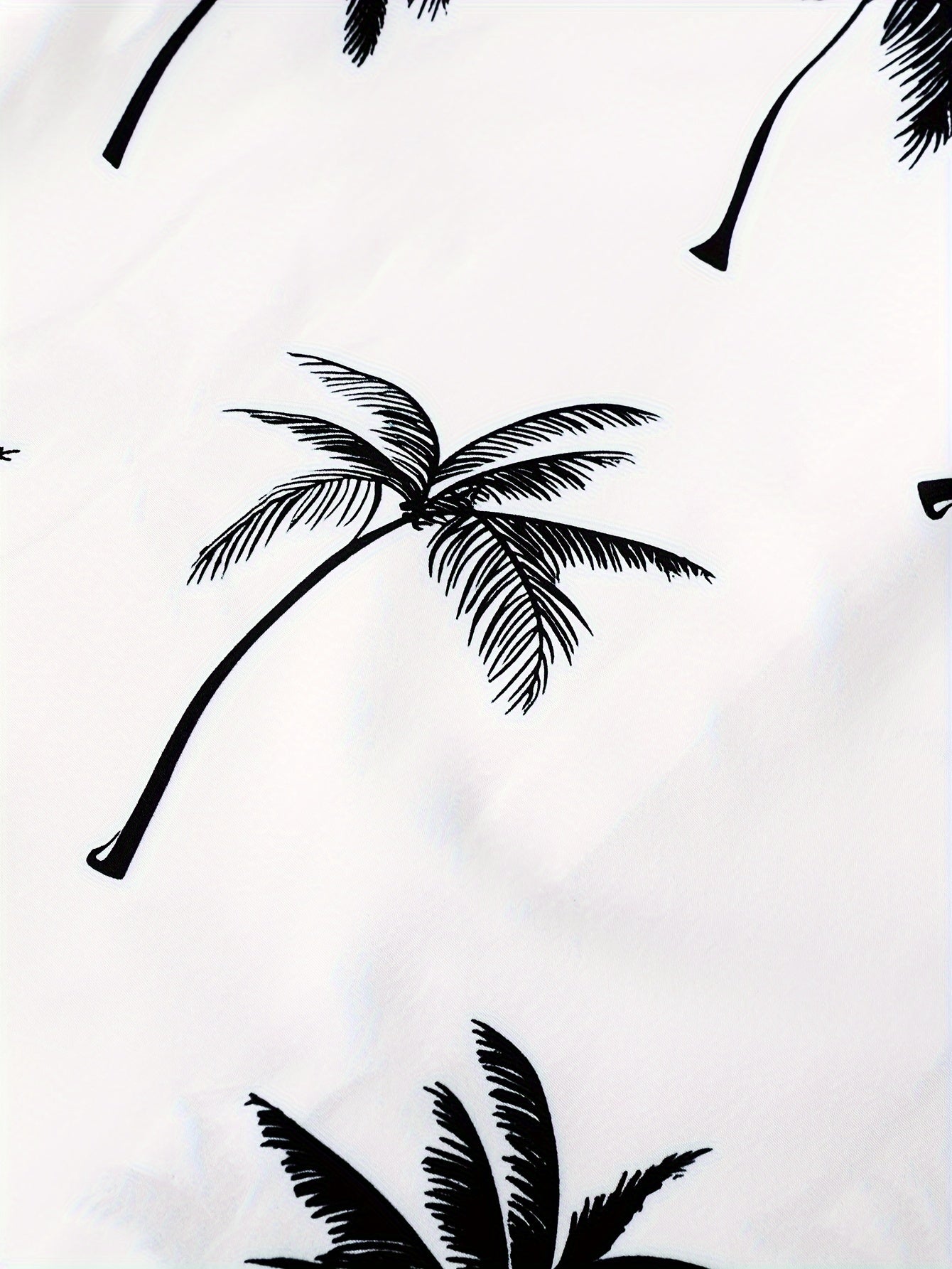 2 հատ տղաների համար նախատեսված կոկոսի ծառի գրաֆիկական նախշերով կարճ թևքով վերնաշապիկ և շորտերի հավաքածու, հարմարավետ ամառային տղաների հագուստ ամենօրյա և բացօթյա հագուստի համար