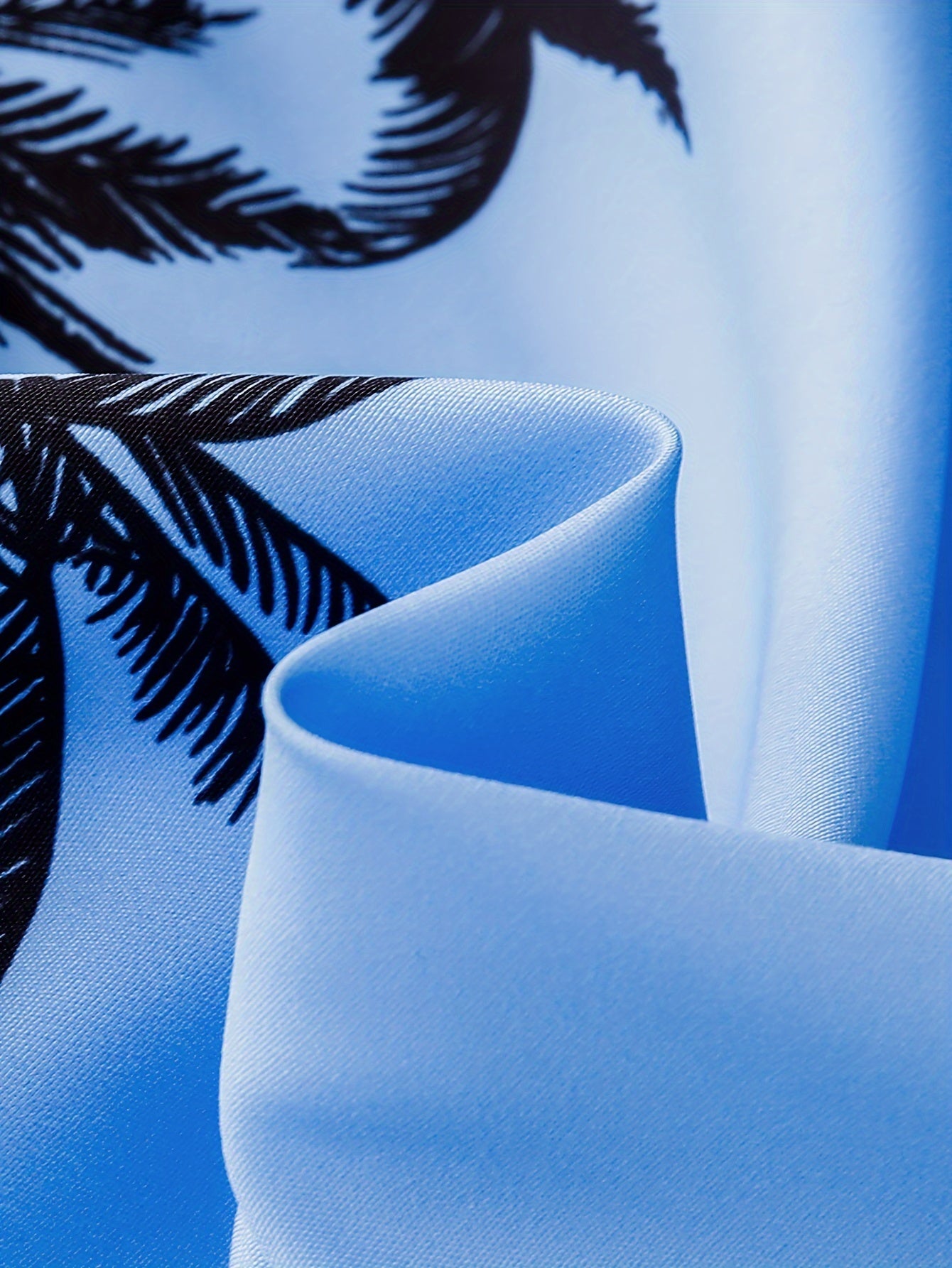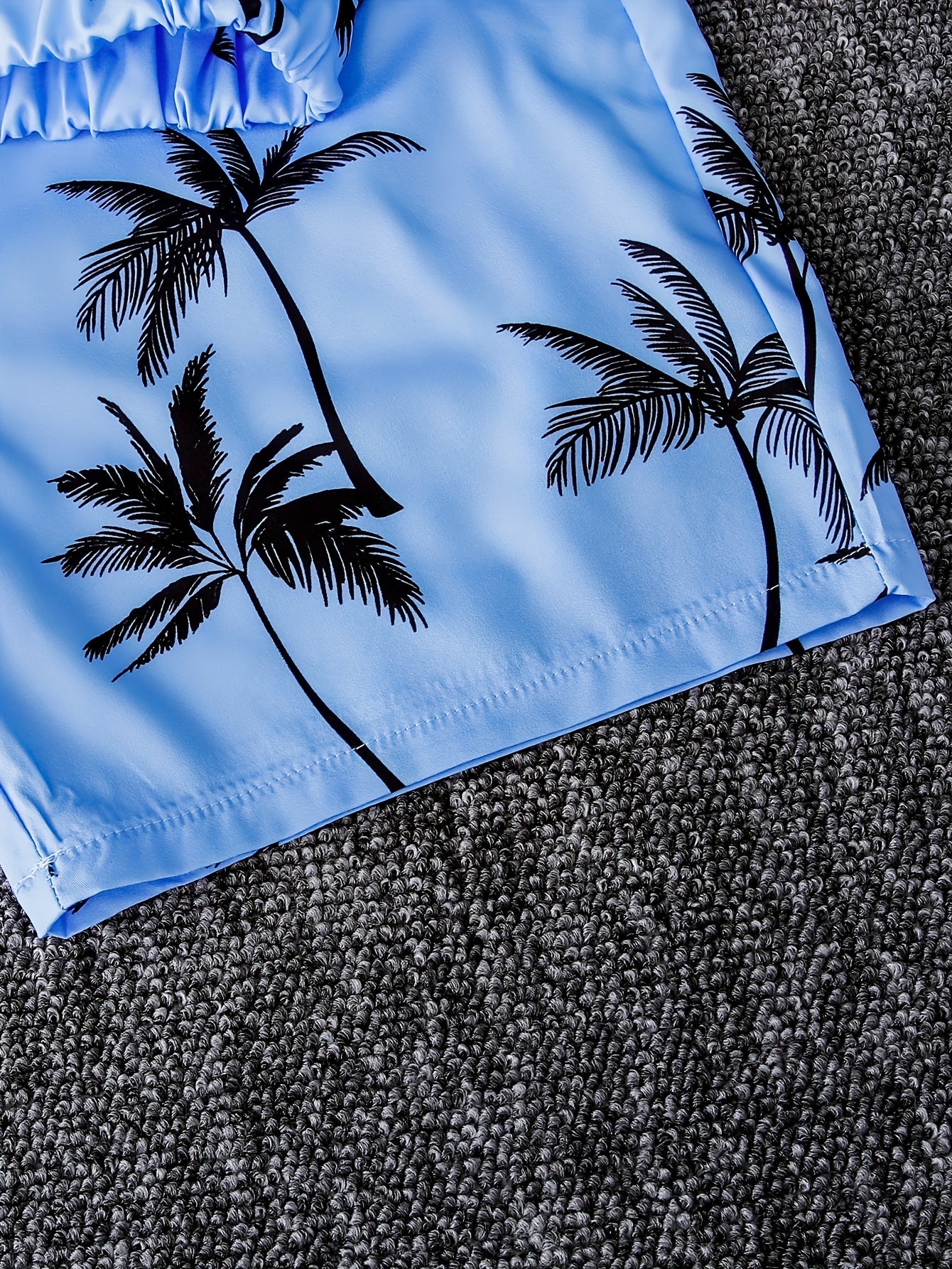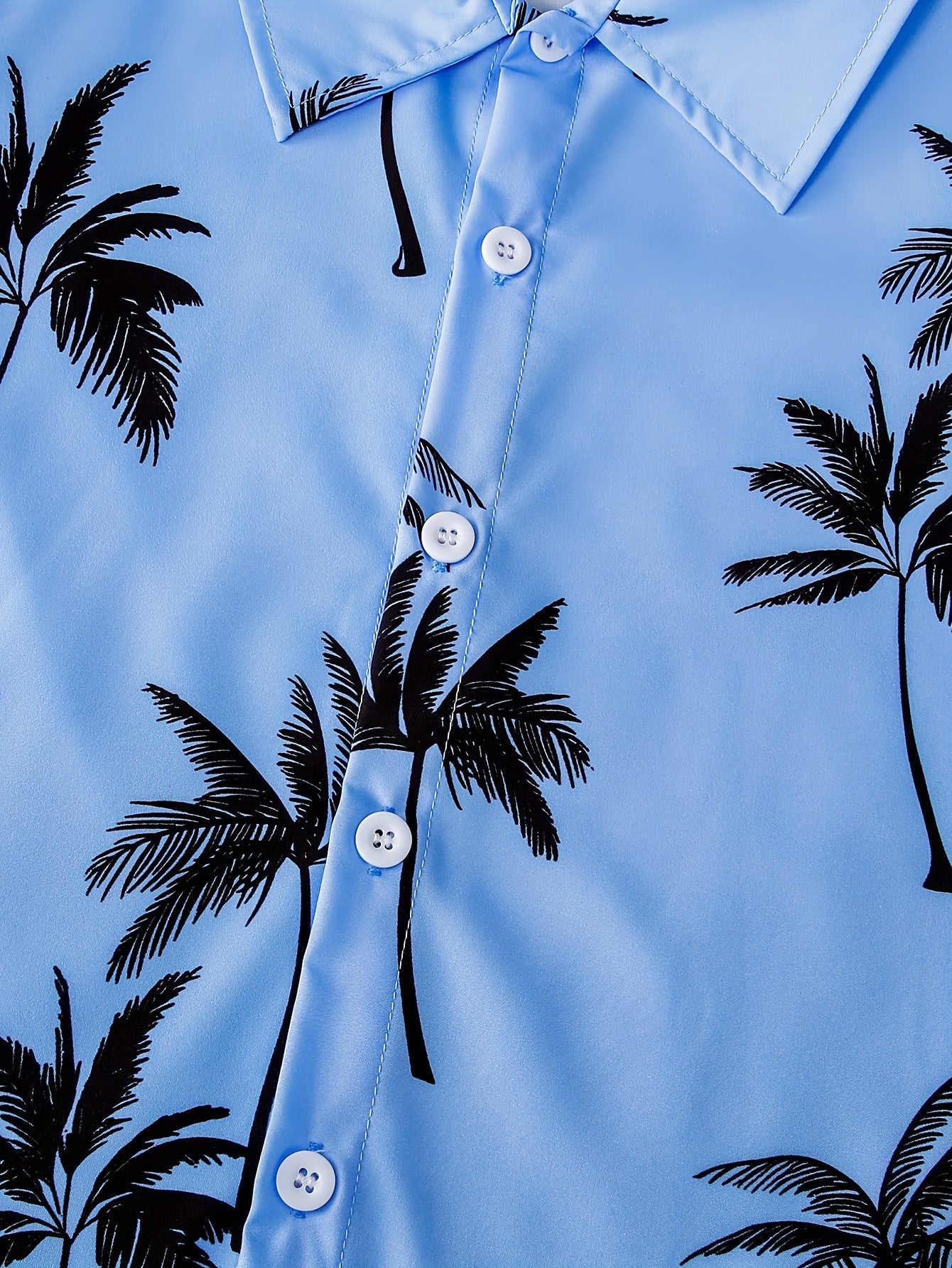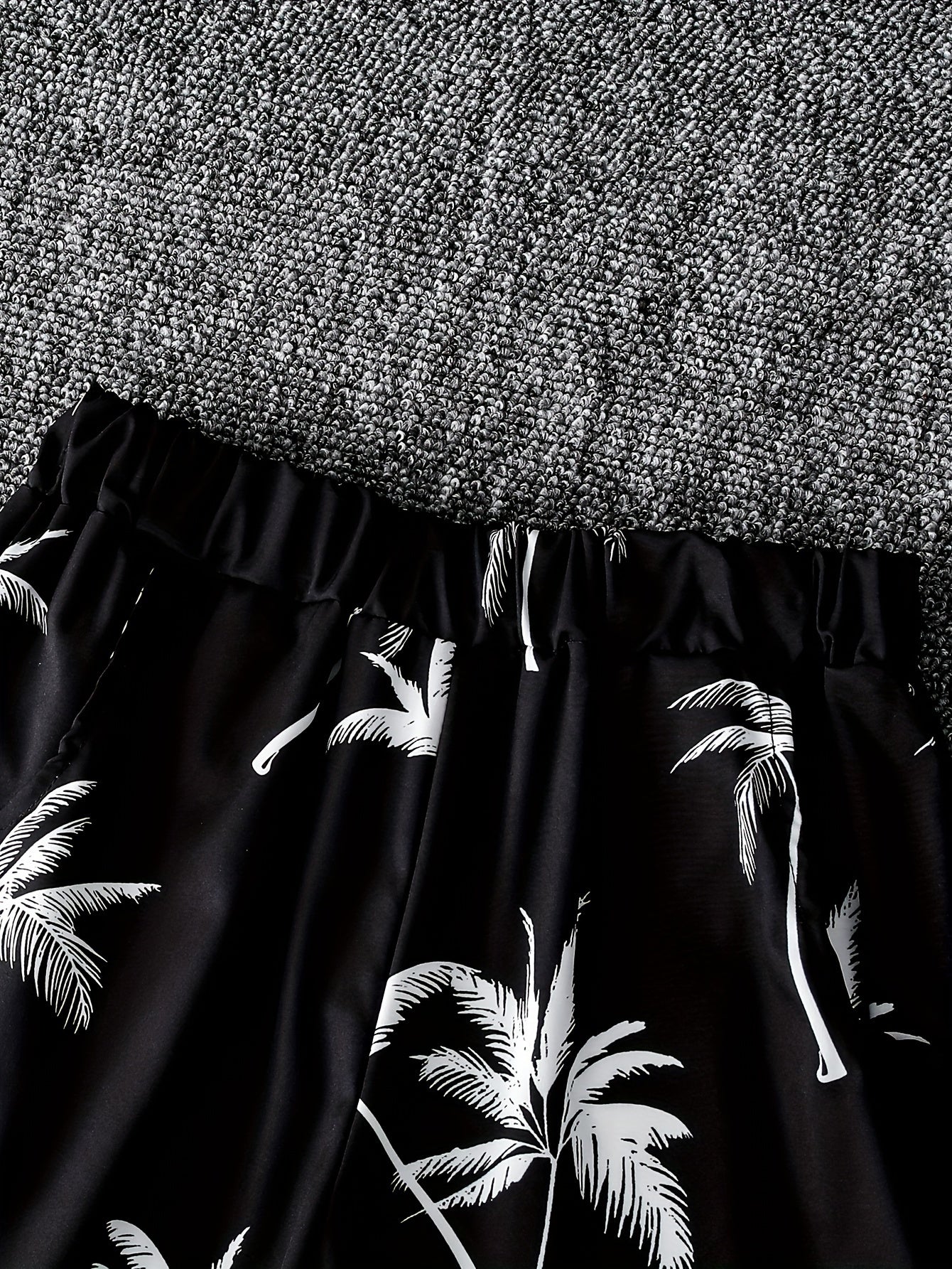 2 հատ տղաների համար նախատեսված կոկոսի ծառի գրաֆիկական նախշերով կարճ թևքով վերնաշապիկ և շորտերի հավաքածու, հարմարավետ ամառային տղաների հագուստ ամենօրյա և բացօթյա հագուստի համար