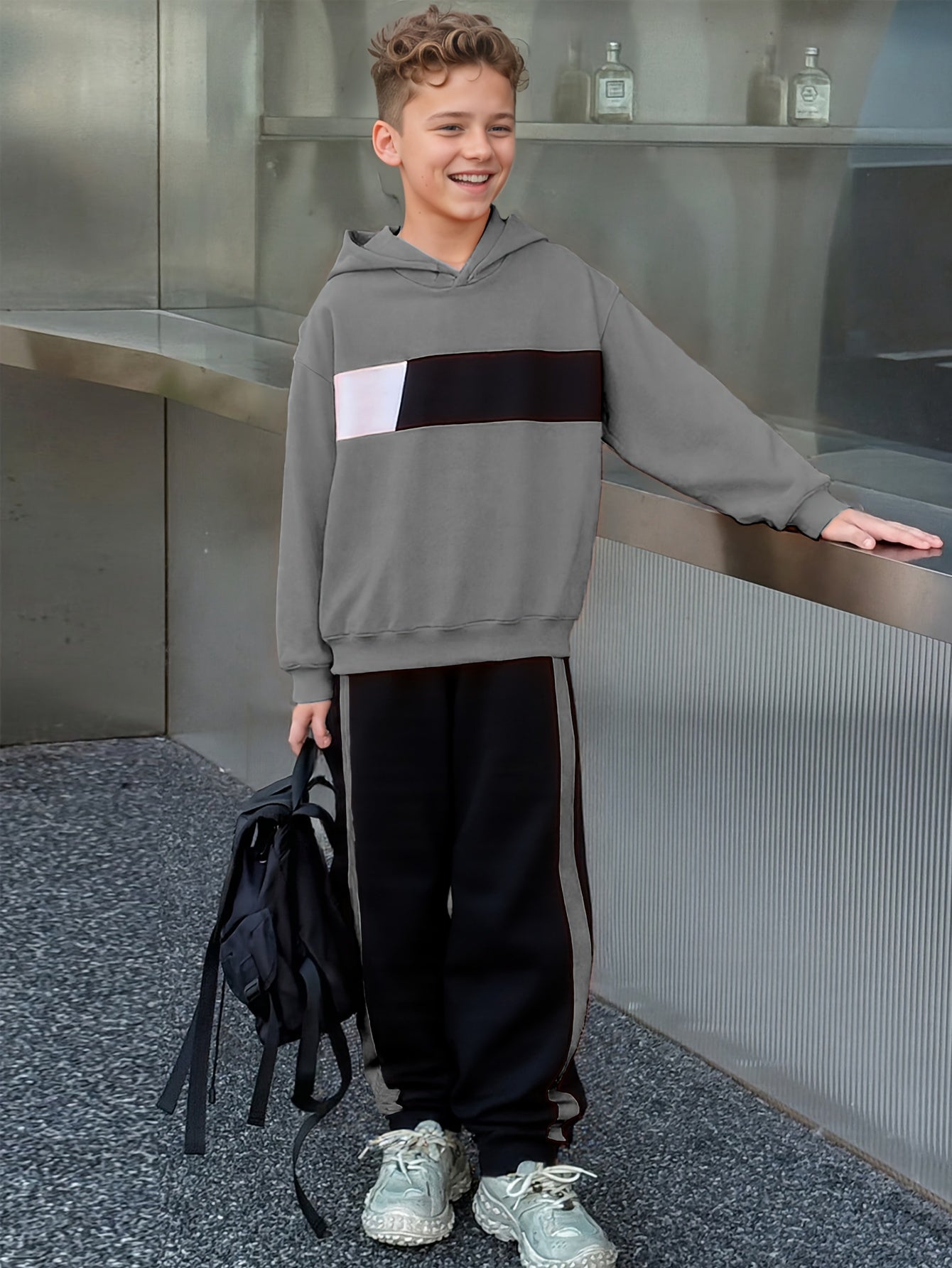 2 հատ տղաների ձմեռային գլխարկով մարզահագուստ և տաբատ - տաք սվիտեր համապատասխան երկար տաբատով, գունային բլոկներով վերնաշապիկ (հարմար է մեծ երեխաների և երեխաների համար) - լվացքի մեքենայով լվացվող 2 հատի հավաքածու, իդեալական է բացօթյա օգտագործման համար