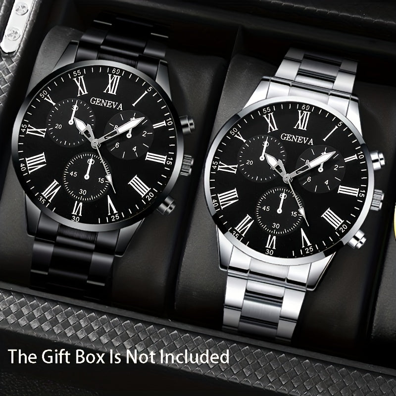 2pcs Elegant Men's Quartz Watch Set, Classic Round Dial Design with Durable Stainless Steel Band, Zinc Alloy Case, Precision Electronic Movement, Casual Fashion Style, Ideal Gift for Father's Day/Valentine's/Ramadan/Birthday/