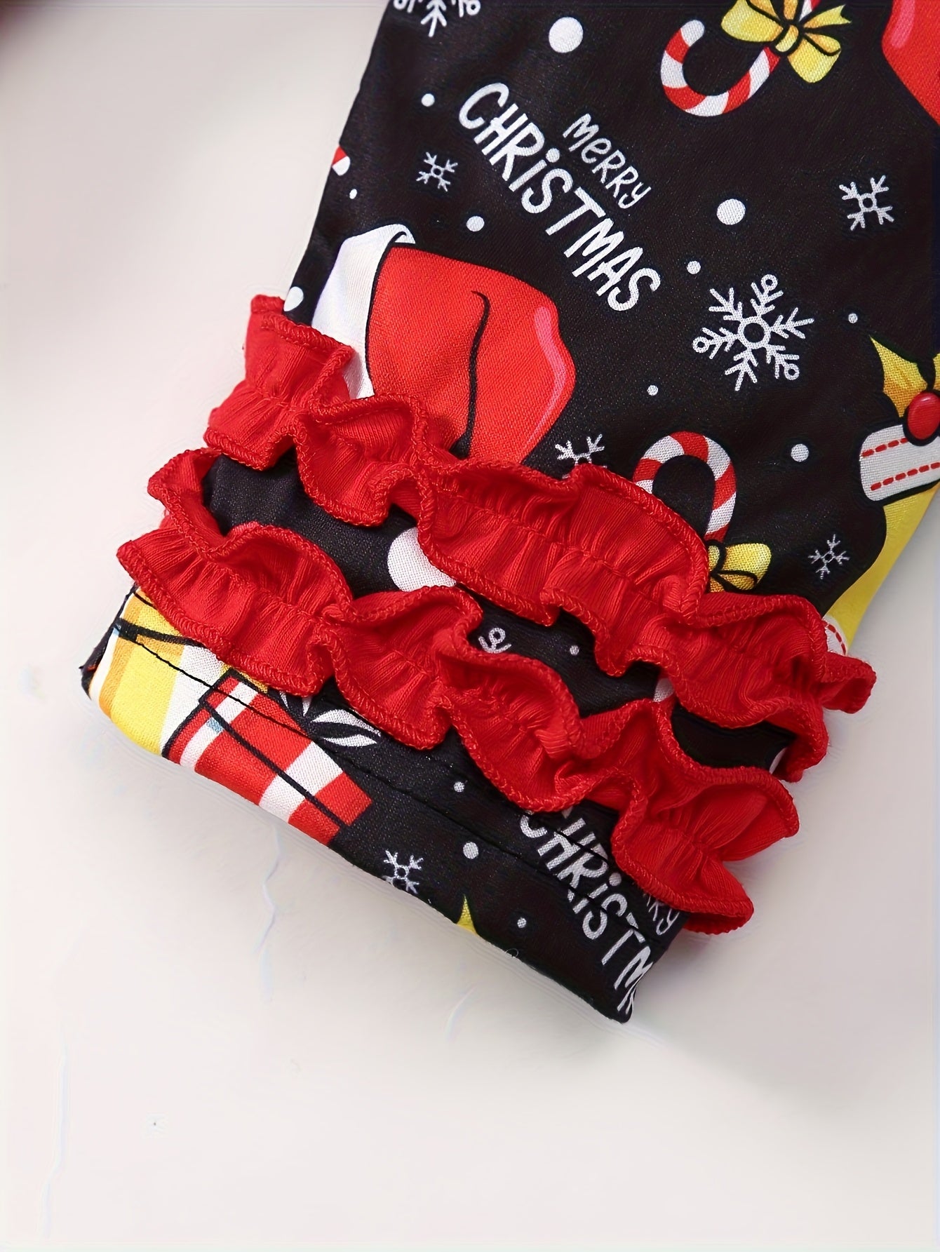 2 հատ եղջերուի ասեղնագործված երկար թևքերով զգեստներ + Սուրբ Ծննդյան գլխարկի նվերների տուփ՝ պատահական, լիարժեք տպագրությամբ կողքից պատրաստված տաբատների հավաքածու՝ աղջիկների համար, գեղեցիկ երեկույթի հանդերձանք, բացօթյա օգտագործման համար