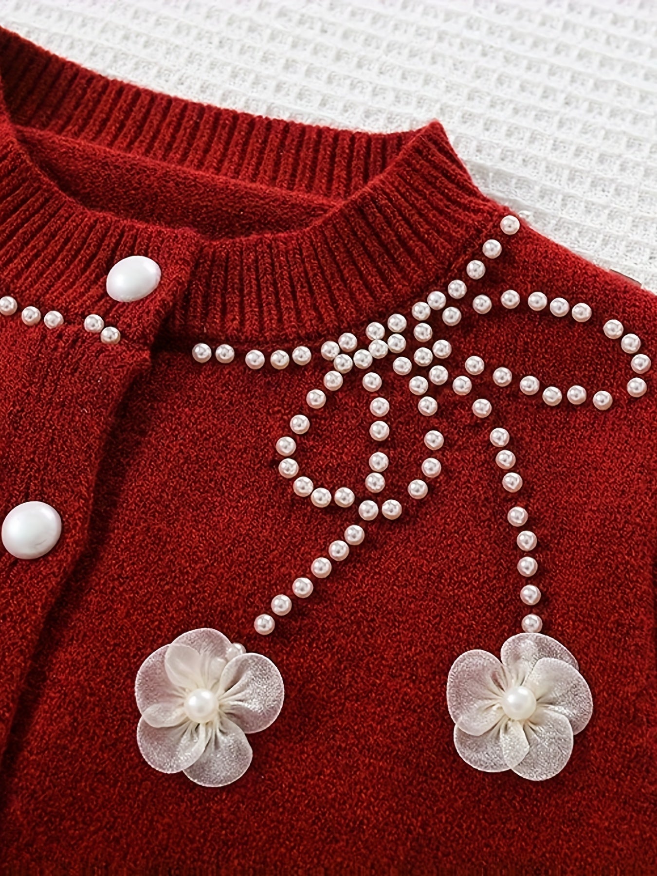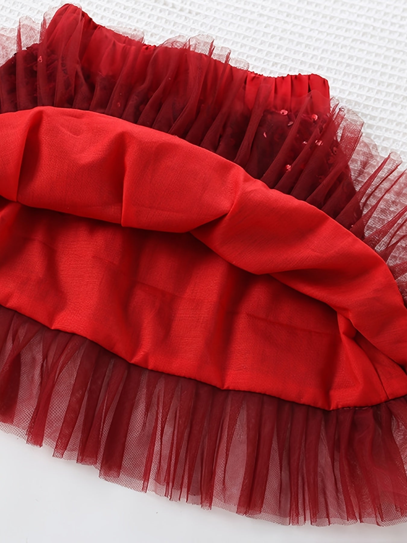 2pcs Girls' Elegant Sequin Trim Sweater & Sparkle Tulle Tutu Skirt Set - Red & Golden Glittery Party Outfit with Ruffled Hem, Long Sleeve Round Neck Top & Layered Tulle, Perfect For Halloween, Christmas, Photo Shoots, Pageant