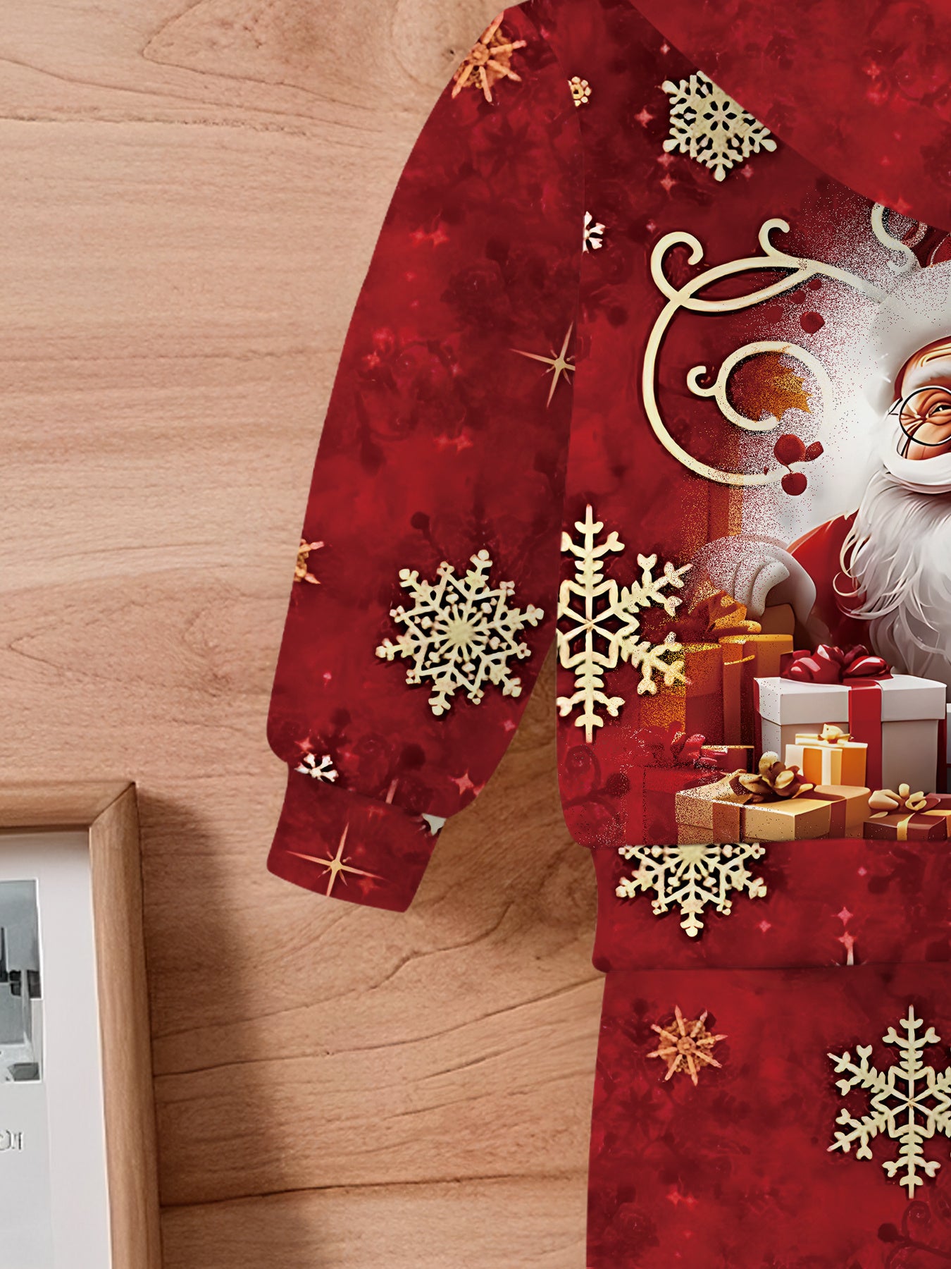 2pcs Girls' Santa Claus Face & 3D Print Hooded Sweatshirt & Pants Set - Red & Golden Christmas Outfit with Santa Hat & Reindeer Design, Casual Winter Clothes for Toddlers & Kids, Perfect Gift for Little Boys & Girls (Machine