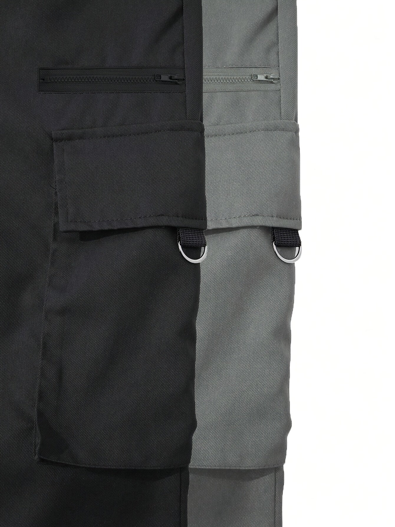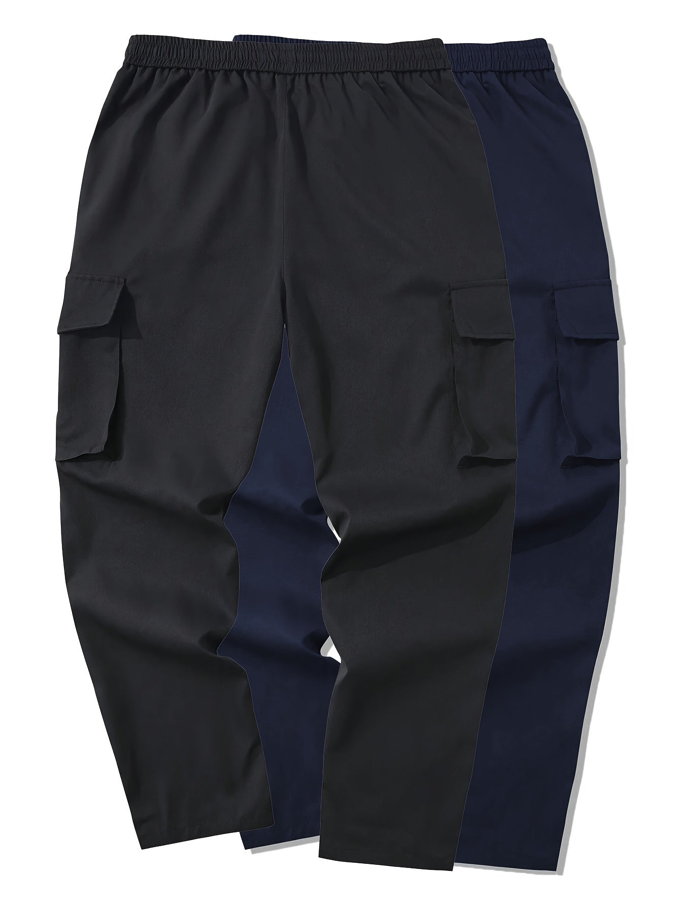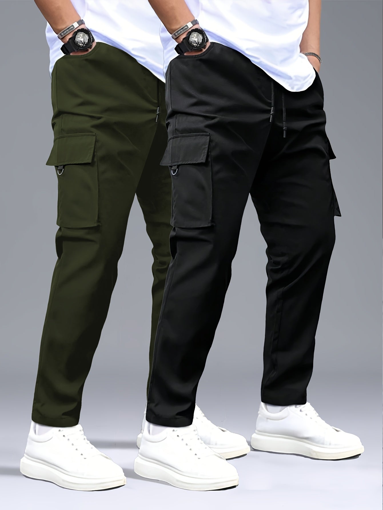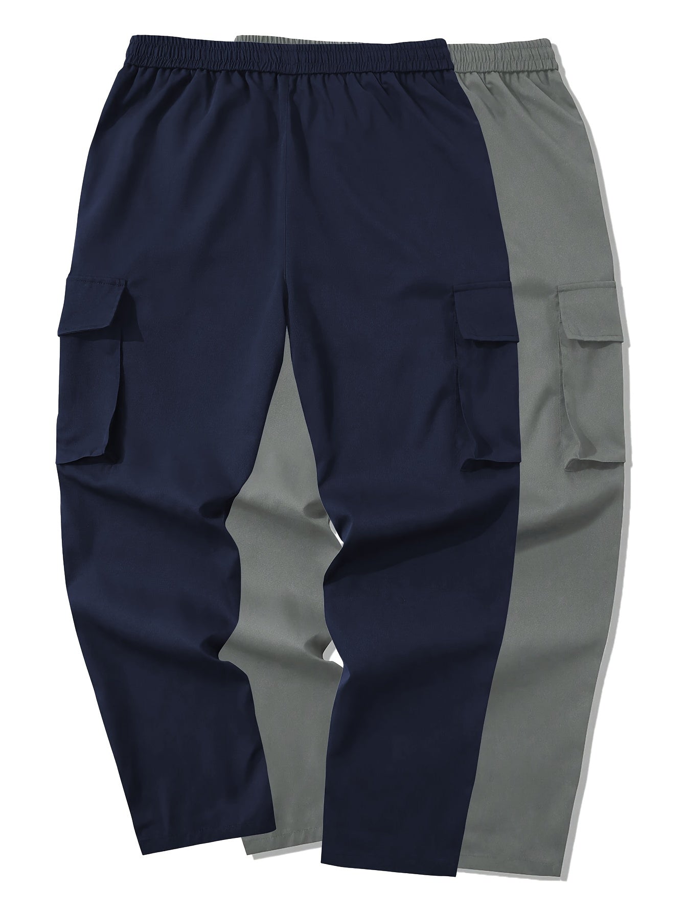 2 հատ Տղամարդկանց բեռների շալվար, սև և մոխրագույն գոտկատեղով և բազմաթիվ գրպաններով, դիմացկուն պոլիեսթեր, իդեալական բացօթյա գործունեության և ամենօրյա հագուստի համար, ամենօրյա հագուստի շալվար | Multiple Pocket Design | Երկարակյաց գործվածքից շալվար