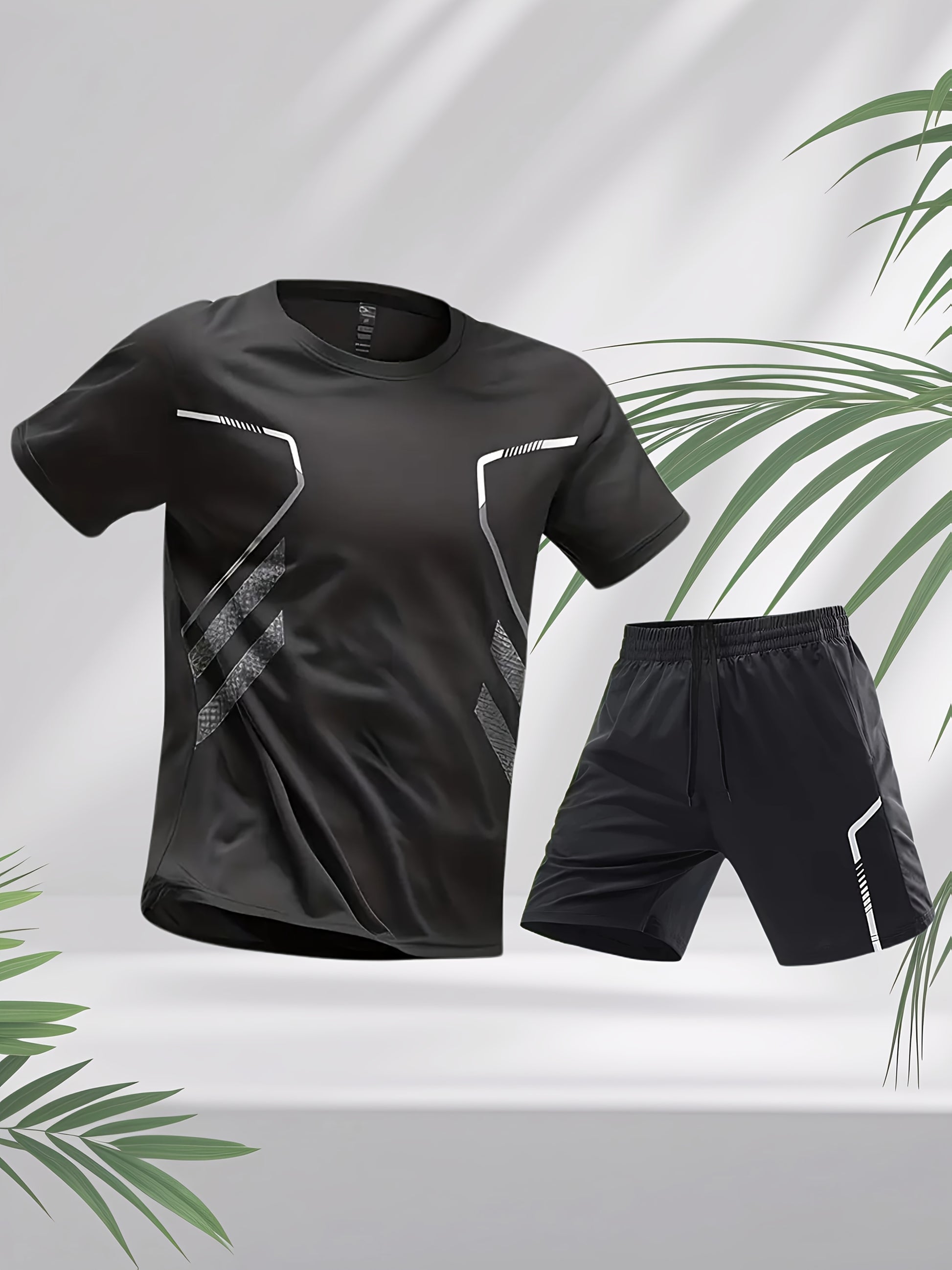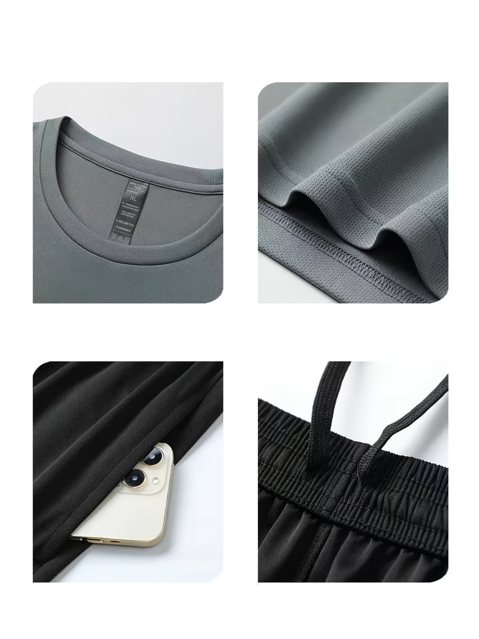 2 հատ տղամարդու վազքի սպորտային հագուստի հավաքածու՝ ամառային սառցե, սահուն մանրաթելային գործվածքից, արագ չորացող, քրտինքը կլանող, ֆիթնեսի համար նախատեսված ամենօրյա կարճ թևքերով շորտեր