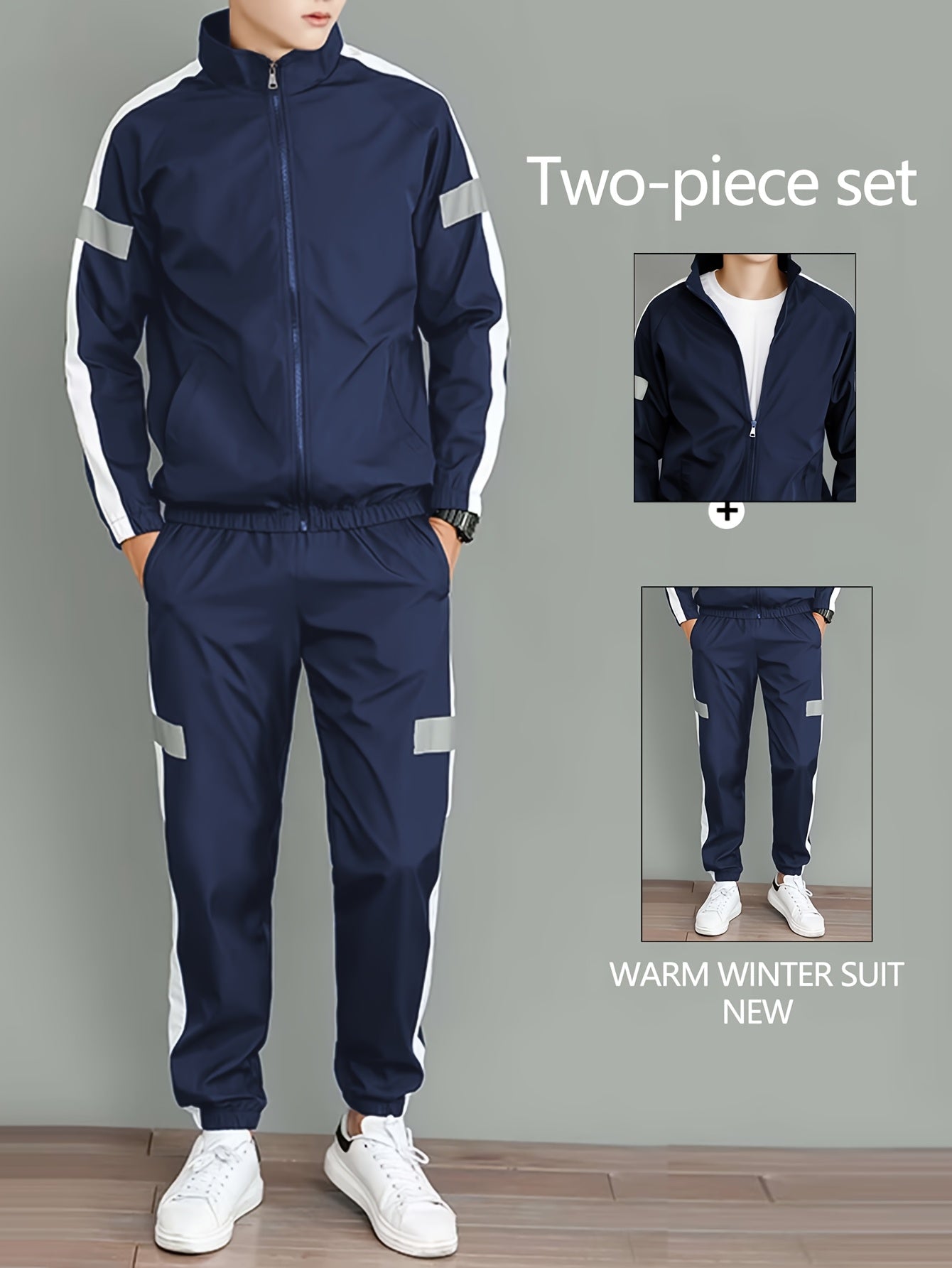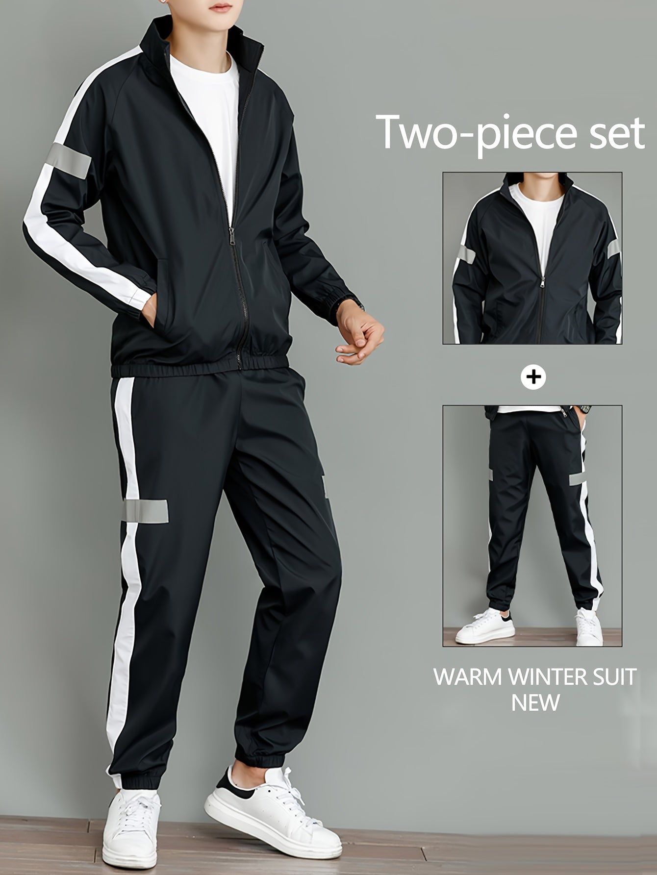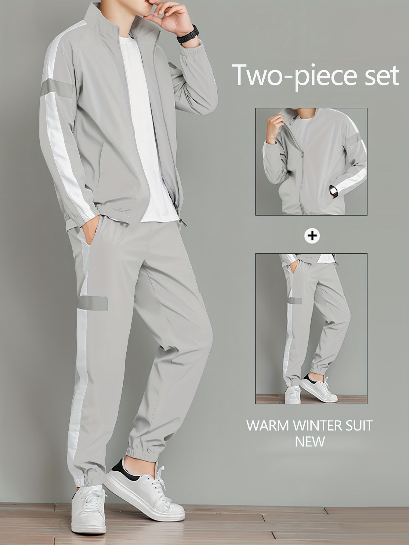 2pcs Men's Spring/Autumn Casual Long Sleeve Sportswear Set with Stand Collar