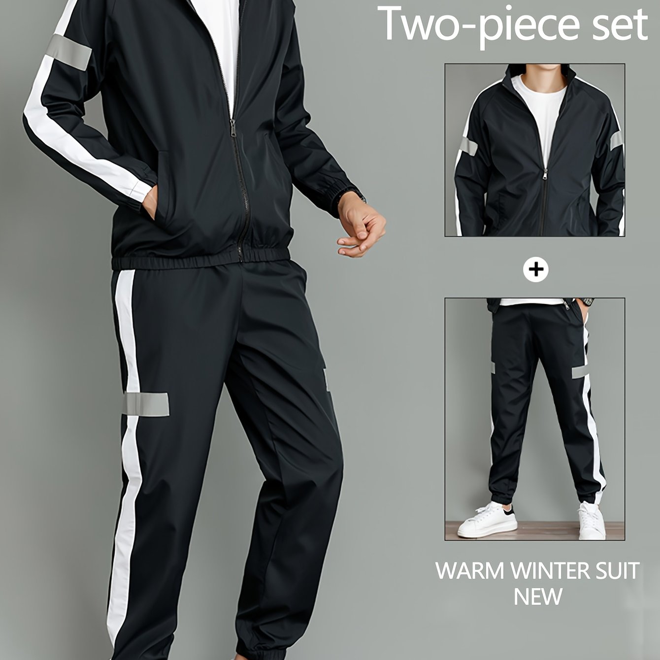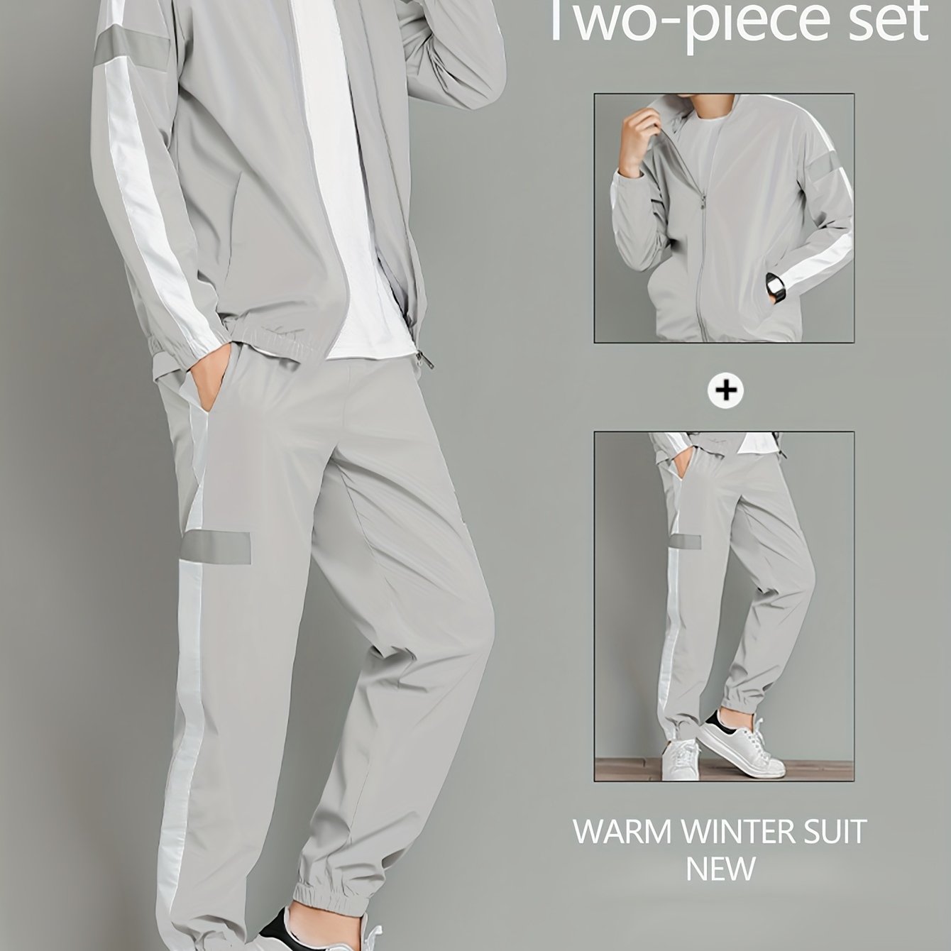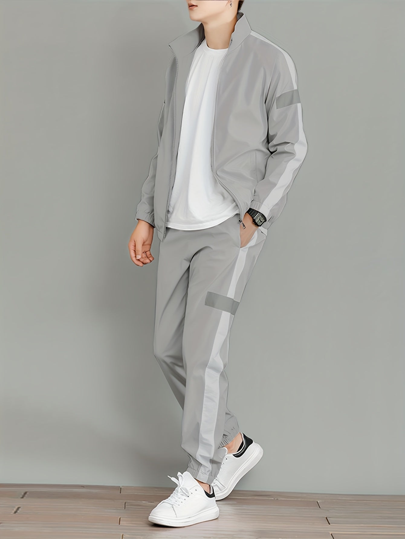 2pcs Men's Spring/Autumn Casual Long Sleeve Sportswear Set with Stand Collar