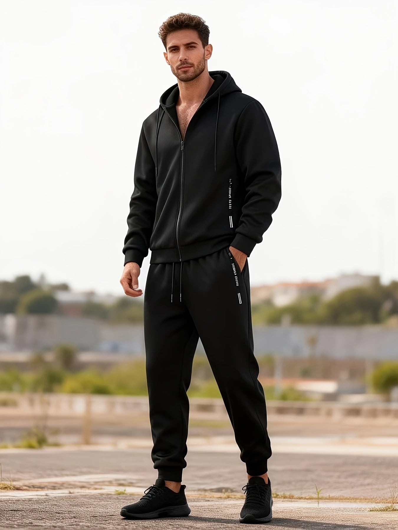 2pcs Men's Spring/autumn Set, Regular Fit Cardigan Sweatshirt with Zip-up Hoodie and Long Pants, Casual Sportswear