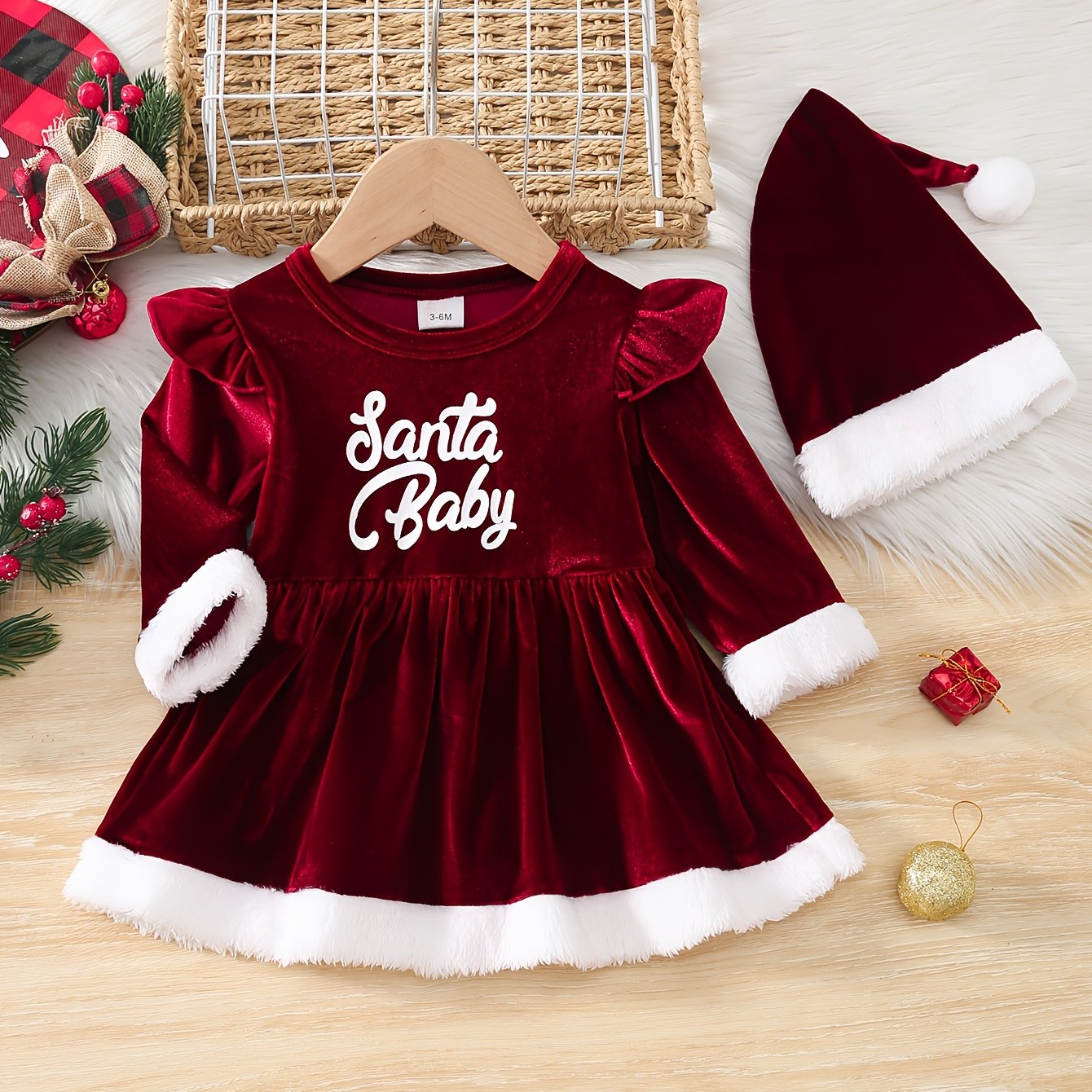 2 հատ ձմեռային զգեստ և գլխարկ - հարմարավետ մորթե տառով հանդերձանք (/), տաք երկար թևքով զգեստ՝ հարմար Սուրբ Ծննդյան համար, լուսանկարահանումներ - լվացքի մեքենայով լվացվող հագուստ