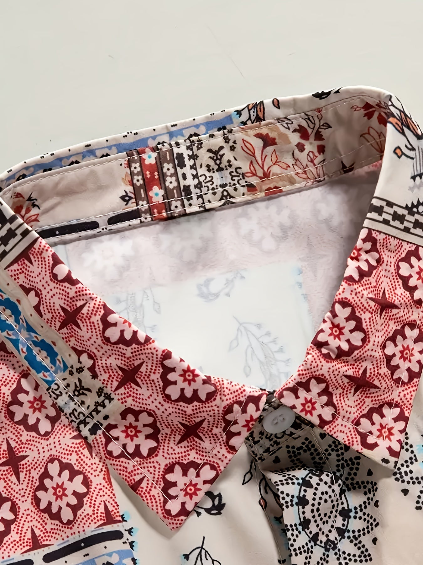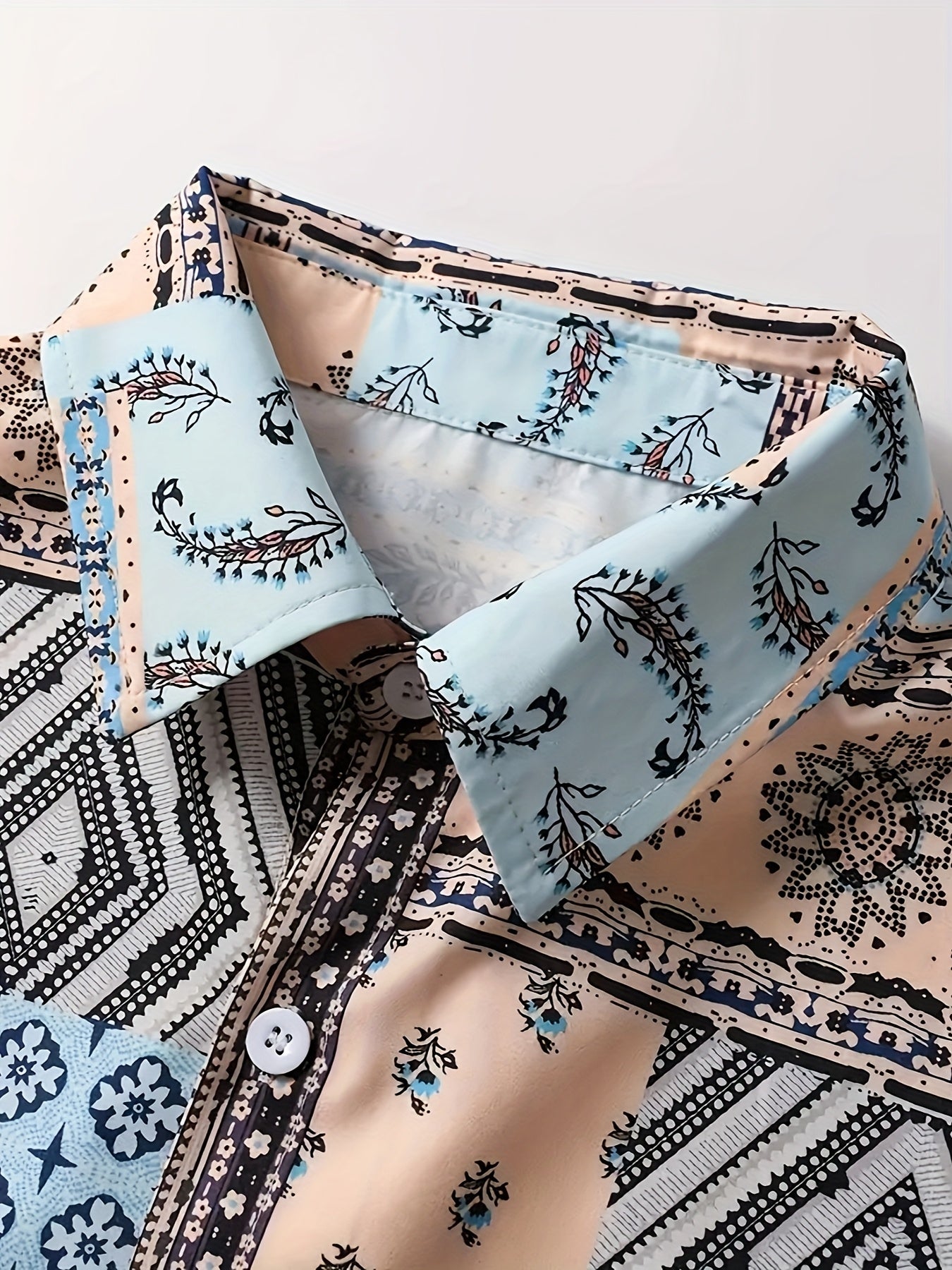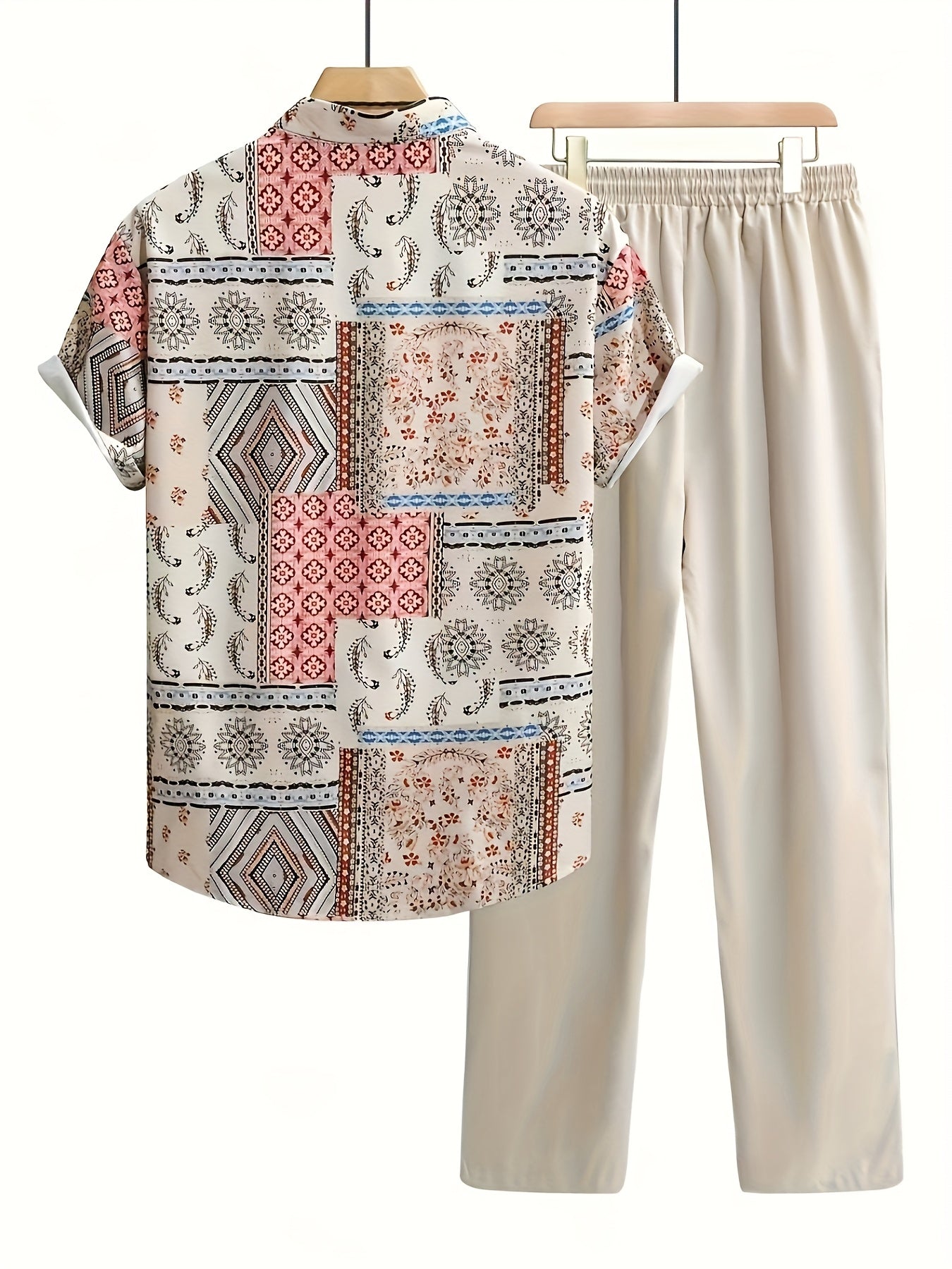 2 հատ ամառային տղամարդու տպագիր վերնաշապիկի և տաբատի հավաքածու, արձակուրդային 2 հատ կոստյում, իդեալական է բացօթյա օգտագործման համար