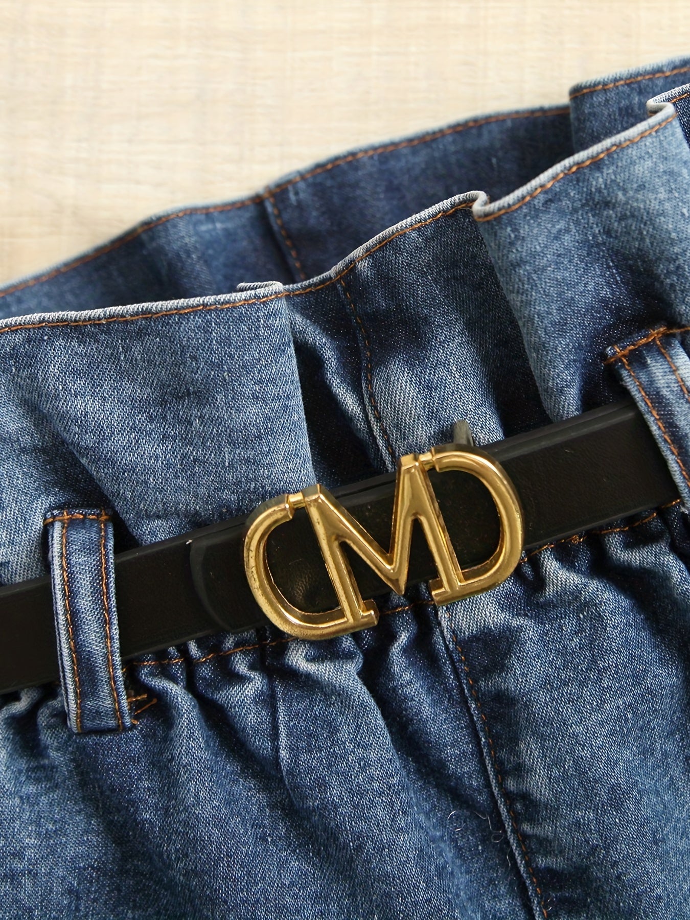 2 հատ Toddler Girls Puff Sleeves Cold Shoulder Button Crop Top & Paperbag իրան շորտեր Ջինսե հավաքածու Մանկական ամառային հագուստ