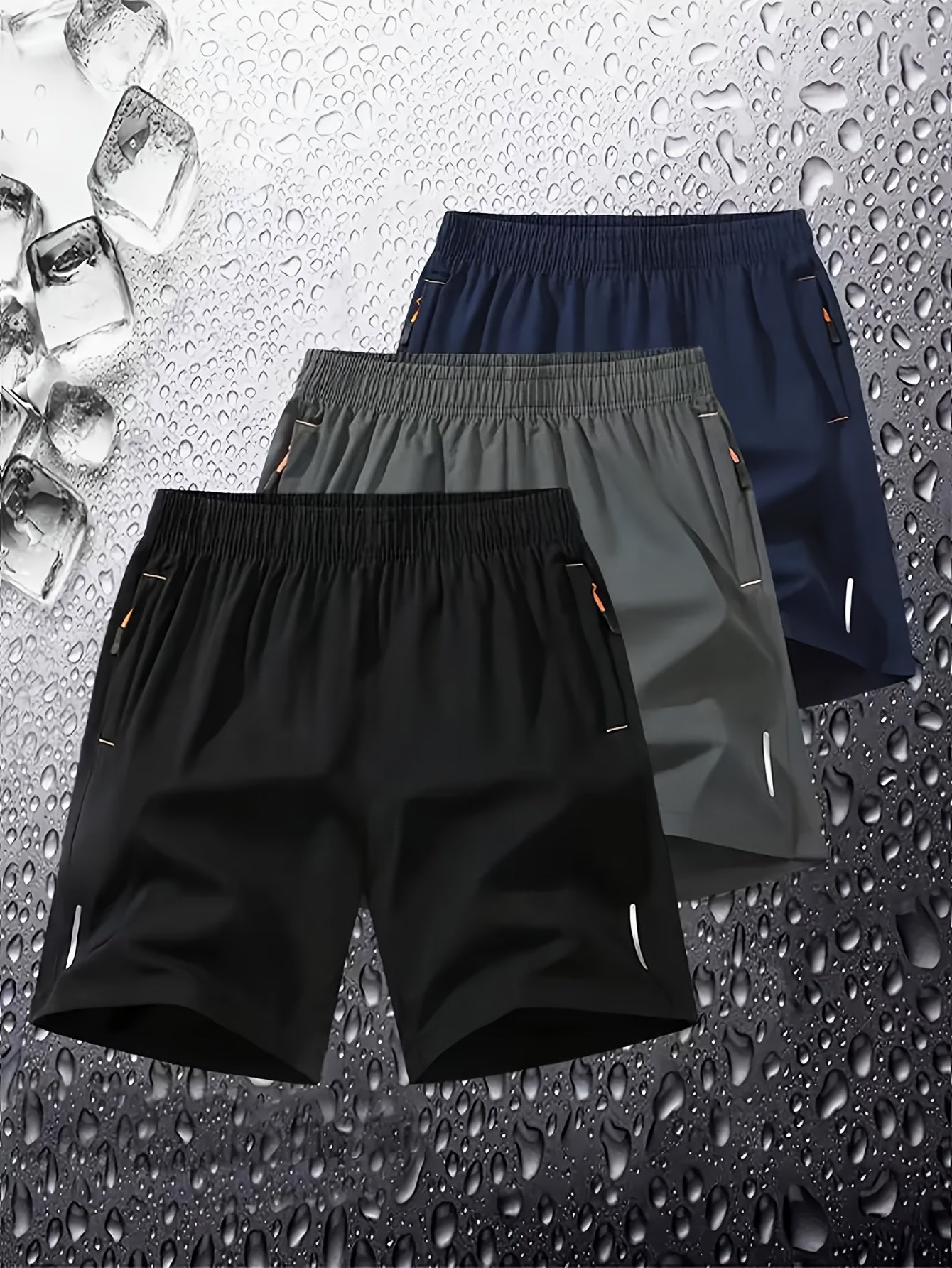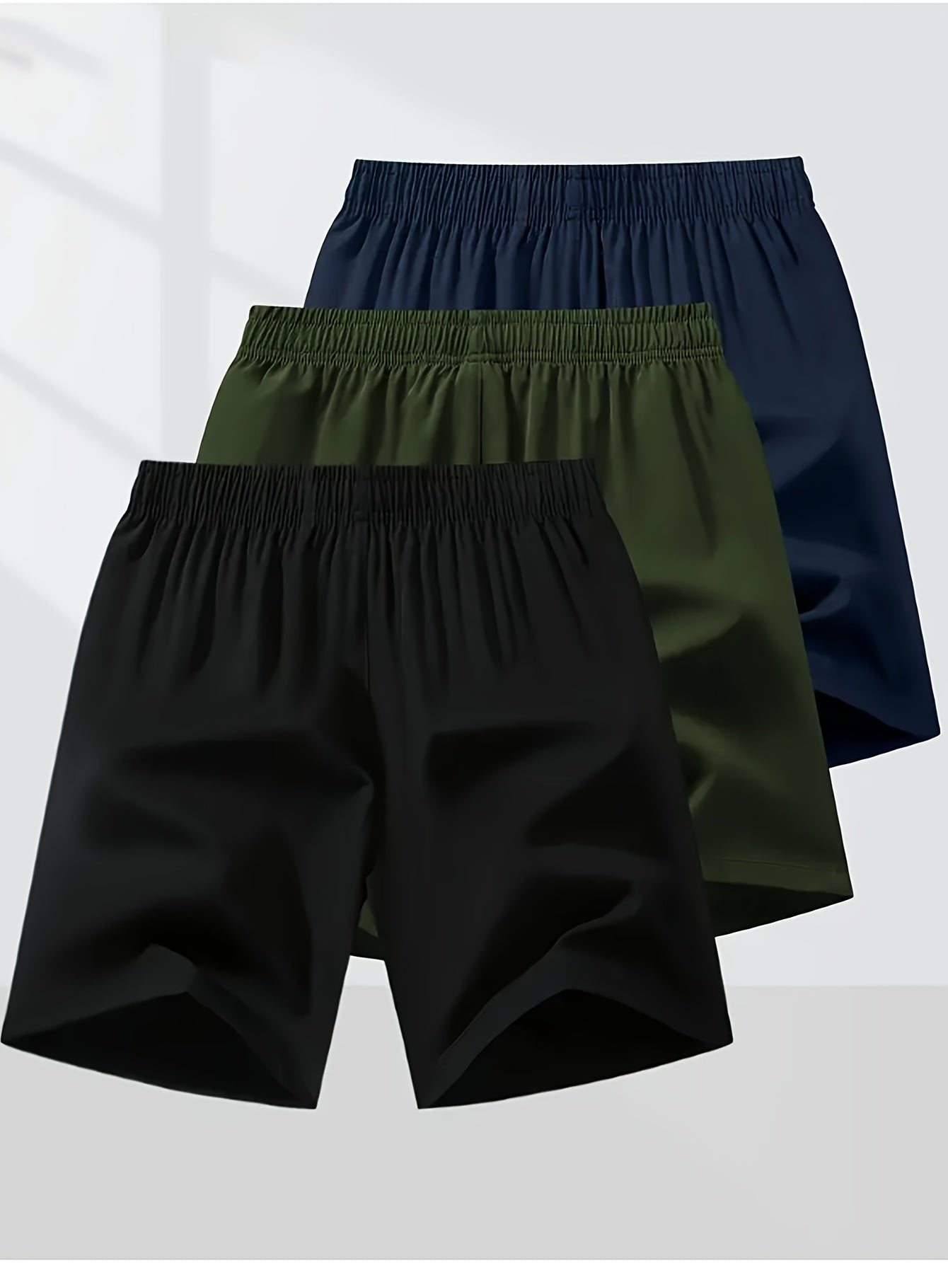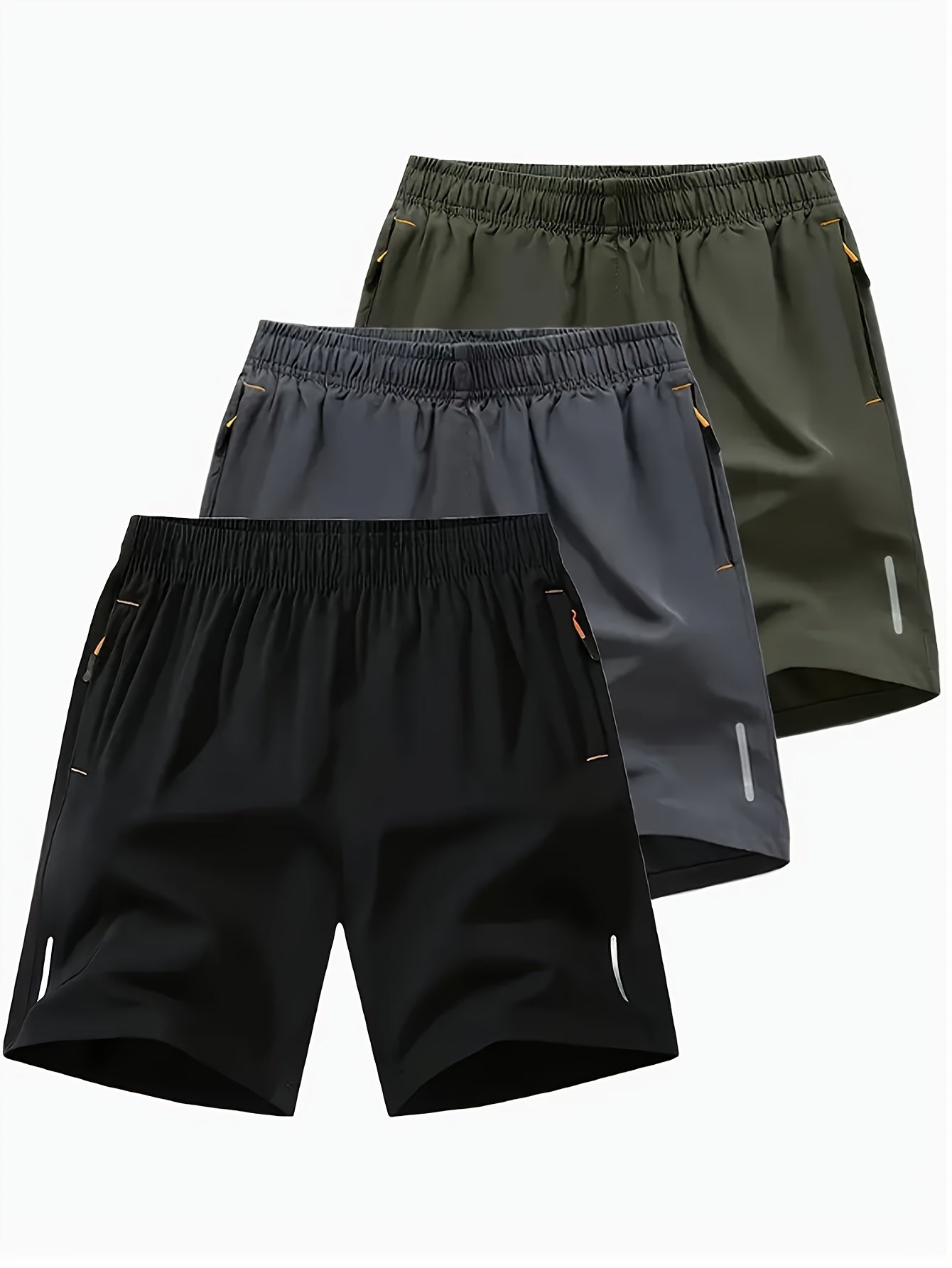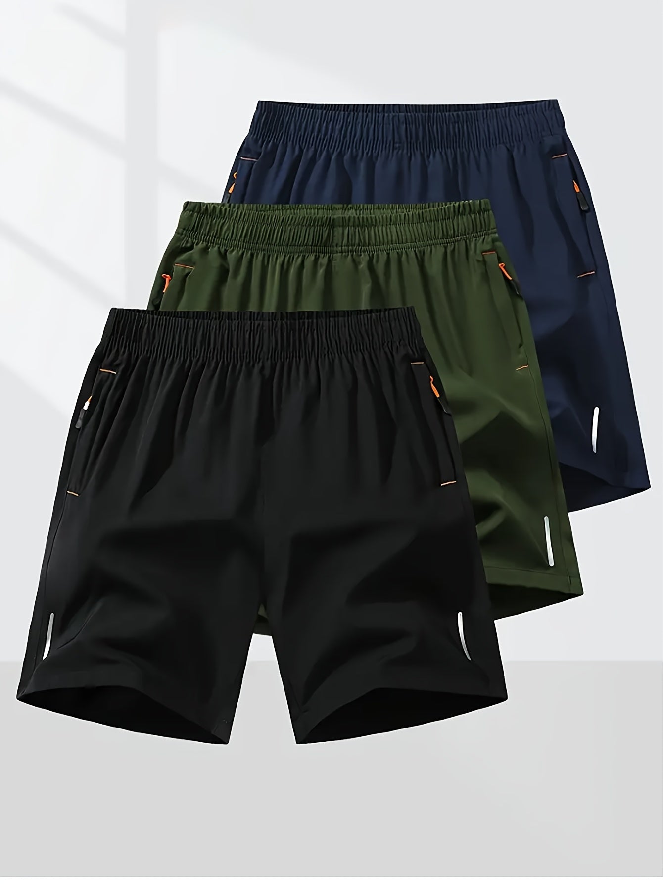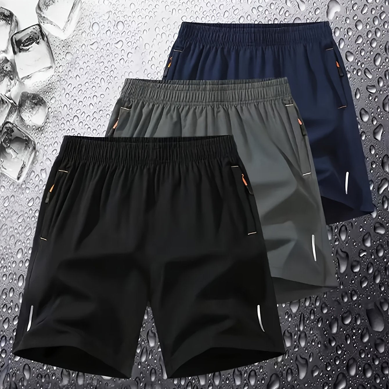 Տղամարդկանց նորաձև սպորտային պատահական շորտեր 3 փաթեթով, 97% պոլիեսթեր 3% էլաստան, պինդ գույն, կայծակաճարմանդ դետալ, հյուսված գործվածք, թեթև ձգվող, ազատ տեղավորվում է, 117 գ/մ² քաշ