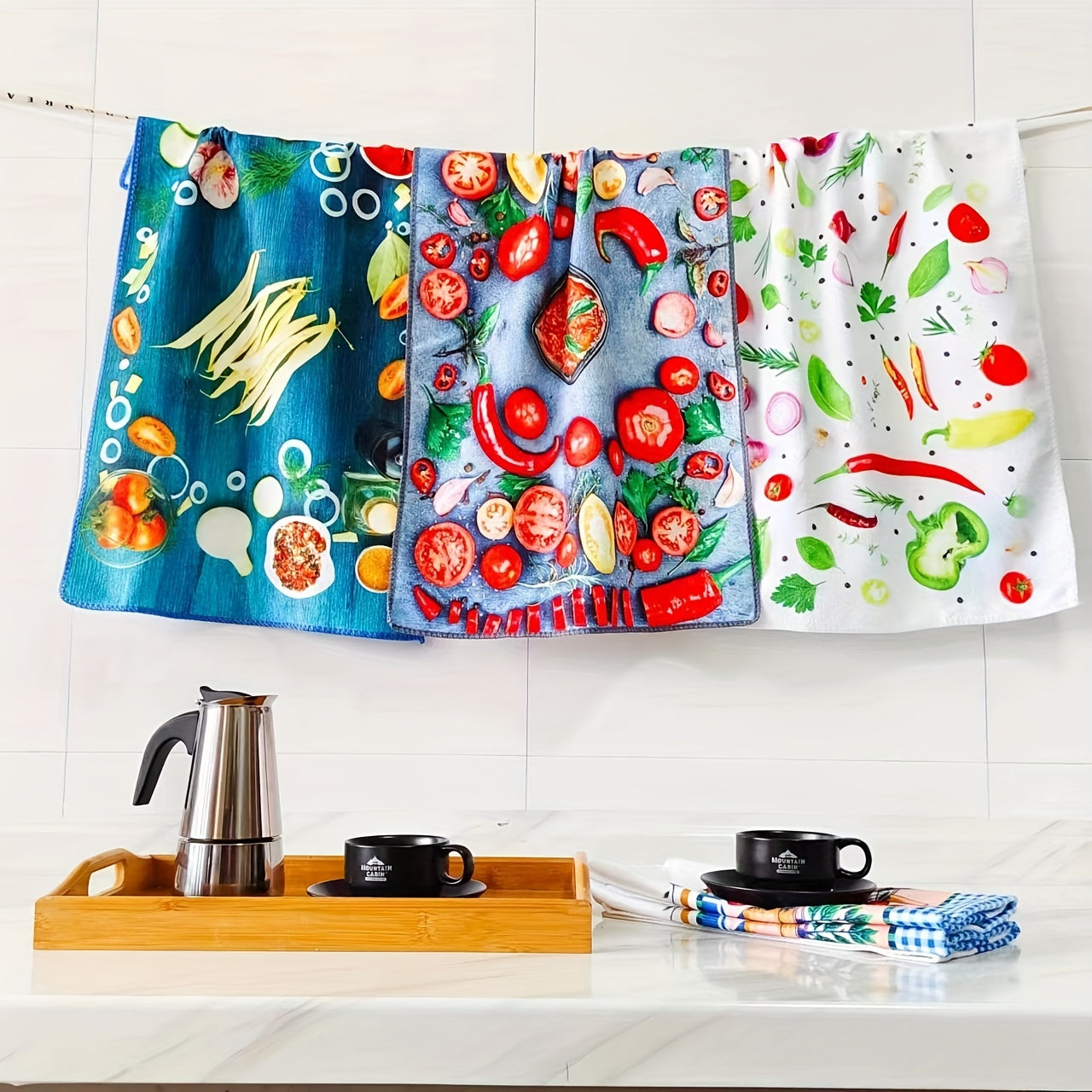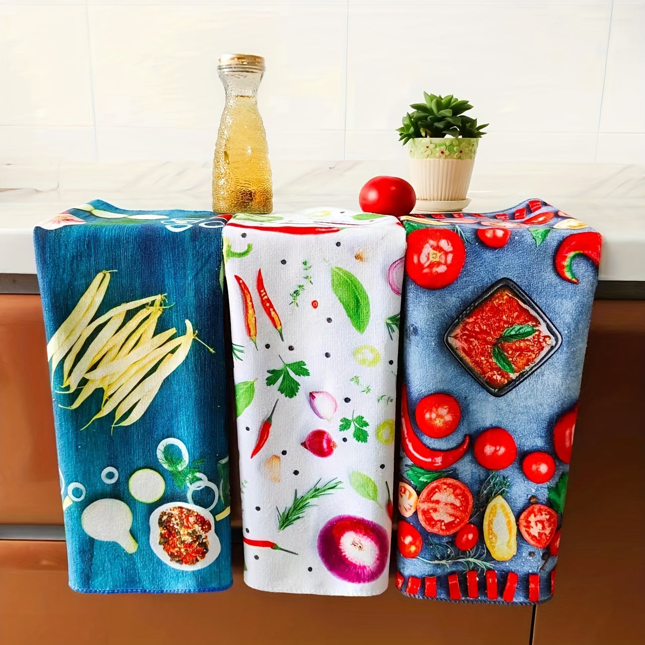 3 կտոր 40x60սմ չափի Super Fine Fiber Խոհանոցային Սրբիչներ - Տպագրված Խոհանոցային Սփռոց, Թեյի Սրբիչ, Խոհանոցի Ձեռքի Սրբիչ, Ներծծող, Չթափվող, Խոհանոցային Կախովի Սրբիչ, Չկպչուն Յուղով Սրբիչ