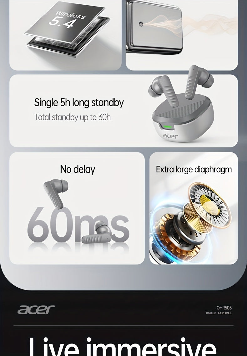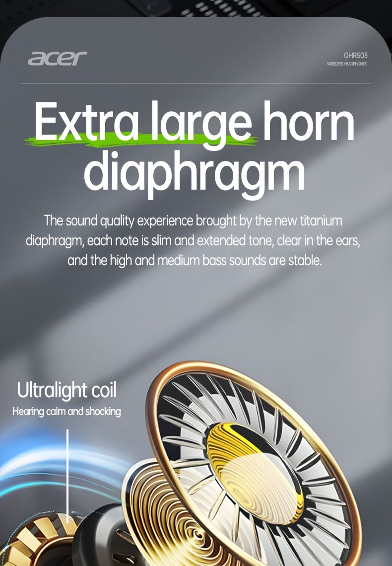 30 ժամյա անլար ականջակալներ Acer OHR503 Mini Sport անլար ականջակալներ | Անլար ստերեո, երկար 30 ժամյա սպասման ռեժիմ, աղմուկի մարում, հարմարավետ կրելու համար | Համընդհանուր չափս, վերջին մոդել, հպումային կառավարում