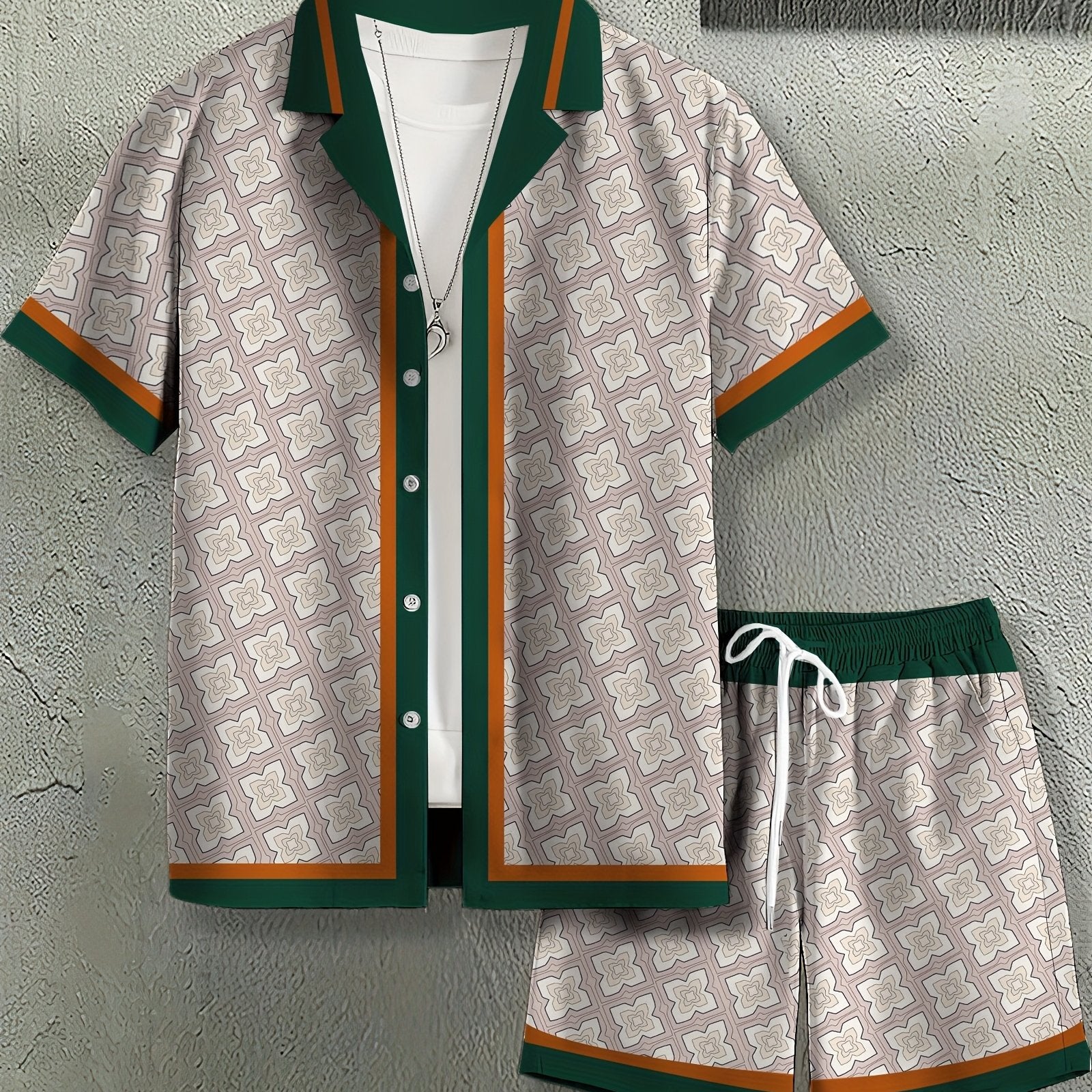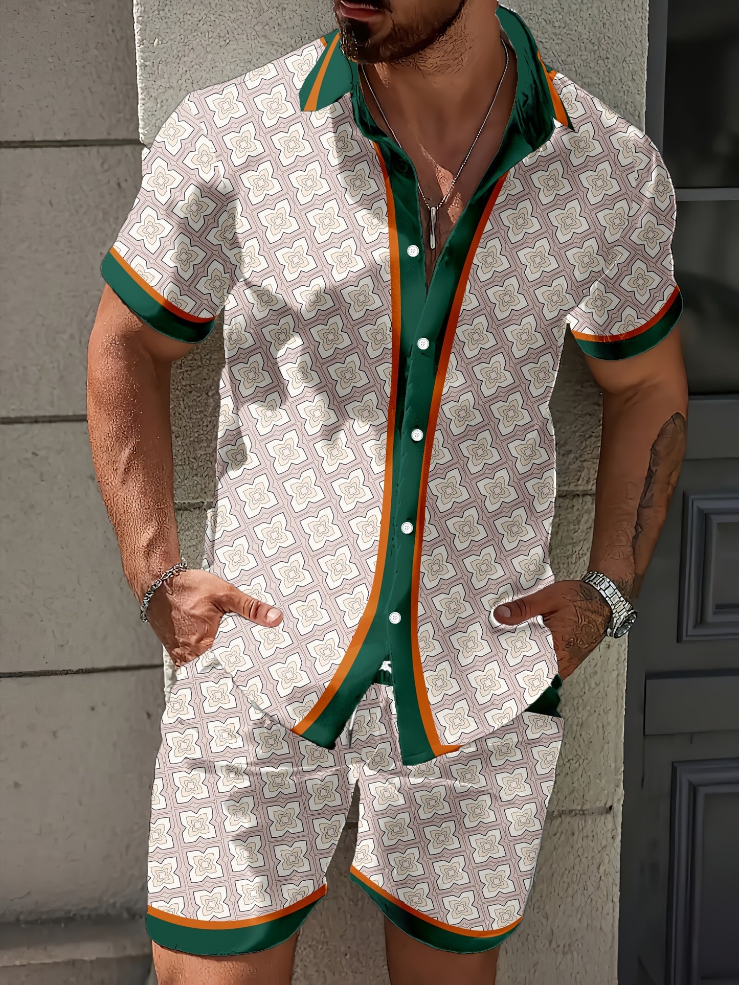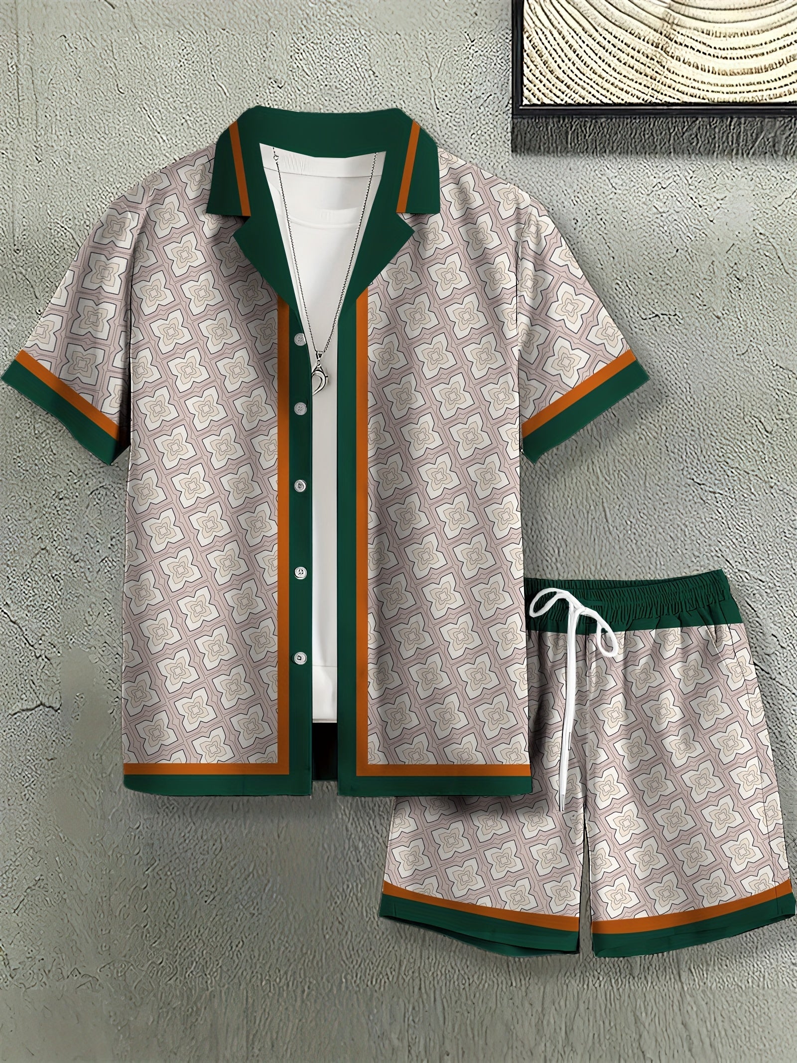 3D թվային տպագրությամբ տղամարդկանց նորաձև, առօրյա, հավայան ոճի գծավոր վերնաշապիկի երկկտոր հավաքածու