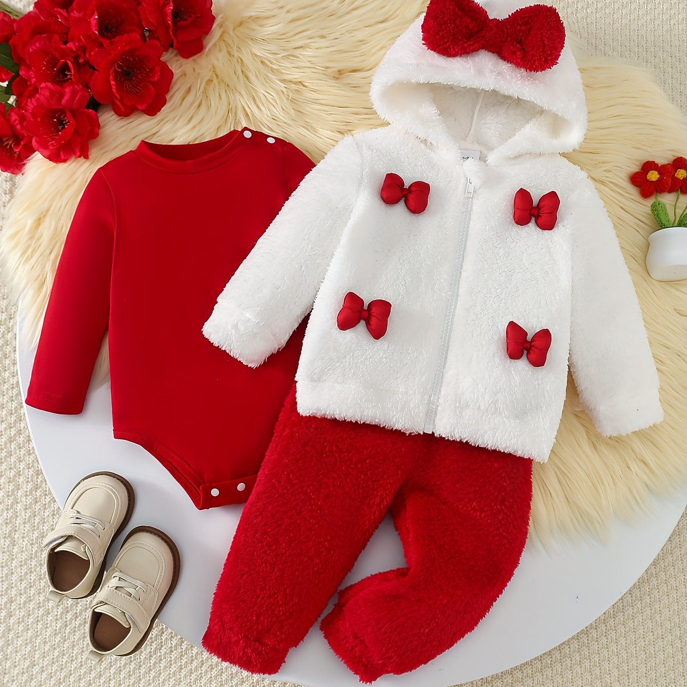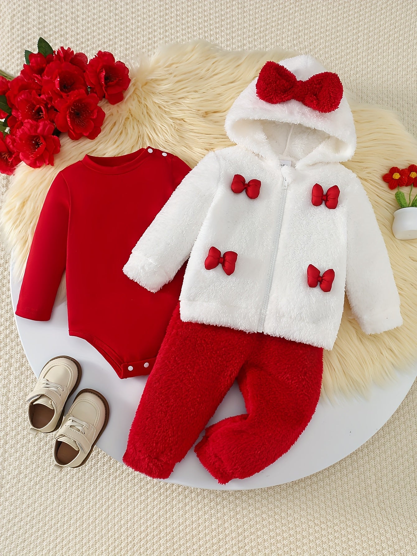 3 հատ աղջիկների ձմեռային տաբատների հավաքածու՝ երկար թևքերով բոդիով, կարմիր ժապավենով զարդարված կայծակաճարմանդով վերնաշապիկով + առօրյա առաձգական գոտկատեղով տաբատ, զբոսանքի համար